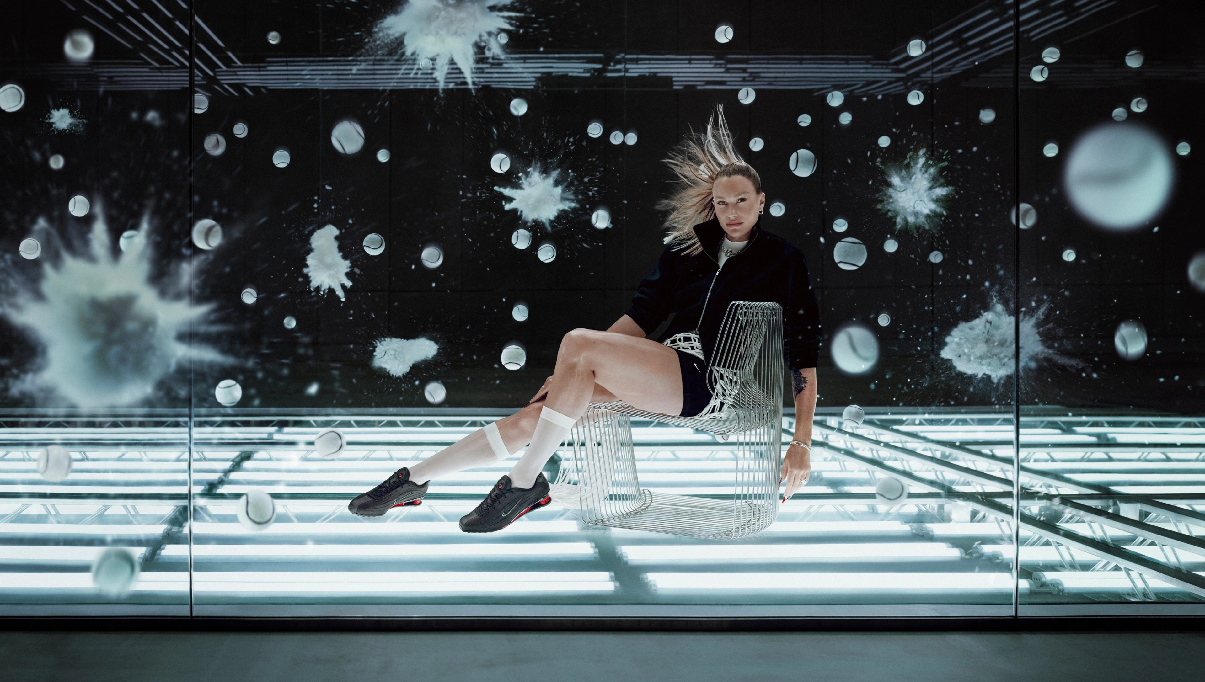 "Im Shox Z fühl ich mich megastark und sehr stylish", sagt Nike Athletin Aryna Sabalenka, das Gesicht der ersten Shox Z-Kampagne. Sie trug die Silhouette, als sie die Trophäe des größten Tennisturniers in den USA zum zweiten Mal in Folge entgegennahm. "Neben dem Court kombiniere ich meine Outfits gerne mit etwas spezielleren Pieces. Der Shox Z verleiht ihnen das gewisse Etwas, und er passt einfach zu allem."