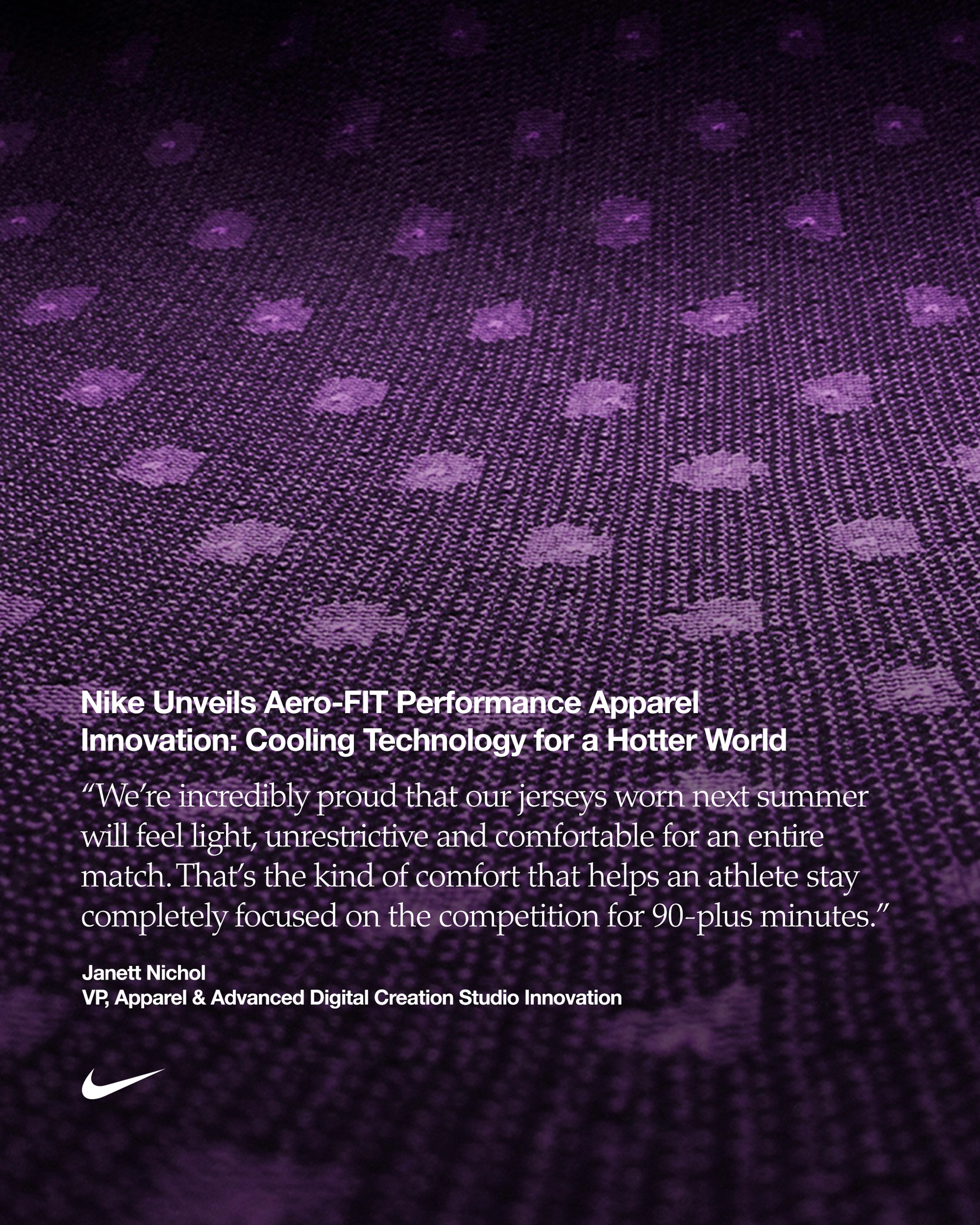 - The new cooling technology will make its global debut in the football kits Nike federations will wear during the biggest sport moment of 2026 before extending across Nike's sport-led product strategy.