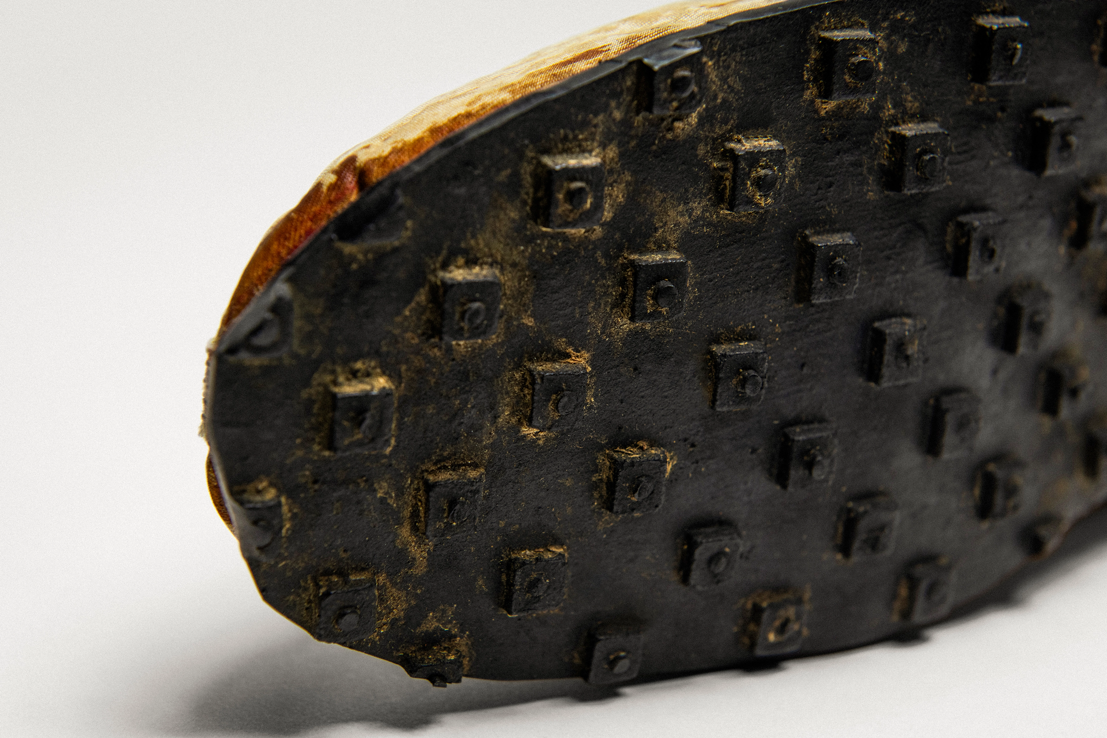That included the new Astroturf laid down at Autzen Stadium, where the Oregon Ducks football team struggled for traction. In wet conditions, players often ditched their boots for basketball shoes with a herringbone outsole that gripped better. Bowerman and teammate Jeff Johnson began exploring traction ideas for football as well as athletics, a line of thinking that would lead to the Astrograbber—a shoe prototyped in 1972 and reissued decades later.