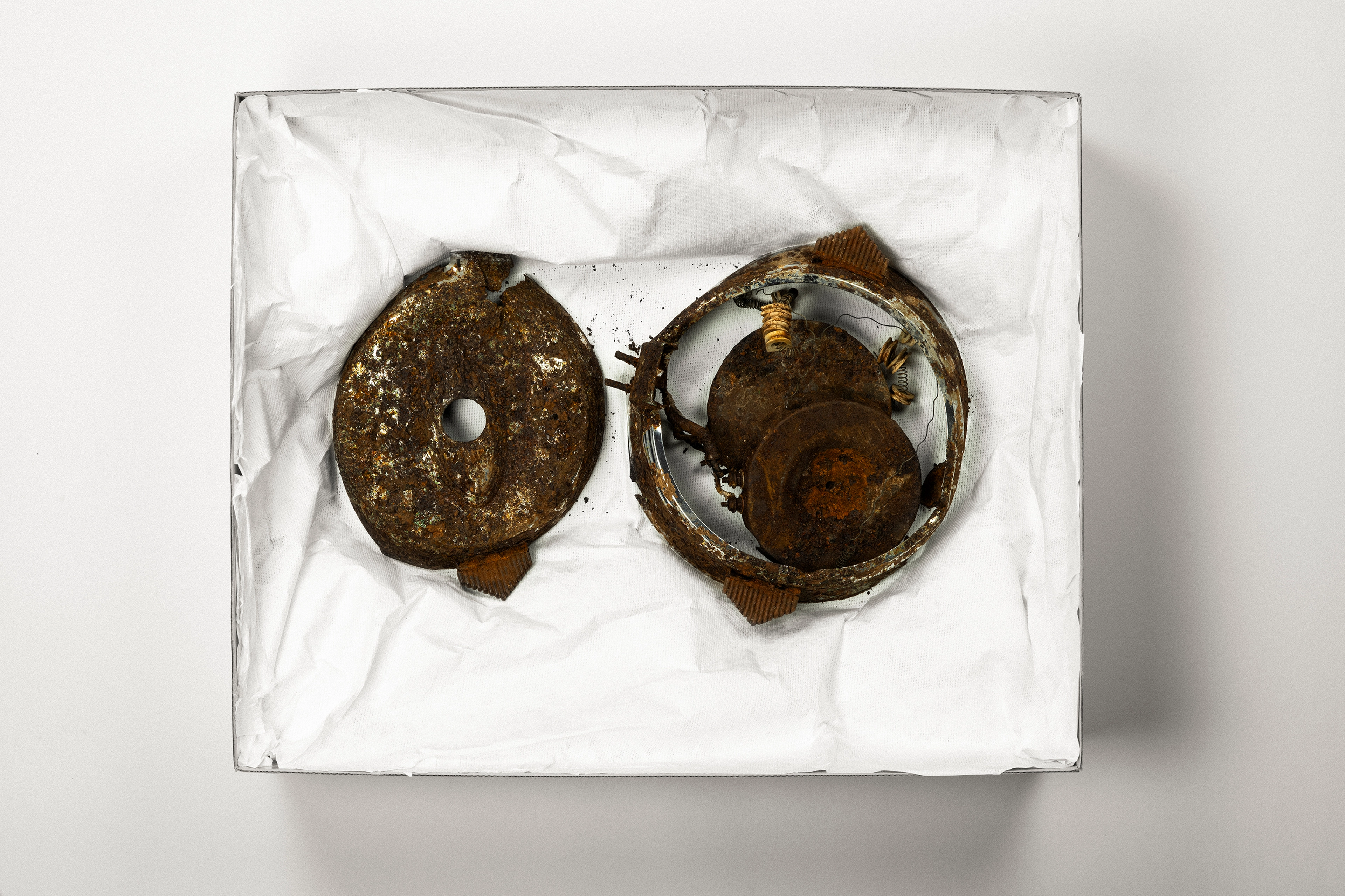 The original waffle iron, rescued nearly 40 years after Bill Bowerman melted it shut and buried it in his backyard.