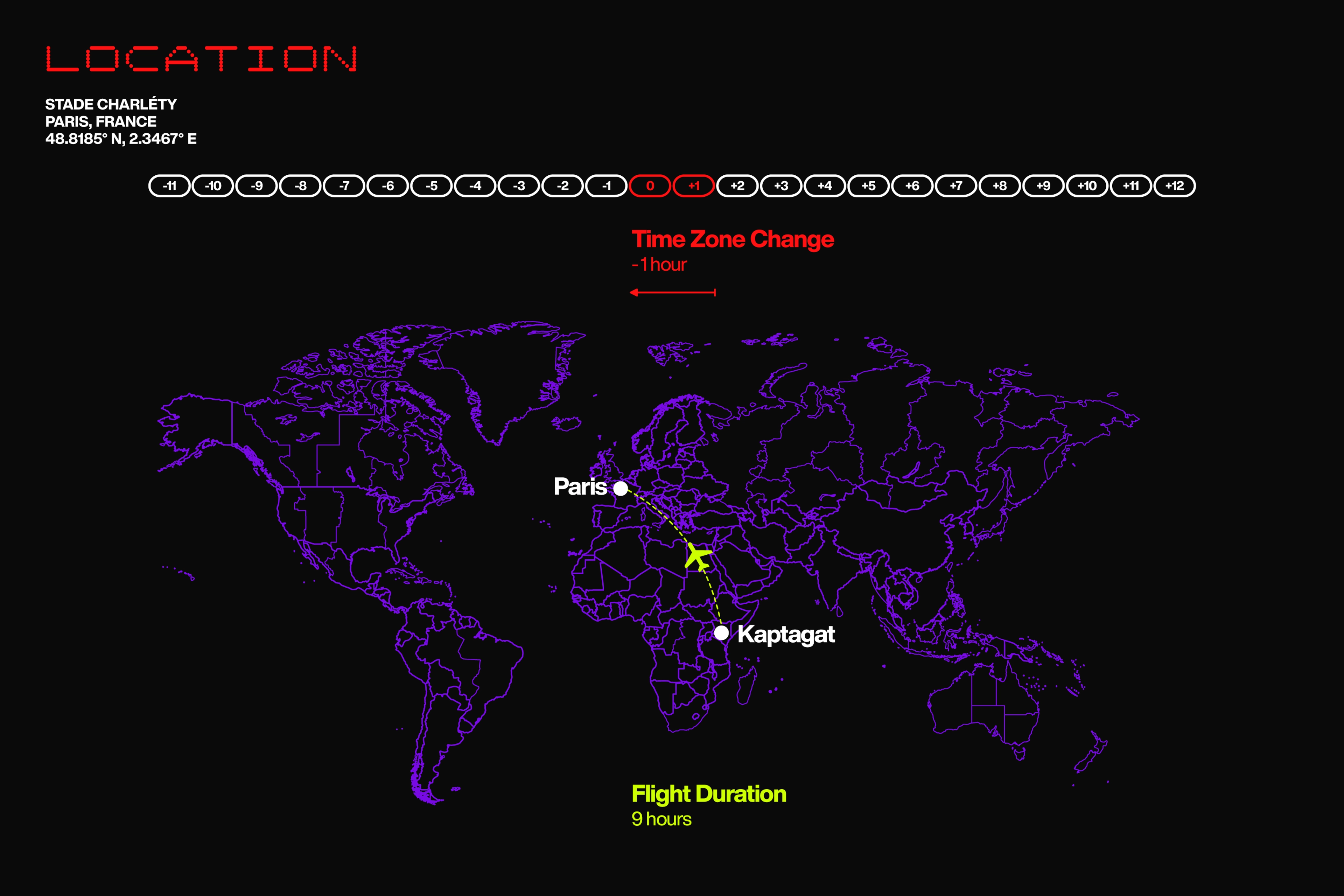 Choosing the ideal location for Breaking4 meant dialing in a time zone close to Kipyegon’s home base in Kenya.