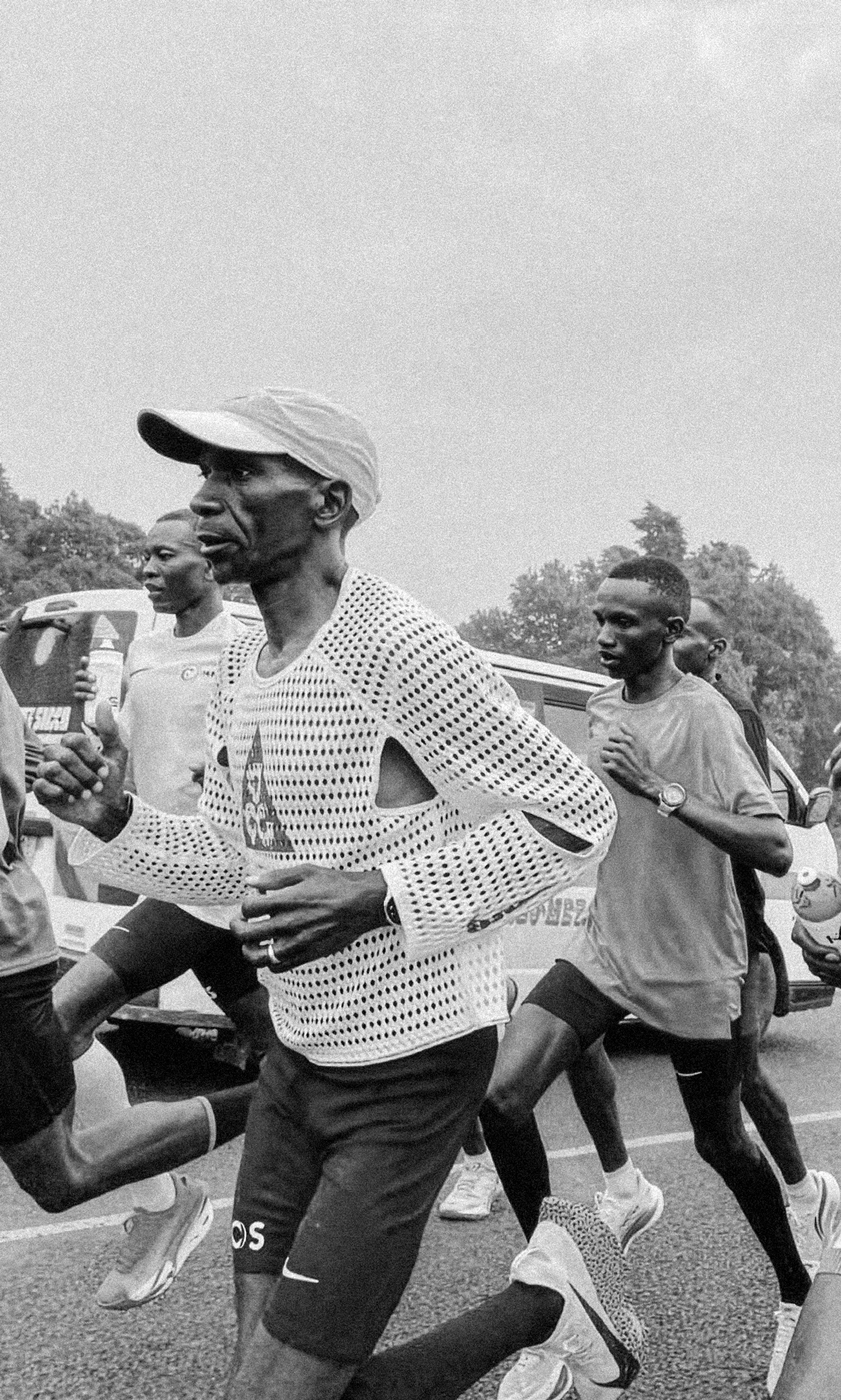 His comments after these long runs kept returning to the notion that the sweat across his body was, somehow, being turned into a cooling agent, not a distraction. “The magic of this top,” says Eliud, “is how it evaporates the sweat.”