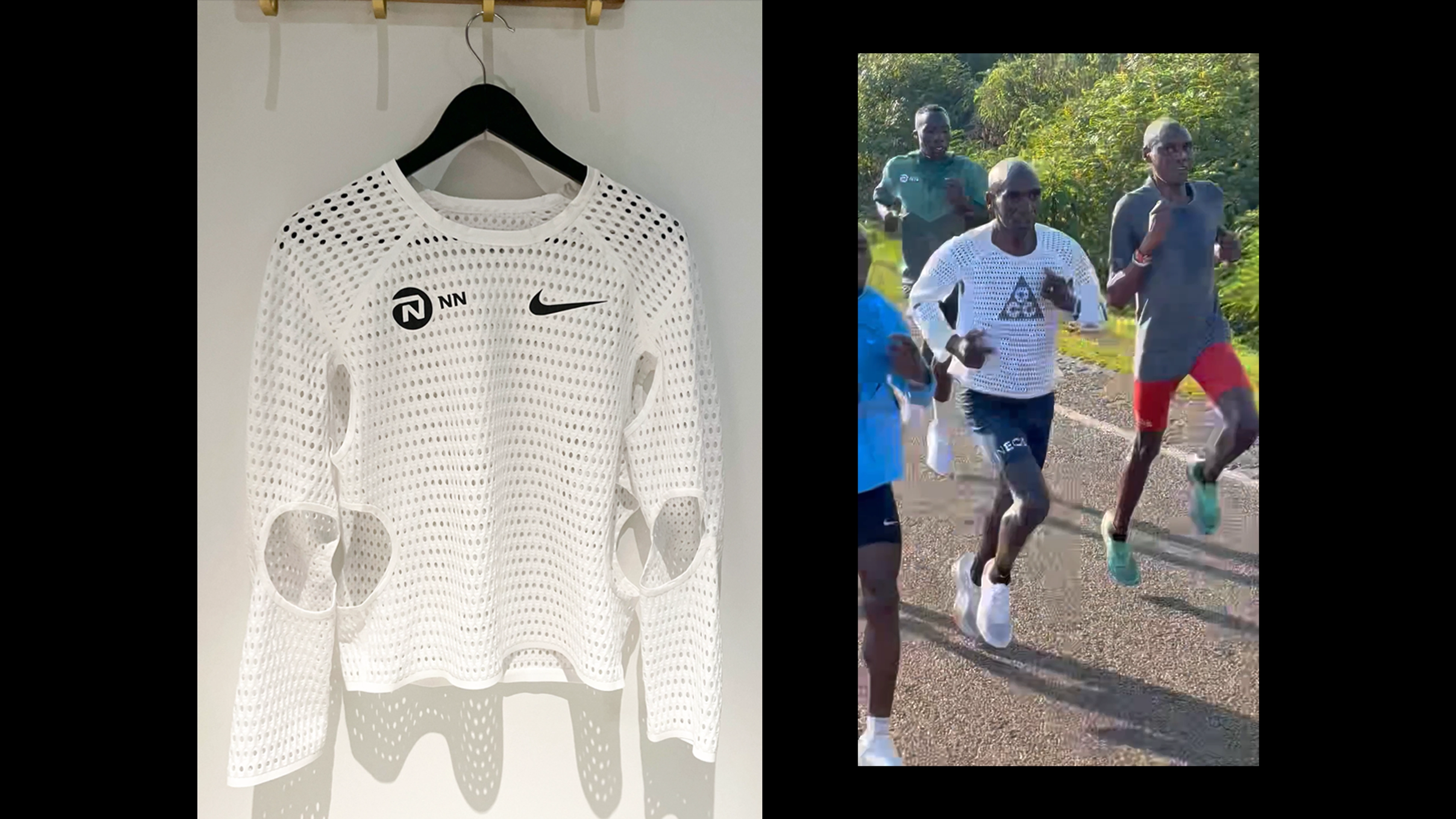 After a week of running in the top, Eliud was shocked at the perceptible cooling effect over his body, and he liked how the knit material moved freely across his skin without chafing. He offered one suggestion that might increase the cooling effect: an additional side vent at the garment’s ribs, betting on the chance for even more ventilation.