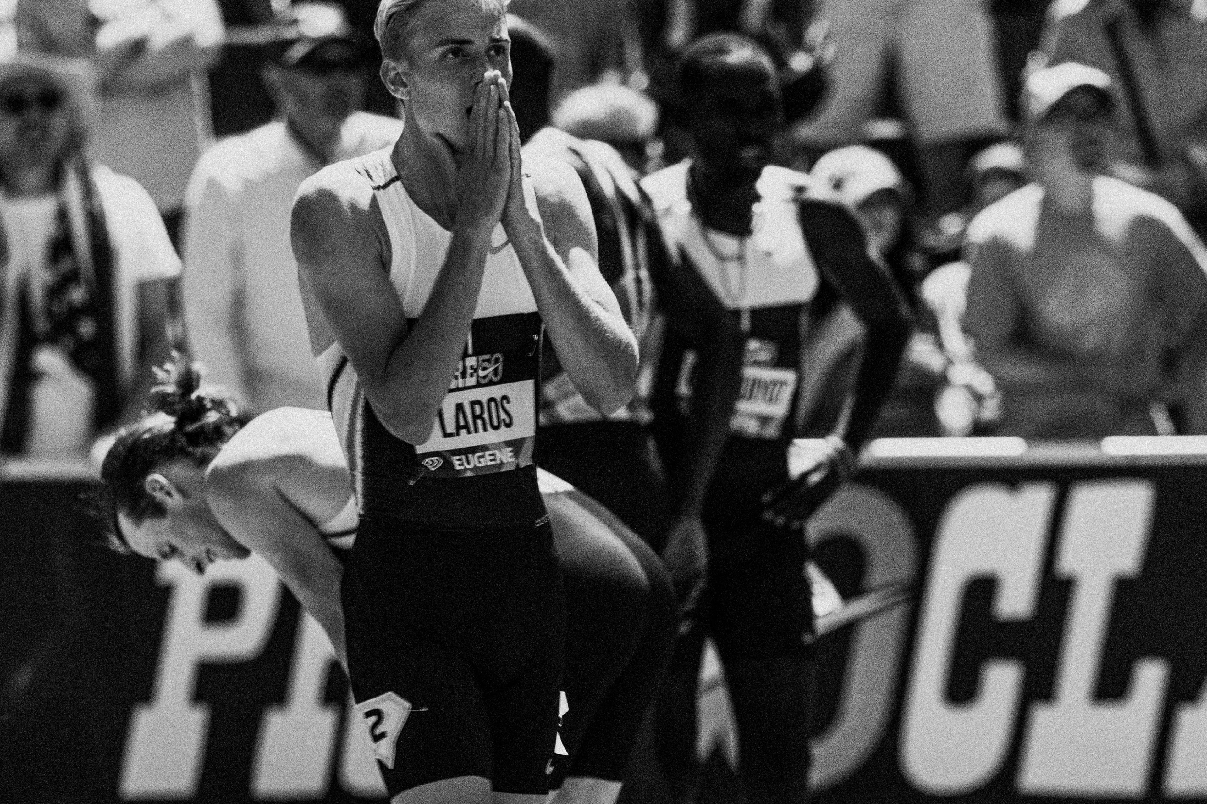 Niels Laros after his Bowerman Mile win in 3:45.94
