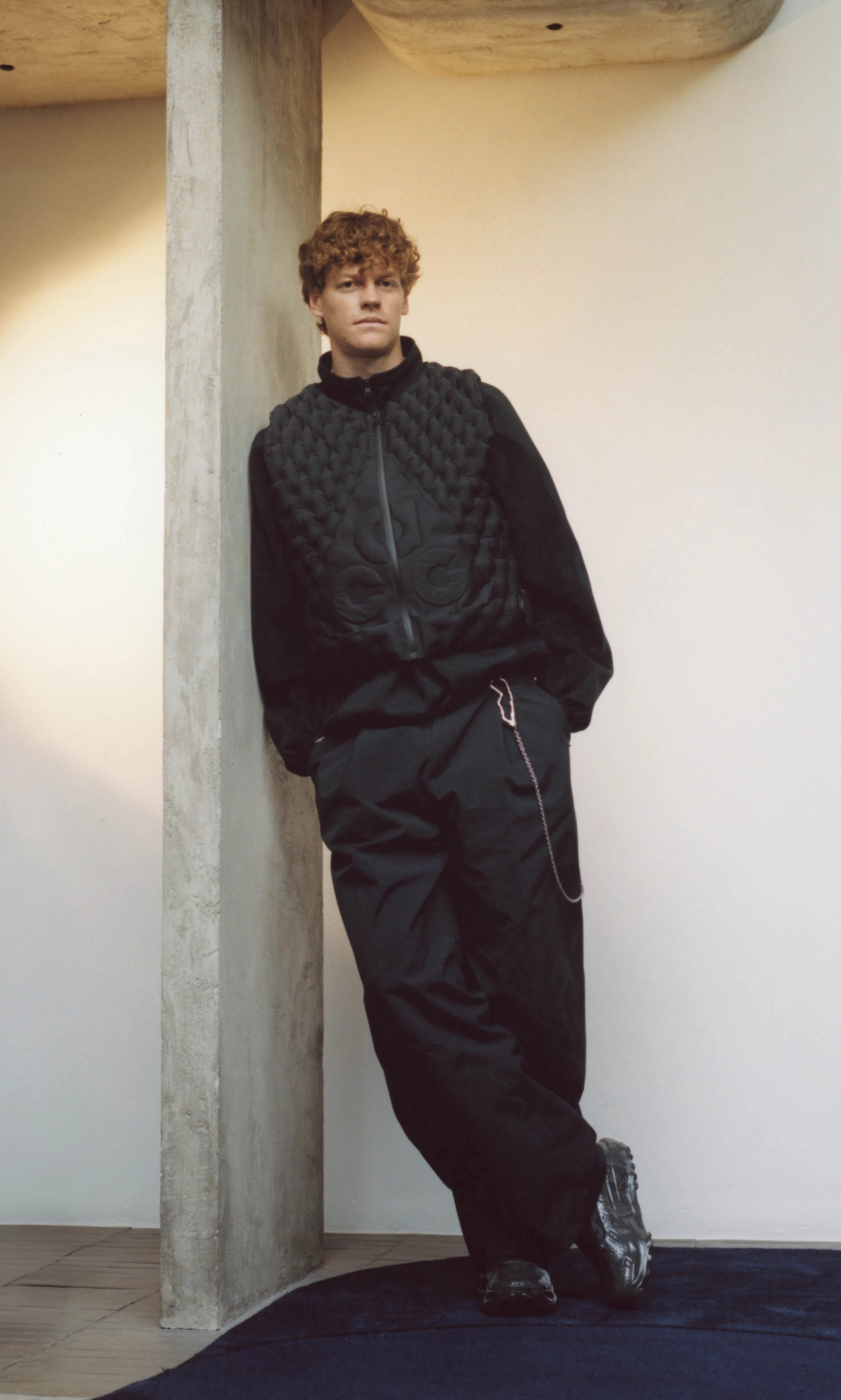 Sinner's bespoke jacket is a reimagining of a vintage ACG version. While the outer shell is made from a GORE-TEX material, inside a wool three-layer fabric offers a twist on the technical.