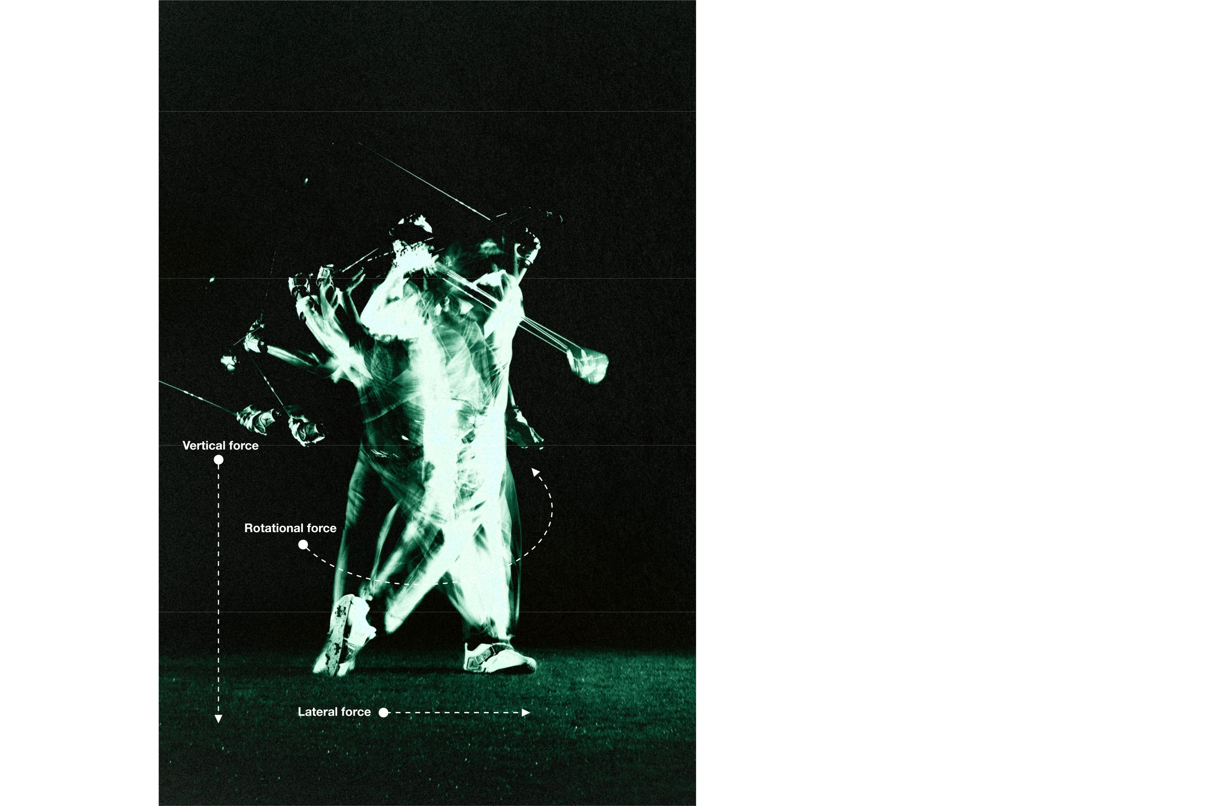 A golf swing works across three planes of movement: vertical (delivering force into the ground upon loading); horizontal (pushing the body from foot to foot); and rotational (generating torque)