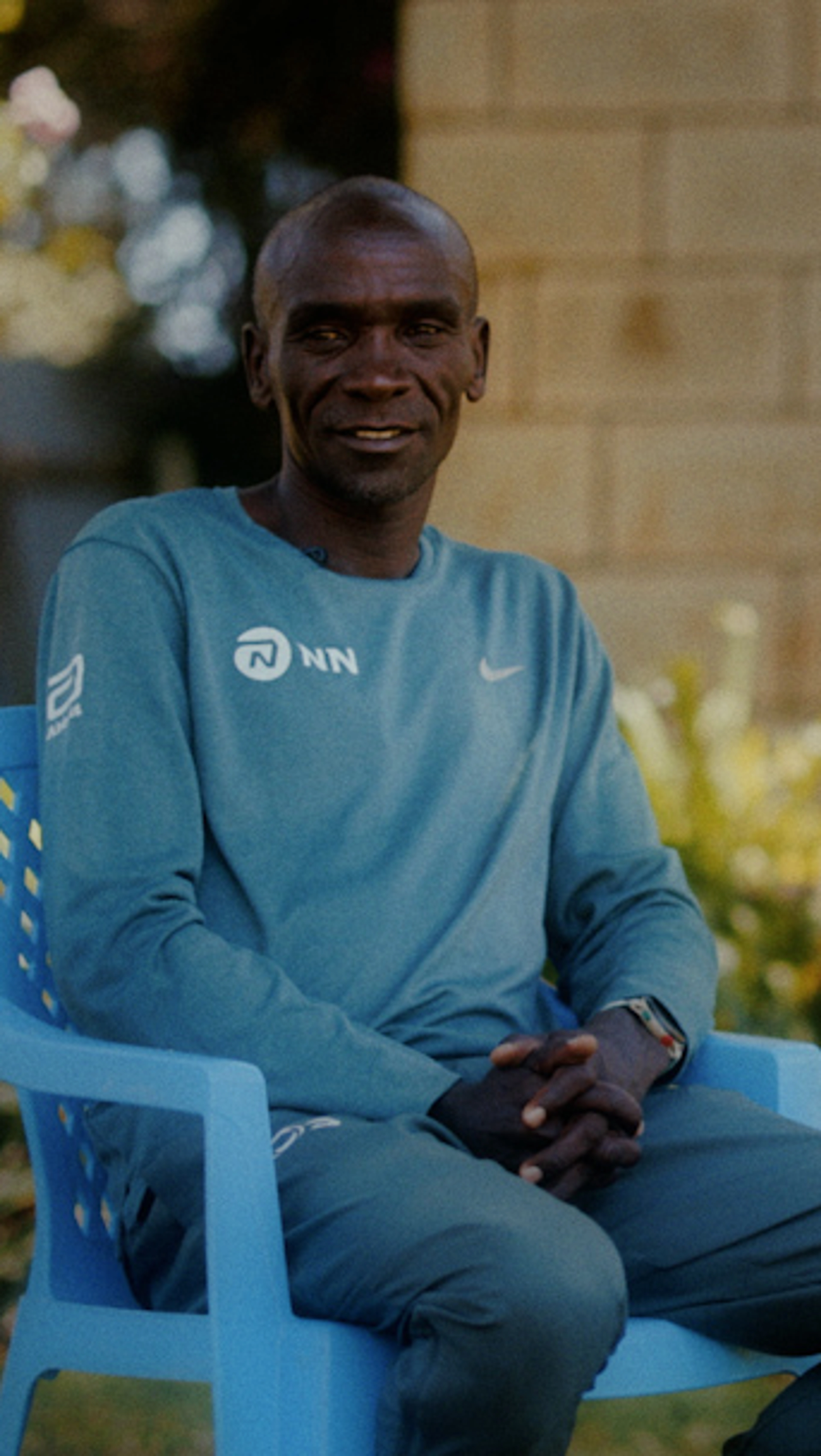 It sounds like the opening line to a good joke: “Two of the greatest runners of all time walk into a garden.” And when Eliud Kipchoge and Faith Kipyegon take their seats — on blue plastic lawn chairs, in the lush green courtyard they helped cultivate at the Global Sports Communication camp — they can’t stop laughing. “Not this guy!” Faith calls out, a wide grin on her face. “Oh no, he won’t stop talking!”