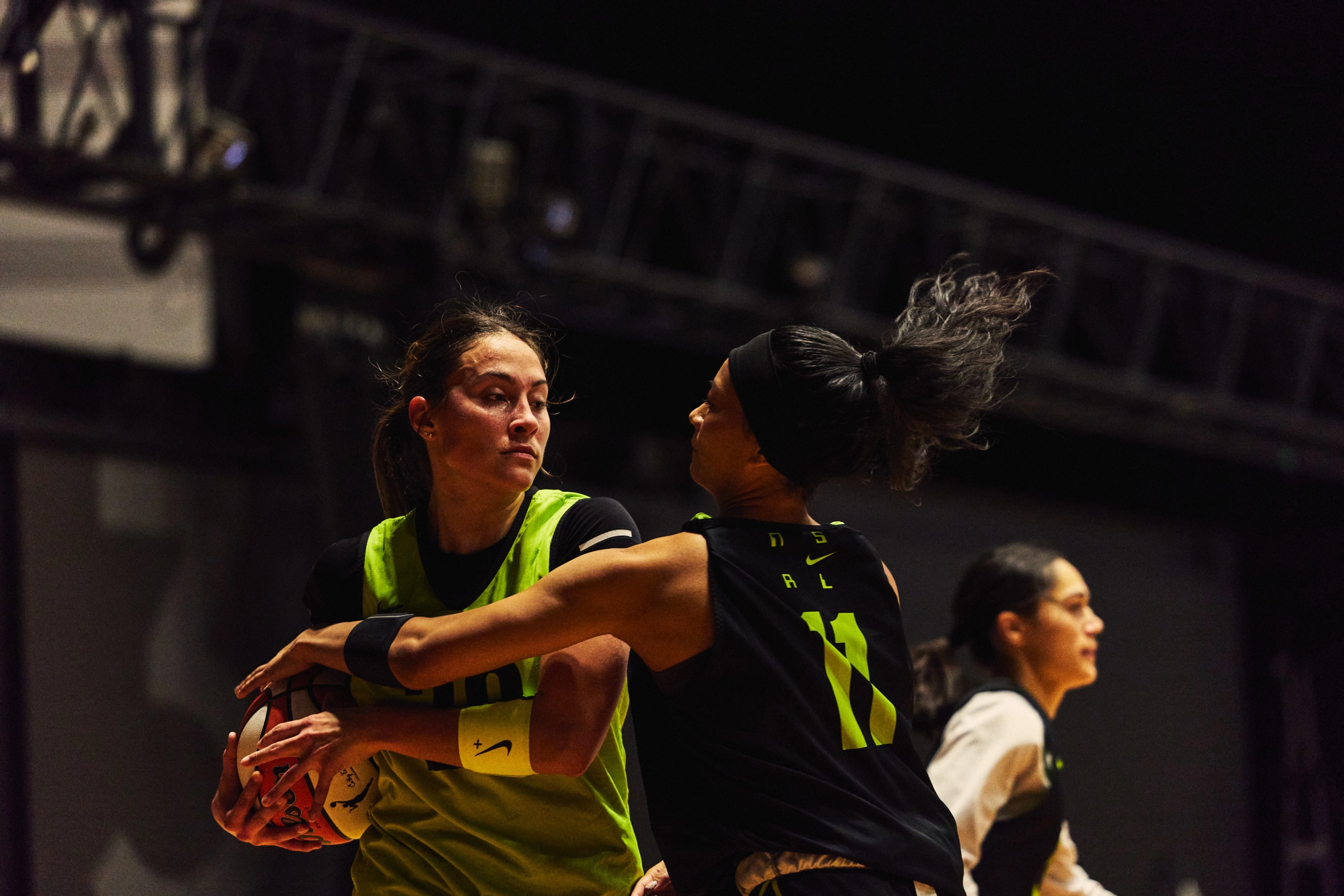 If a basketball product is to be measured objectively, it should be done by how it influences a player’s movement. No surprise, this is best seen in a real, unrestricted game. Last winter, the lab concluded its first season of the NSRL Basketball League, a women’s evening tournament featuring four squads with teammates recruited from both inside and outside of Nike. All players competed either collegiately or professionally. The games are a full four quarters, on a full court, with a team of referees. The rules are as core as you’d expect from any basketball scrimmage. What’s different about this league is how the NSRL’s tools are seamlessly integrated into the gameplay. For example, motion software depicts the common paths that players take by position, from a perimeter-oriented guard to a big who protects the paint. It’s through tools like these that scientists can measure whether a player is moving with more speed or agility based on the shoes they are wearing. Heart rate monitors can help researchers understand whether a shoe can mitigate fatigue throughout a game.
