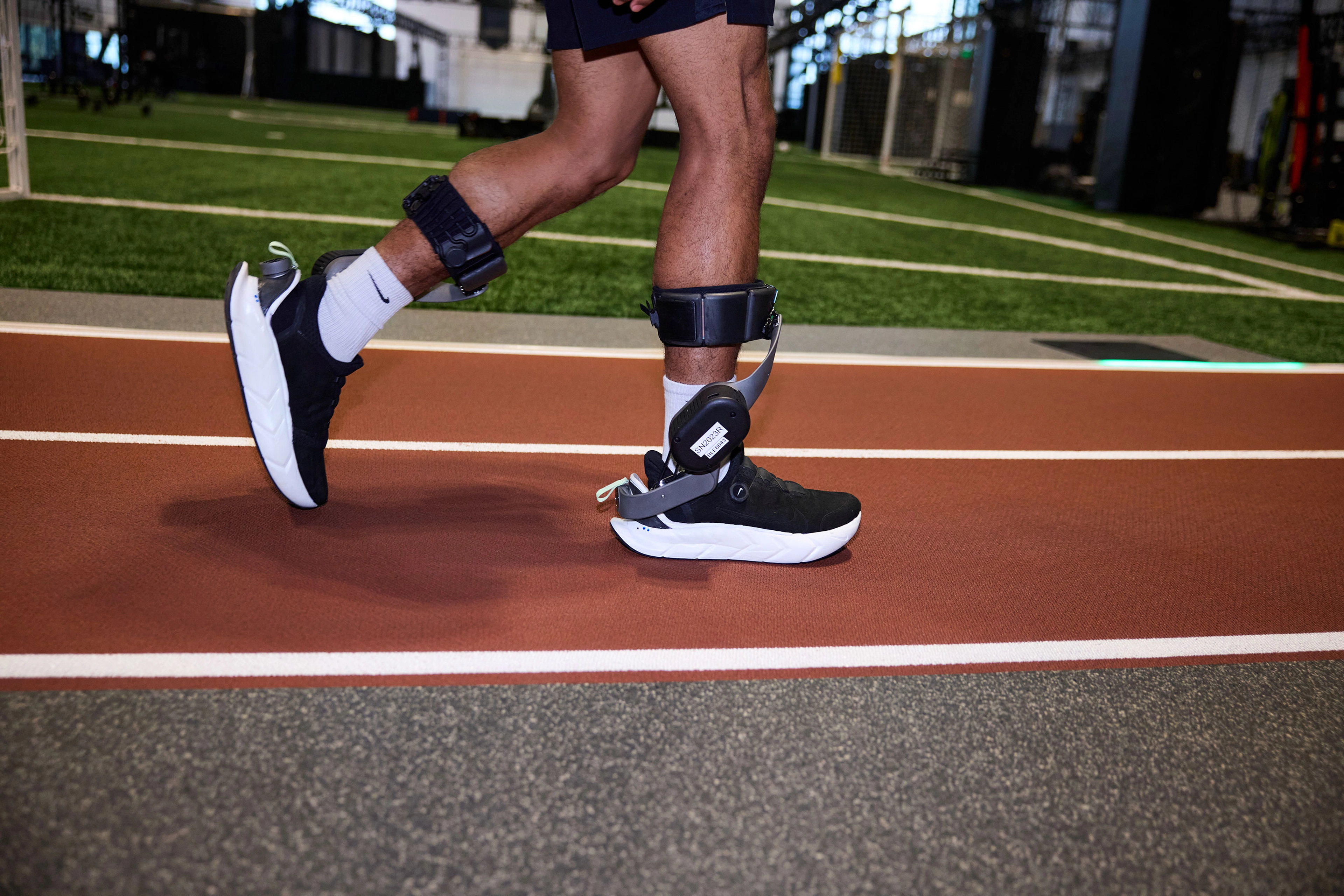 Enter Project Amplify, a powered footwear system designed to act like an e-bike for the human body. Nike research teams logged most of its 1,500 miles from test participants on the NSRL track. That’s more than 12,000 laps, with data measured from over 2.4 million steps. To keep up with the participants, Nike scientists actually used a motorized scooter and rode around the track during experiments to log real-time data on the device.