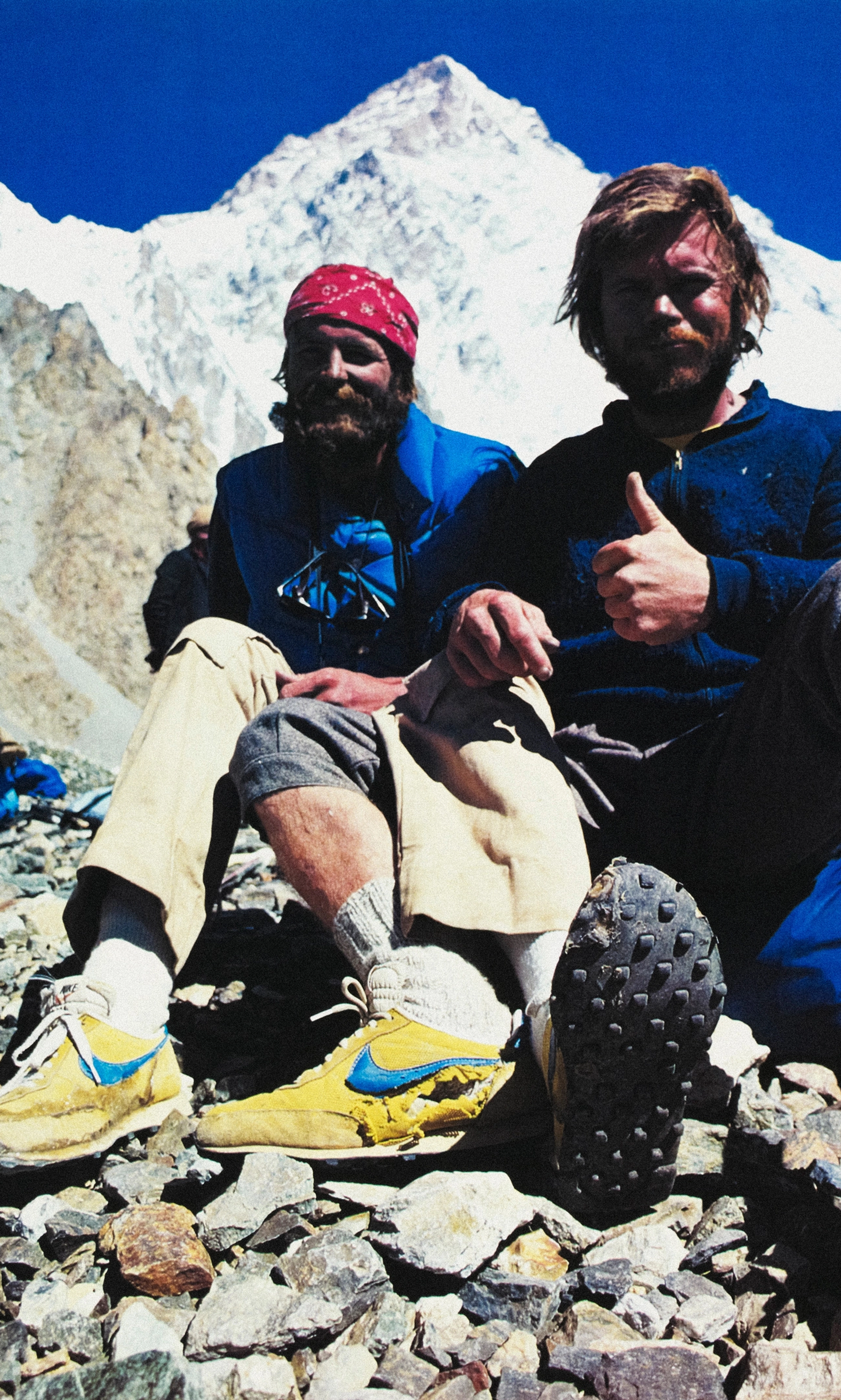 Months earlier, Nike had quietly supplied the expedition with those lightweight trainers, a last-minute gift meant for the 110-mile approach to basecamp. “A lot of it was off-trail,” recalled Rick Ridgeway, one of the climbers in the photo and a leading American alpinist of the era. “You can imagine they were pretty trashed by the time we got there.”