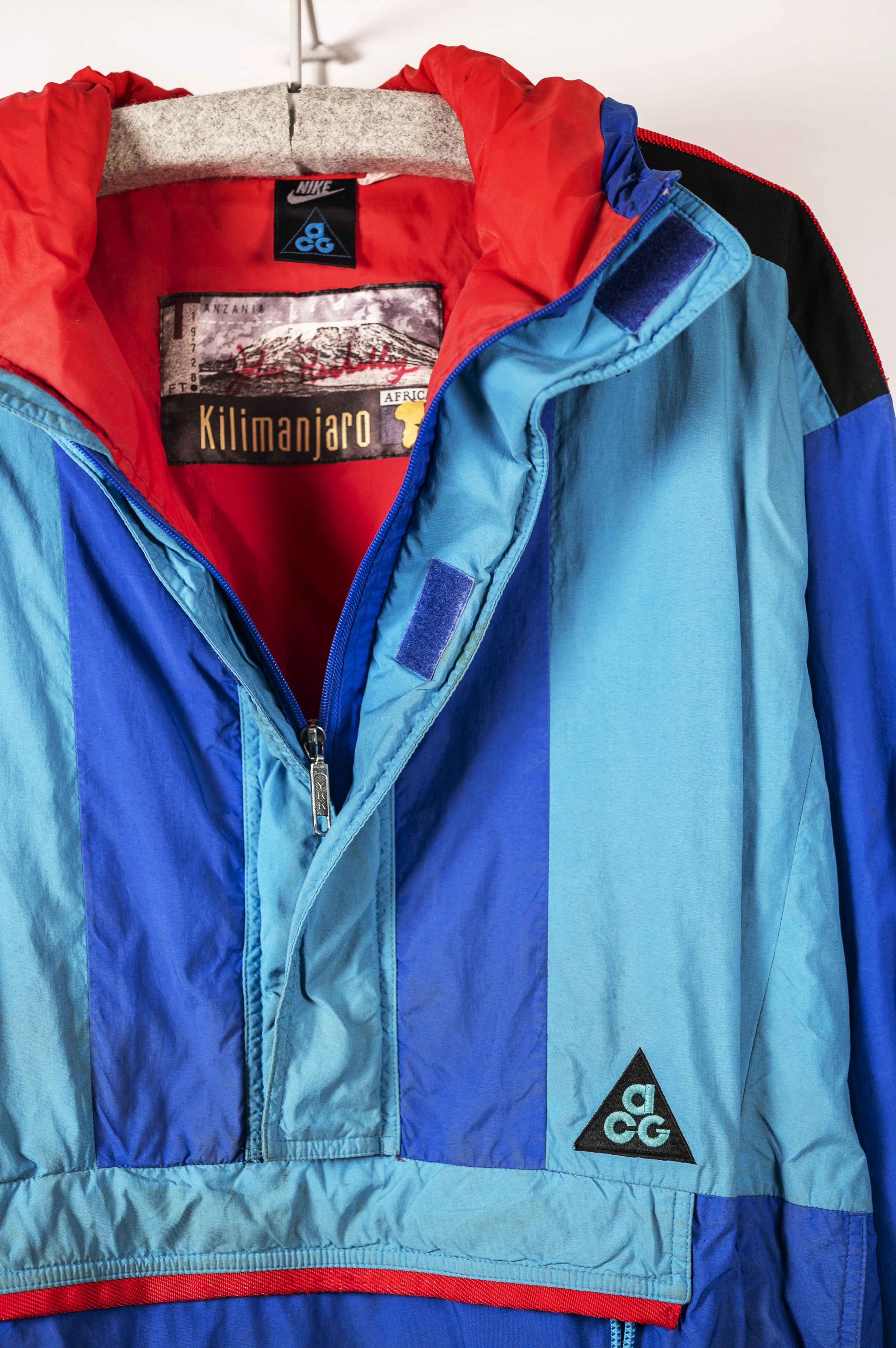 This Kilimanjaro Anorak K2 was worn and autographed by climber John Roskelley, one of the two Americans photographed at K2 basecamp in LDVs whose trek later appeared in an early 1980s poster and in a 1989 ACG ad.