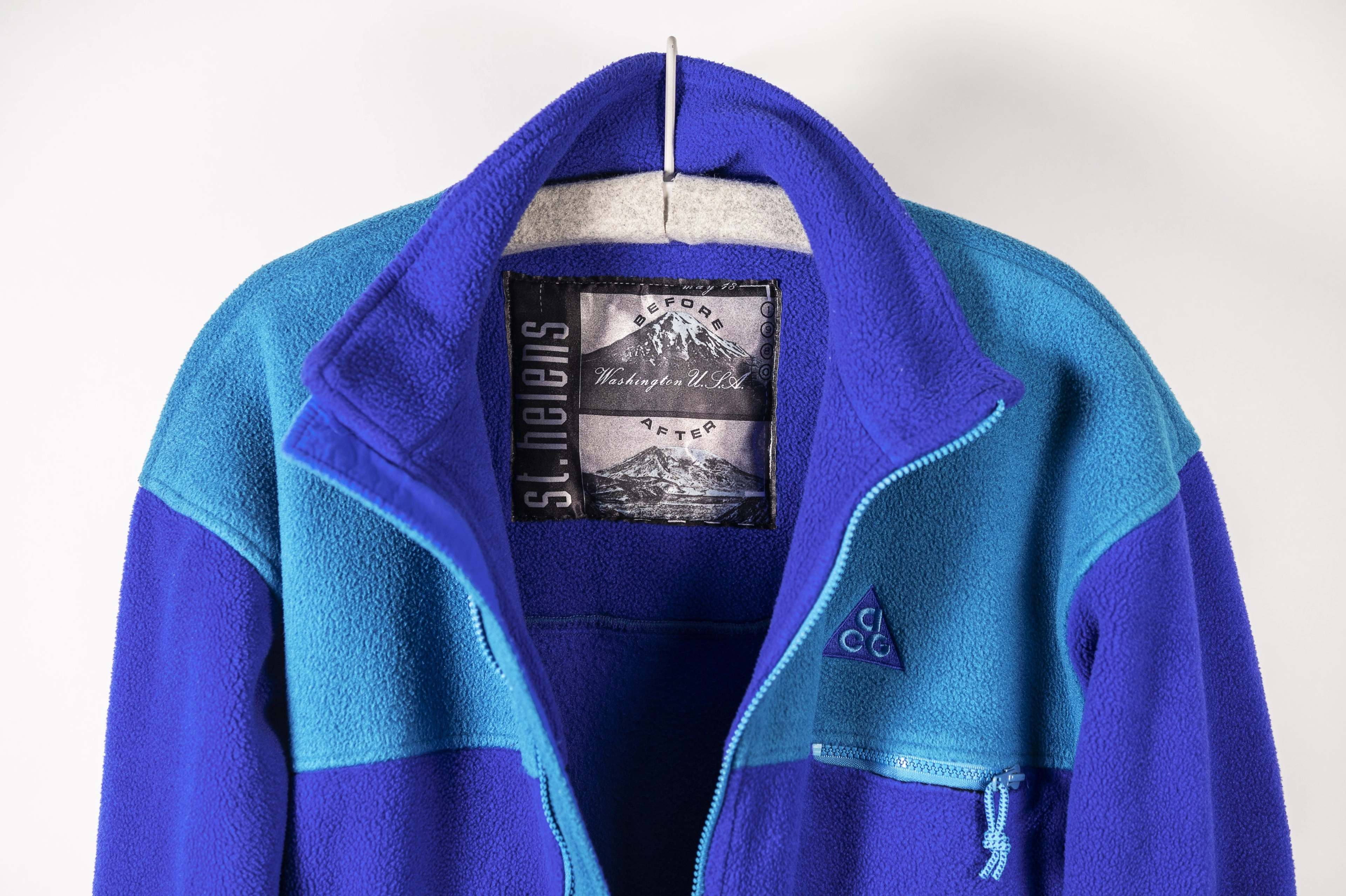 A decade after the 1980 eruption of Mount St. Helens, Nike ACG marked the mountain’s irreversible transformation with a before-and-after patch showing a landscape changed forever. Instead of measuring height like other ACG “landmark” pieces, the jacket captured impact, memory and permanence.