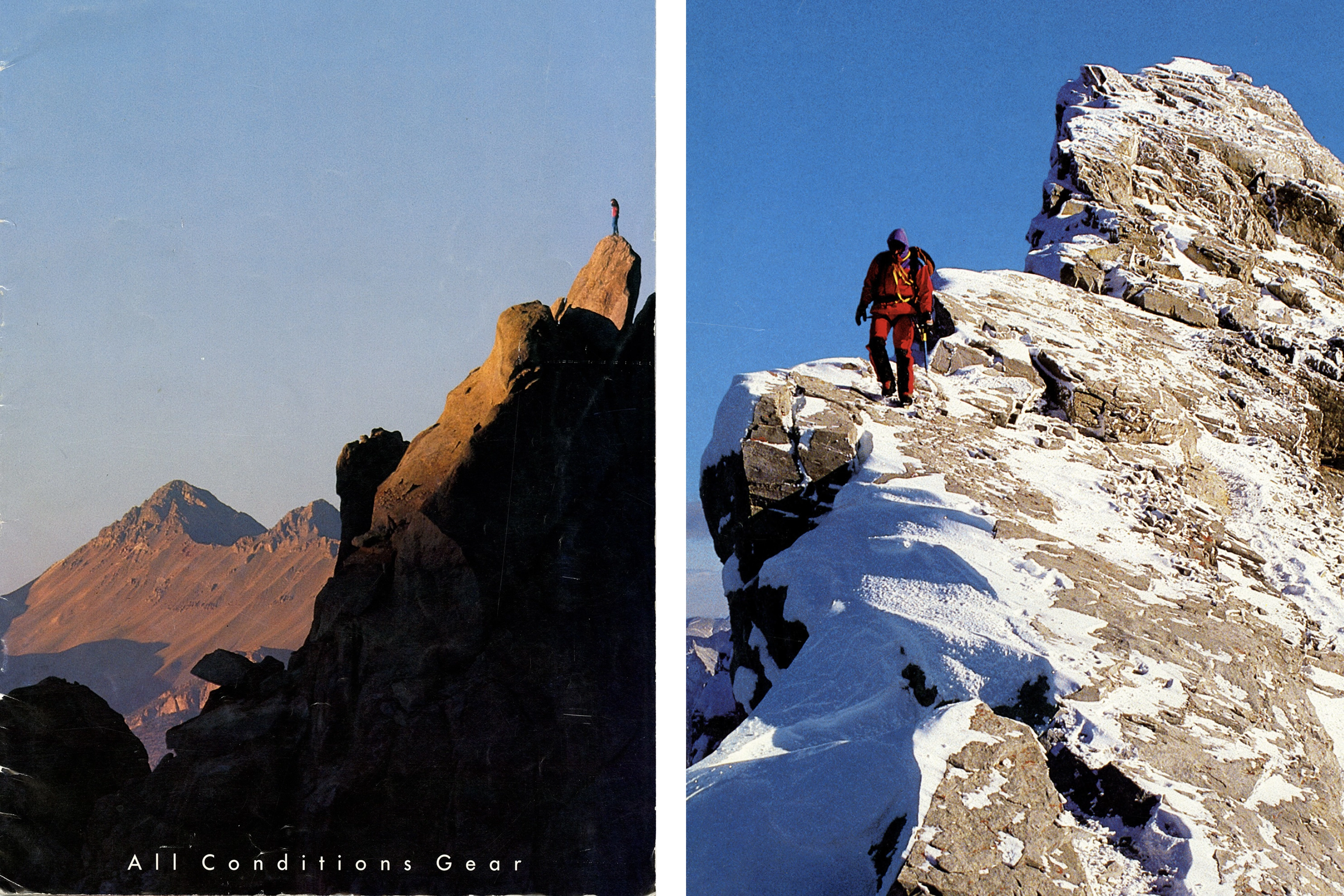 Nike made sure its debut felt authentic. The first catalog shoot took place at Castleton Tower in Moab, Utah, a notorious rock spire revered by climbers. “We wanted to position it as a pretty real brand,” said art director Ron Dumas. “We had these guys climb this tower and so we got in a helicopter. It was just about sunset and I was sitting on the rail holding onto the photographer and he’s hanging out of the helicopter. The tower was beautiful and these guys are just little dots on top. It was phenomenal.”