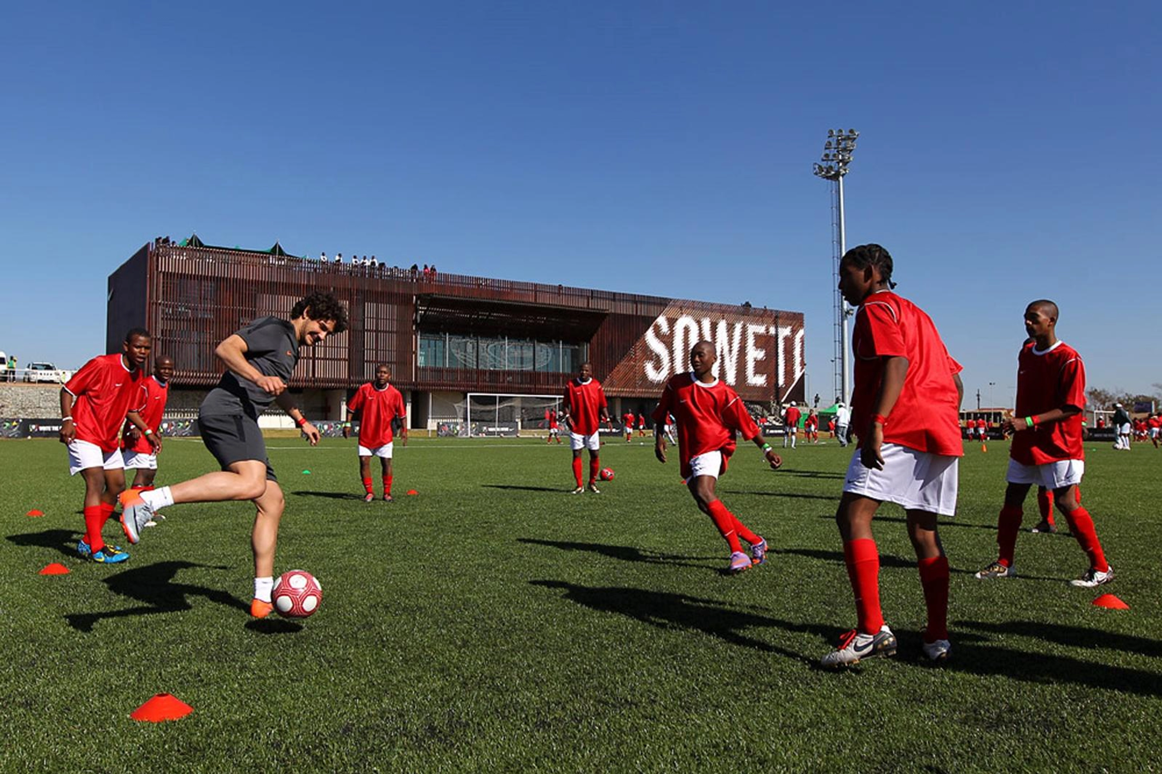 SHAPA Soweto was unveiled in the summer of 2010 as one such community of play. It began as a world-class football training facility serving the next generation of footballers in Soweto, a township in South Africa. The approach was straightforward: Organize top-of-the line football clinics to inspire young people through sport, and along the way, teach them important life skills in the form of HIV/AIDS education. The facility’s unique mix of public and private partnerships helped shape a first-rate training ground for more than 20,000 young footballers, launched on the eve of that summer’s pinnacle football tournament in Johannesburg.