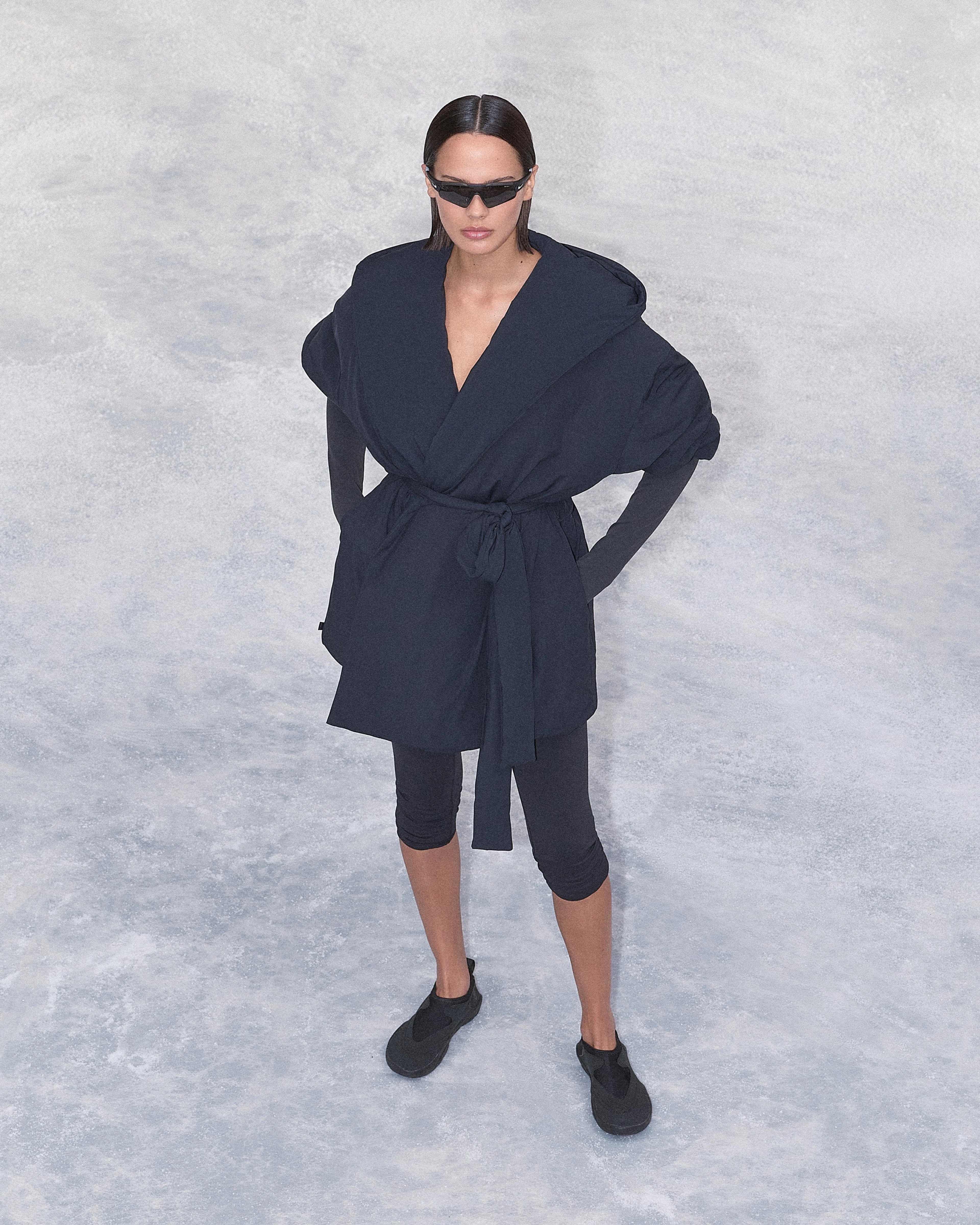 Timed for colder weather, the new drop also introduces Woven Nylon: a new category of relaxed third layers, led by the Wrap Coat, that are designed for softness, function and movement. Returning favorites like Weightless Layers, Matte Tricot and Vintage Seamless continue to sculpt and flatter. For the first time, NikeSKIMS expands into accessories and socks, completing the head-to-toe wardrobe system.