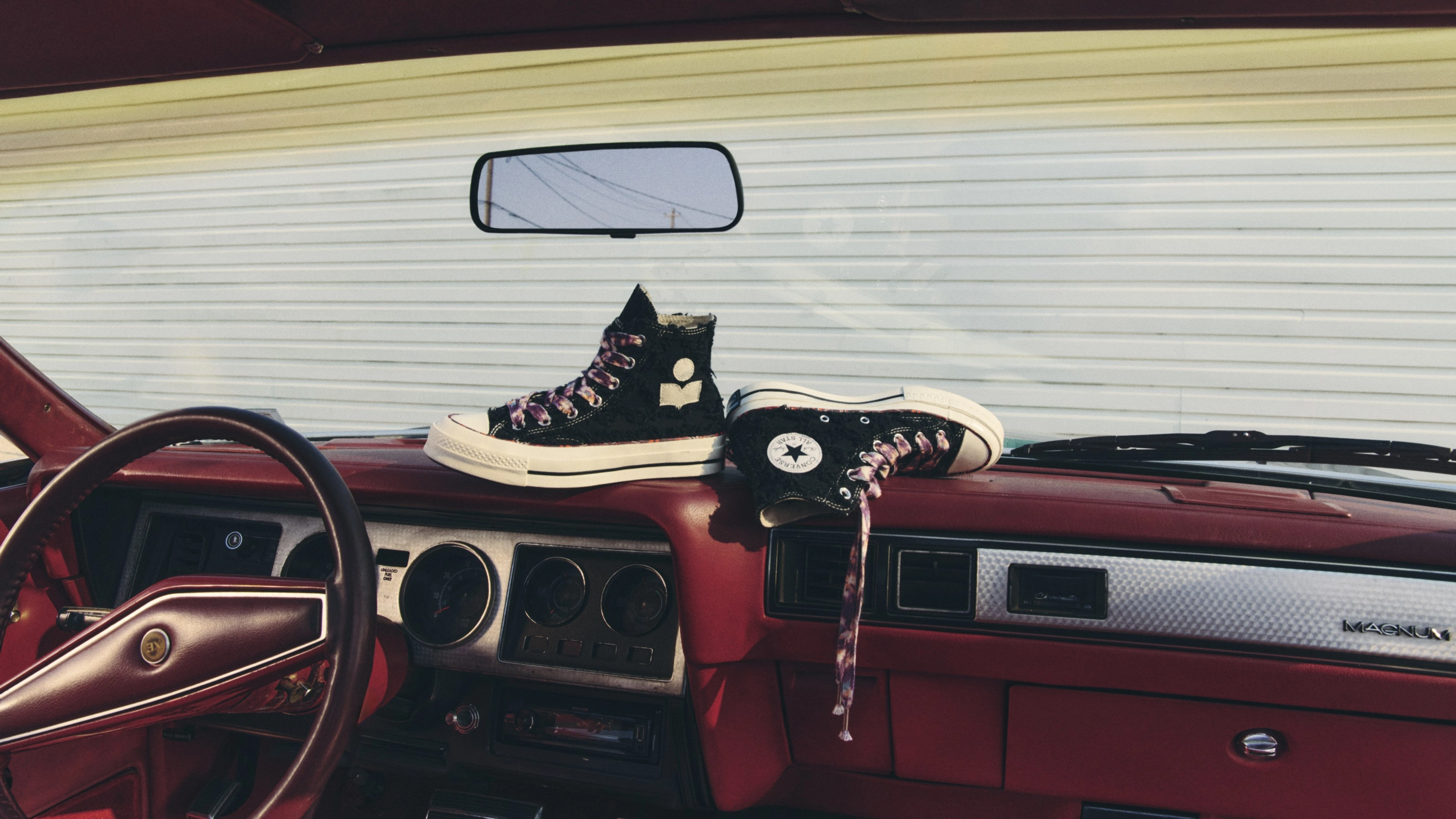 The collaboration also serves to kick off a new chapter of Converse's inline heel offerings with a forthcoming Chuck Taylor All Star Wedge, which includes a classic Chuck design with a 2.5-inch hidden heel for added height. The inline silhouette will commercialize October 3 at converse.com and select global retailers. As part of an ongoing elevation proposition, an inline Chuck 70 Wedge will follow in the coming months.