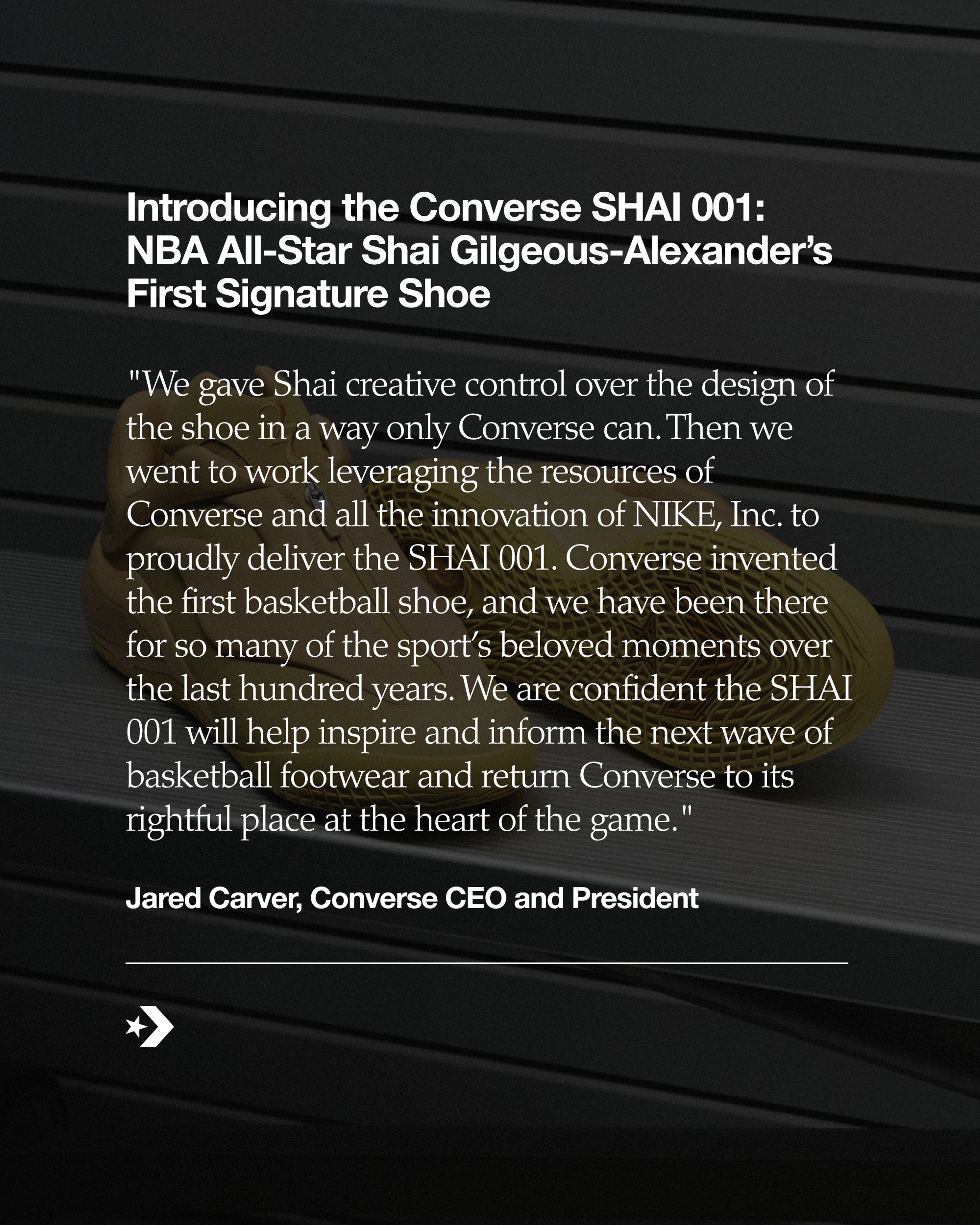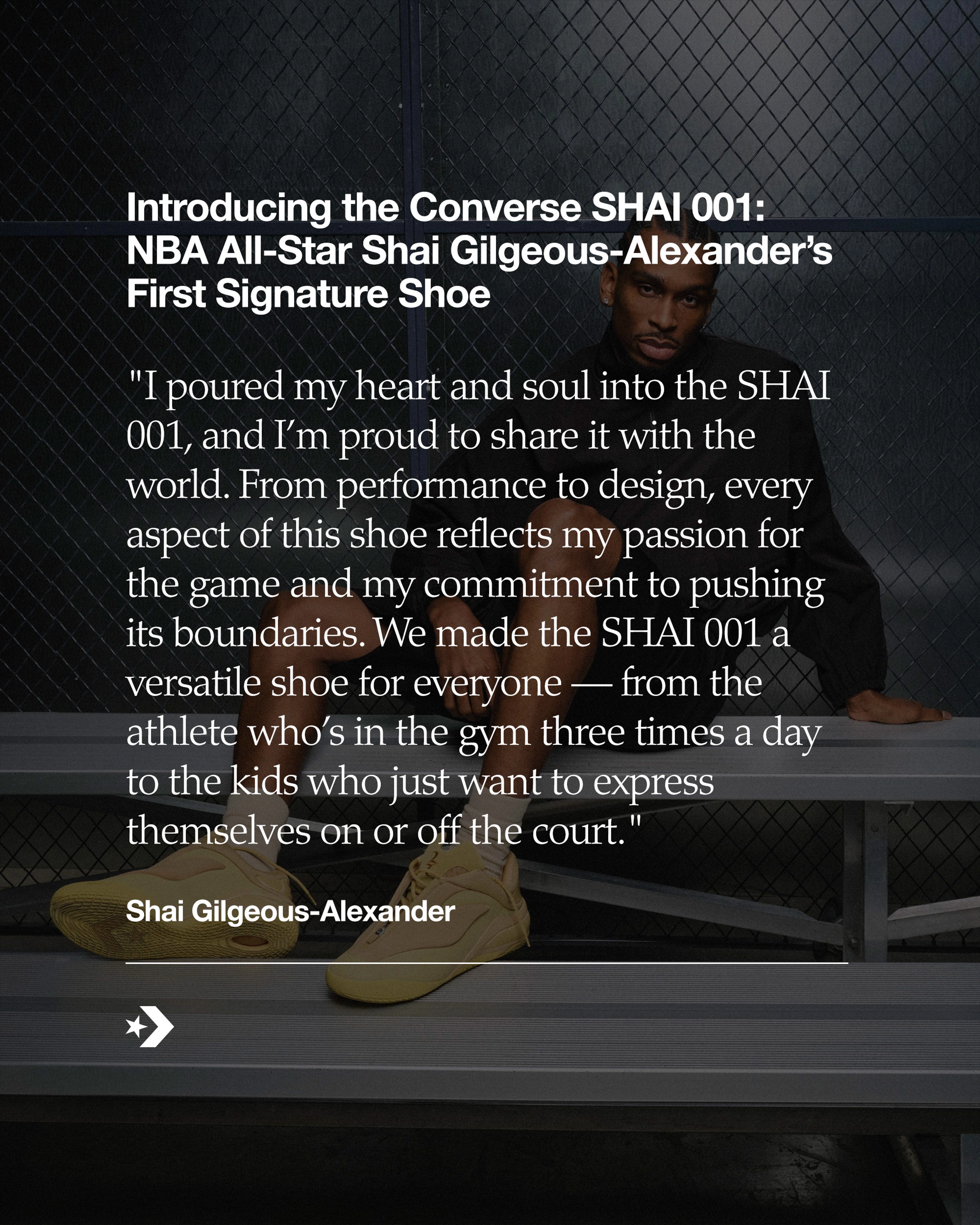 - The Converse SHAI 001, co-created with Shai Gilgeous-Alexander, is a culmination of his desire to redefine performance basketball footwear, both as an athlete and as creative director of Converse Basketball.