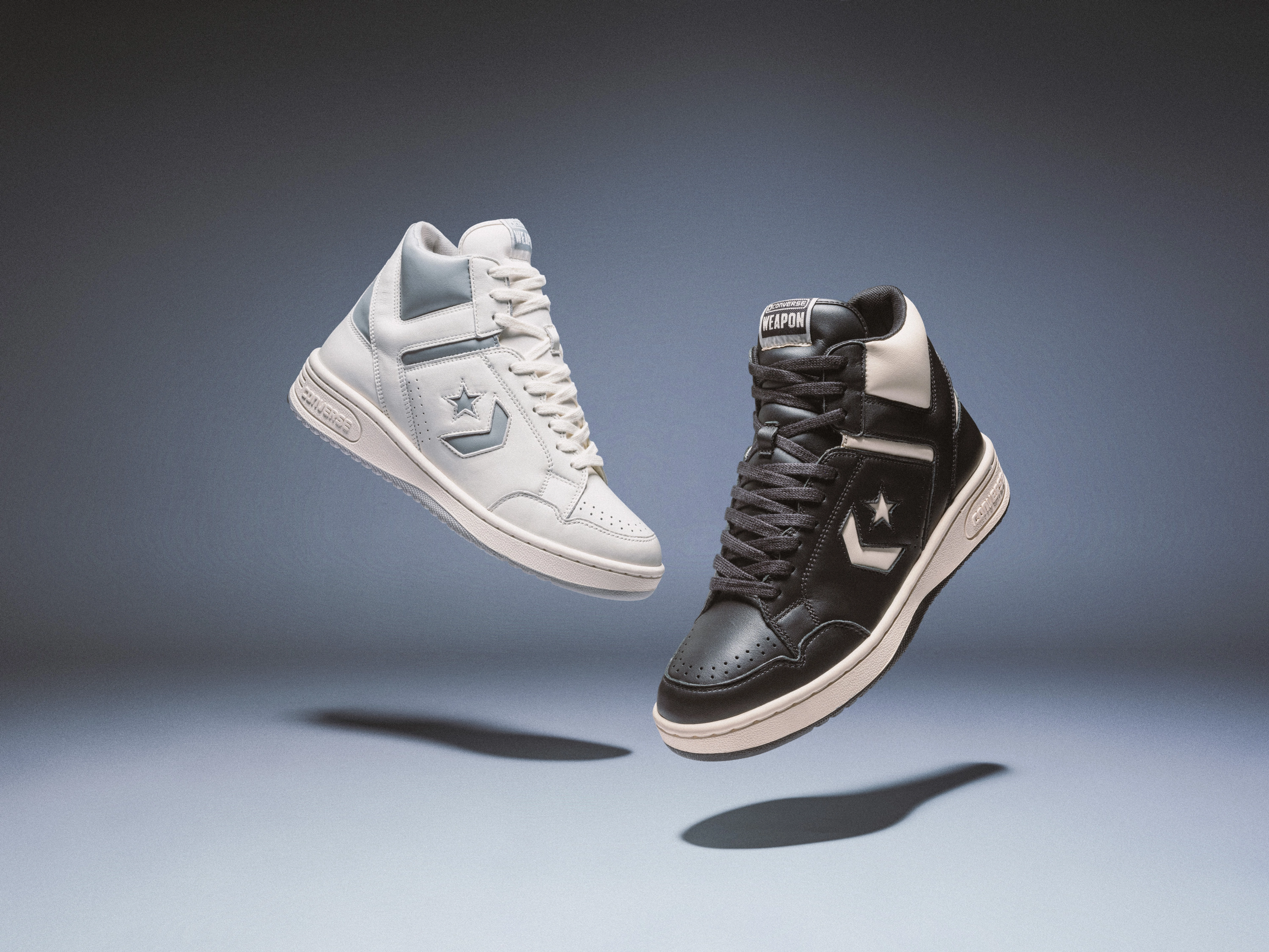 The Weapon arrives in its original colorways, black and natural ivory, as well as vintage white, ash stone and egret. The Weapon Ox appears in white and black, and vintage white and vintage cargo. Both silhouettes release February 8 on converse.com and at select retailers.