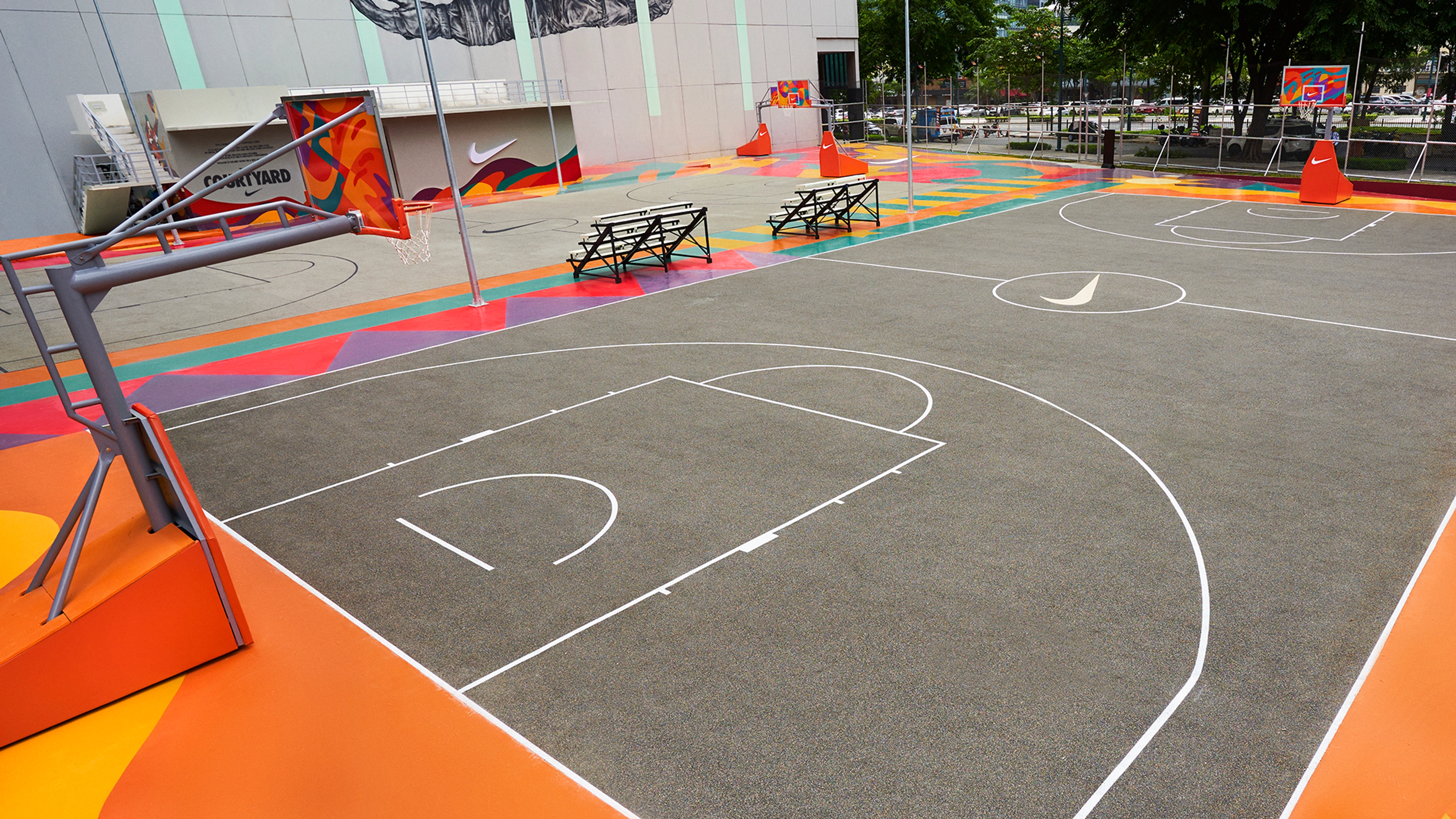 The Courtyard is located in the heart of Bonifacio Global City, a district in Taguig, Metro Manila, Philippines. The space is a popular destination for Manila youth, serving as a hangout spot and sports hub. Covering 2,182 square meters, the space includes two full-size basketball courts made of Nike Grind and one half-court training area intended for practice shooting. Weekly pickup games and regular basketball camps will be led by Nike coaches, and Nike Members will be able to reserve the courts through the Nike App. All programs, skill camps and athlete camps will be offered for free year-round.
