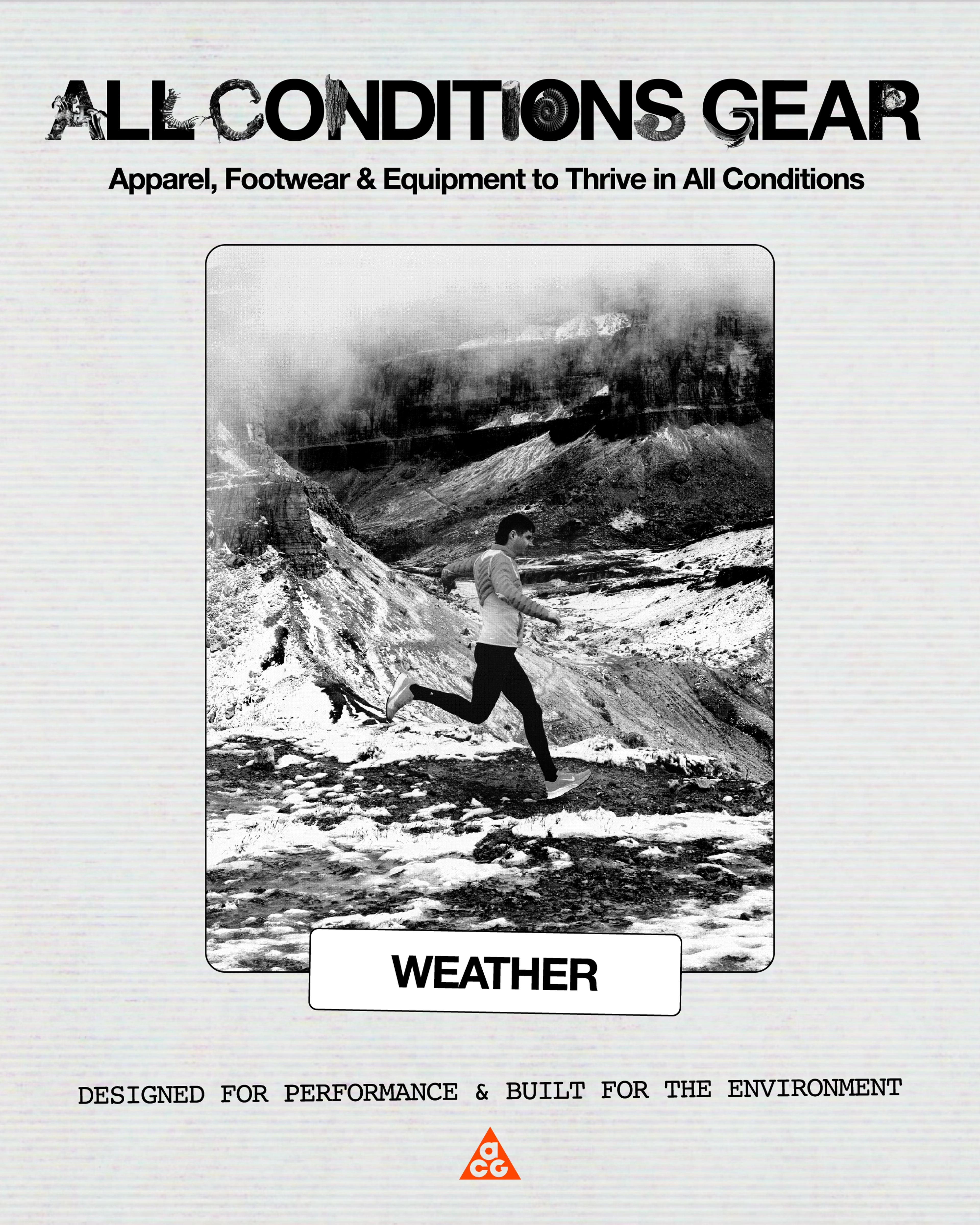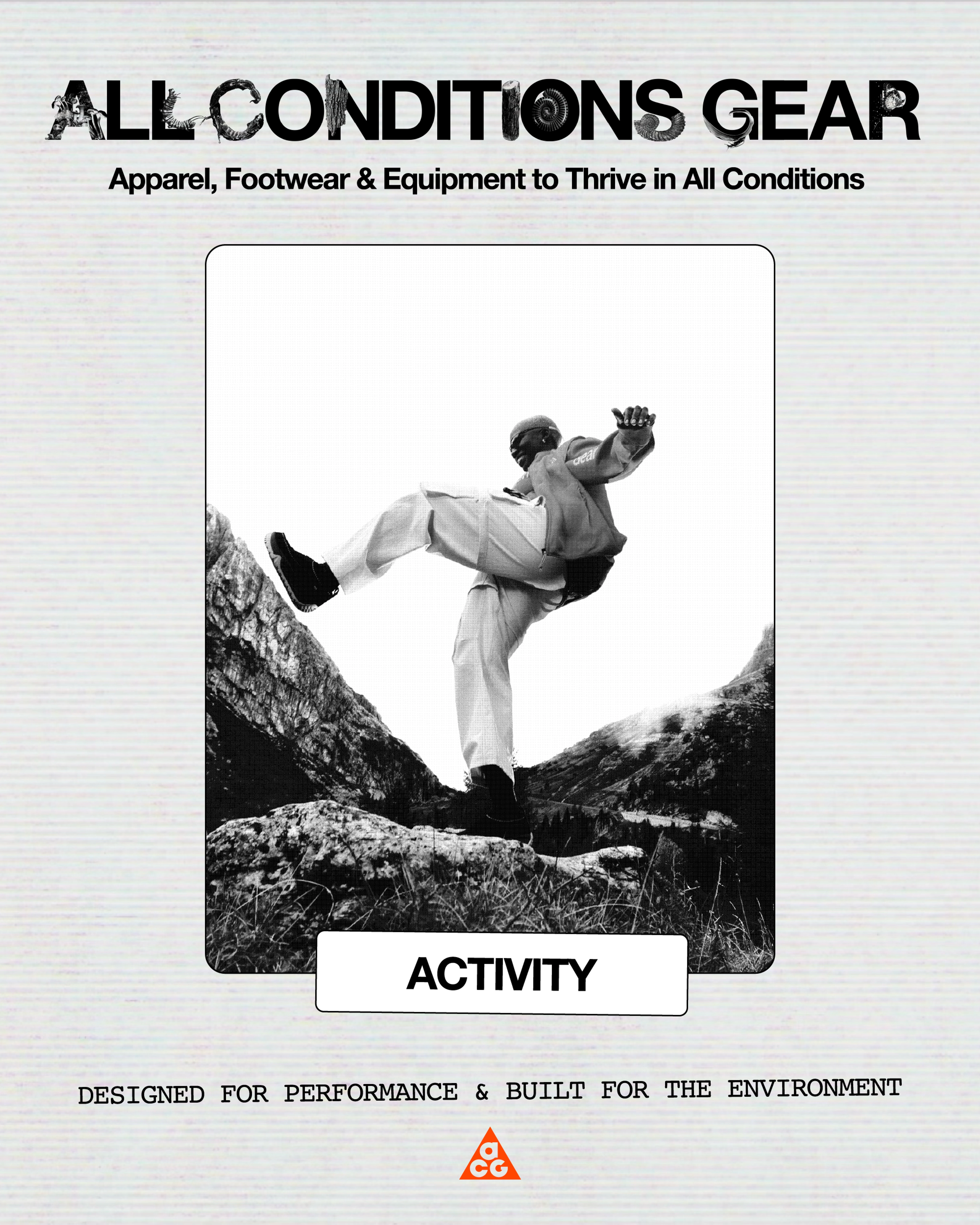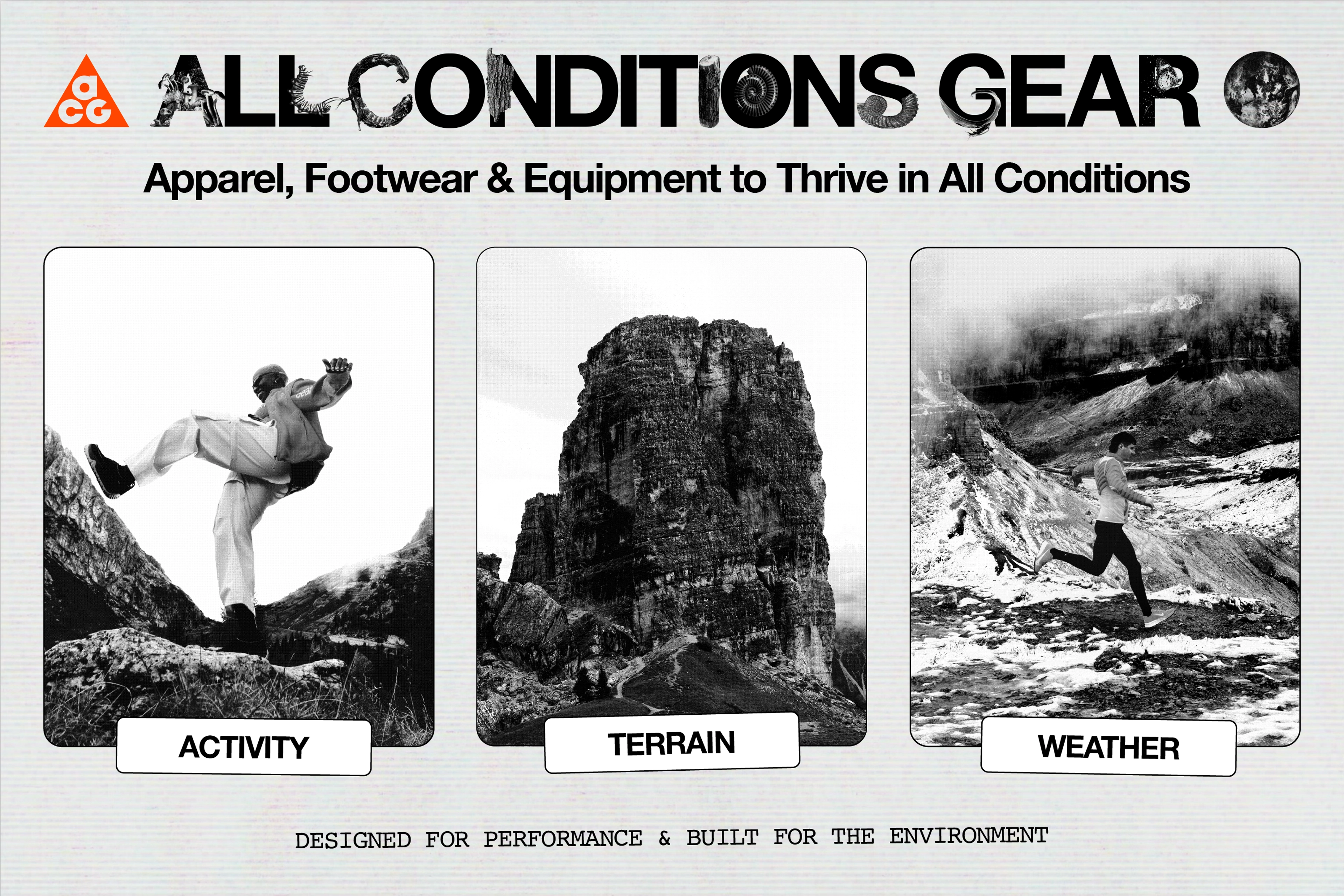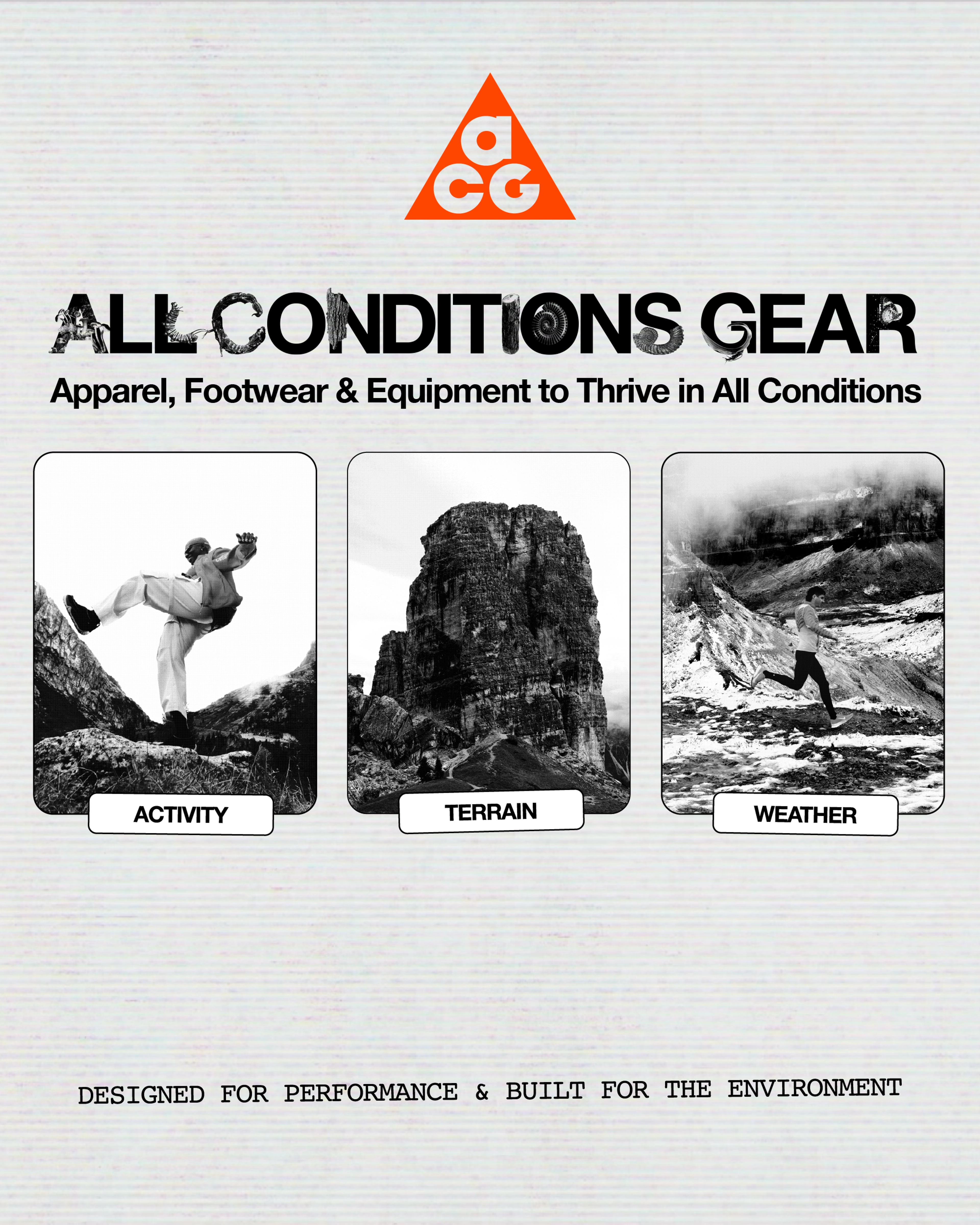 - Grounded in a deep understanding of outdoor athletes, ACG performance product is designed to perform across sport, weather and terrain — making it easier to find the right solutions and get outside with confidence.