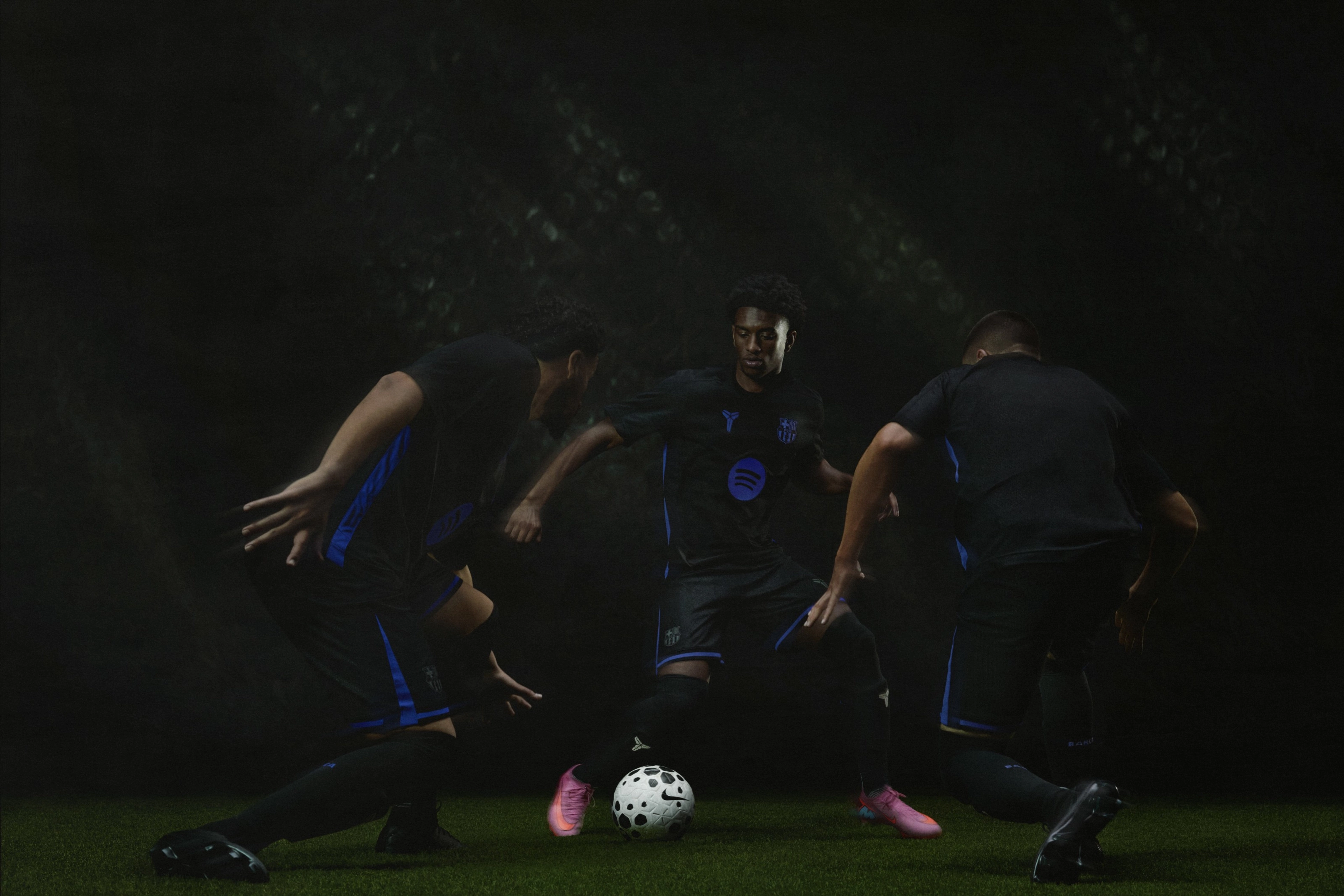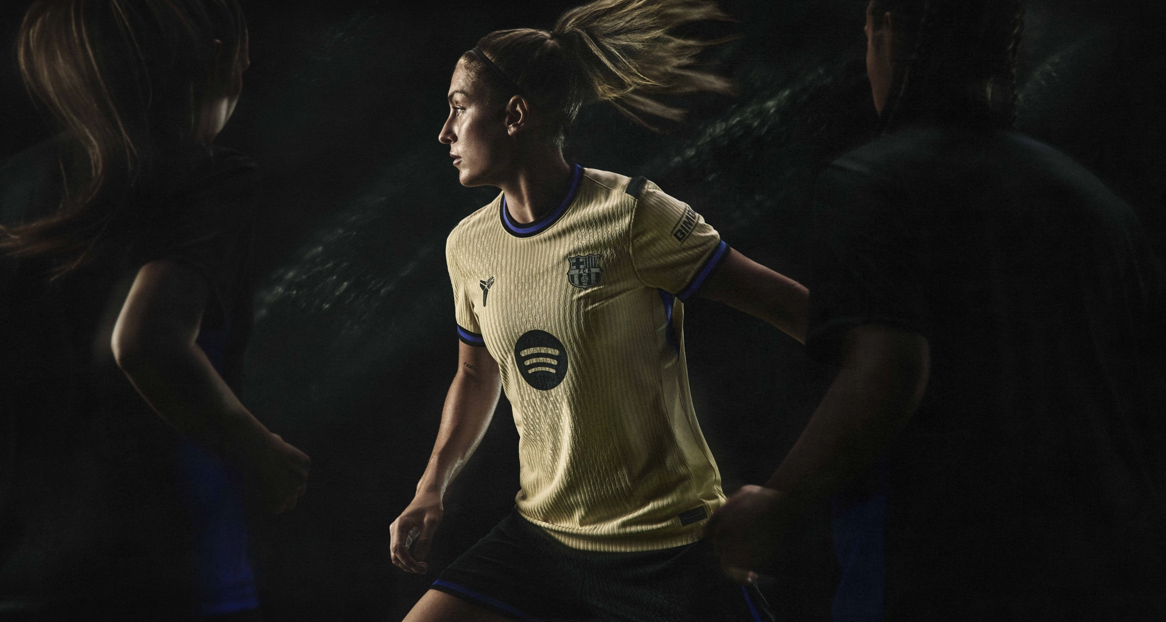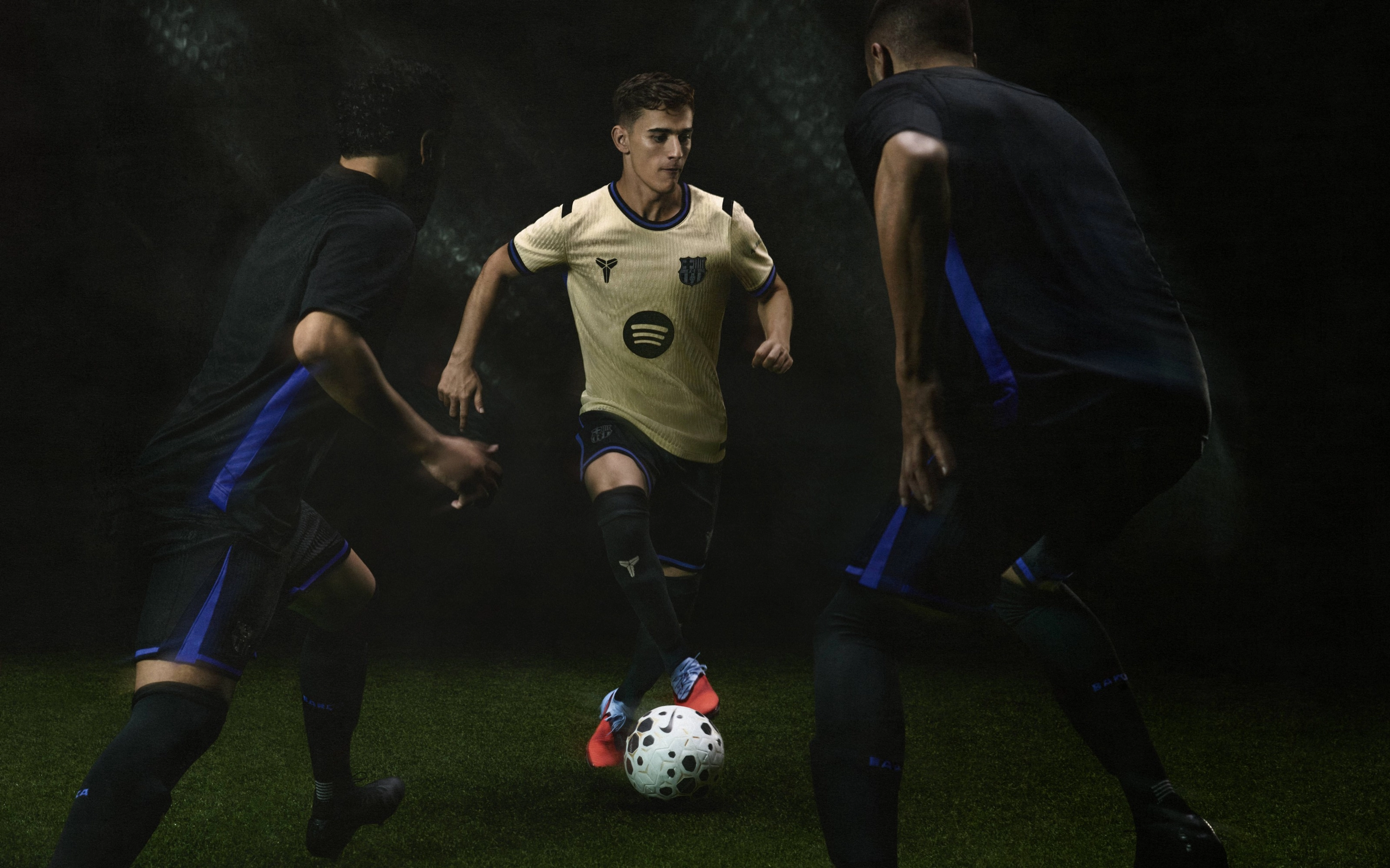 This shared mentality is channeled into Barça’s 2025–26 away kit, which features the Kobe Sheath in place of the traditional Nike Swoosh and takes inspiration from Kobe’s classic on-court looks.