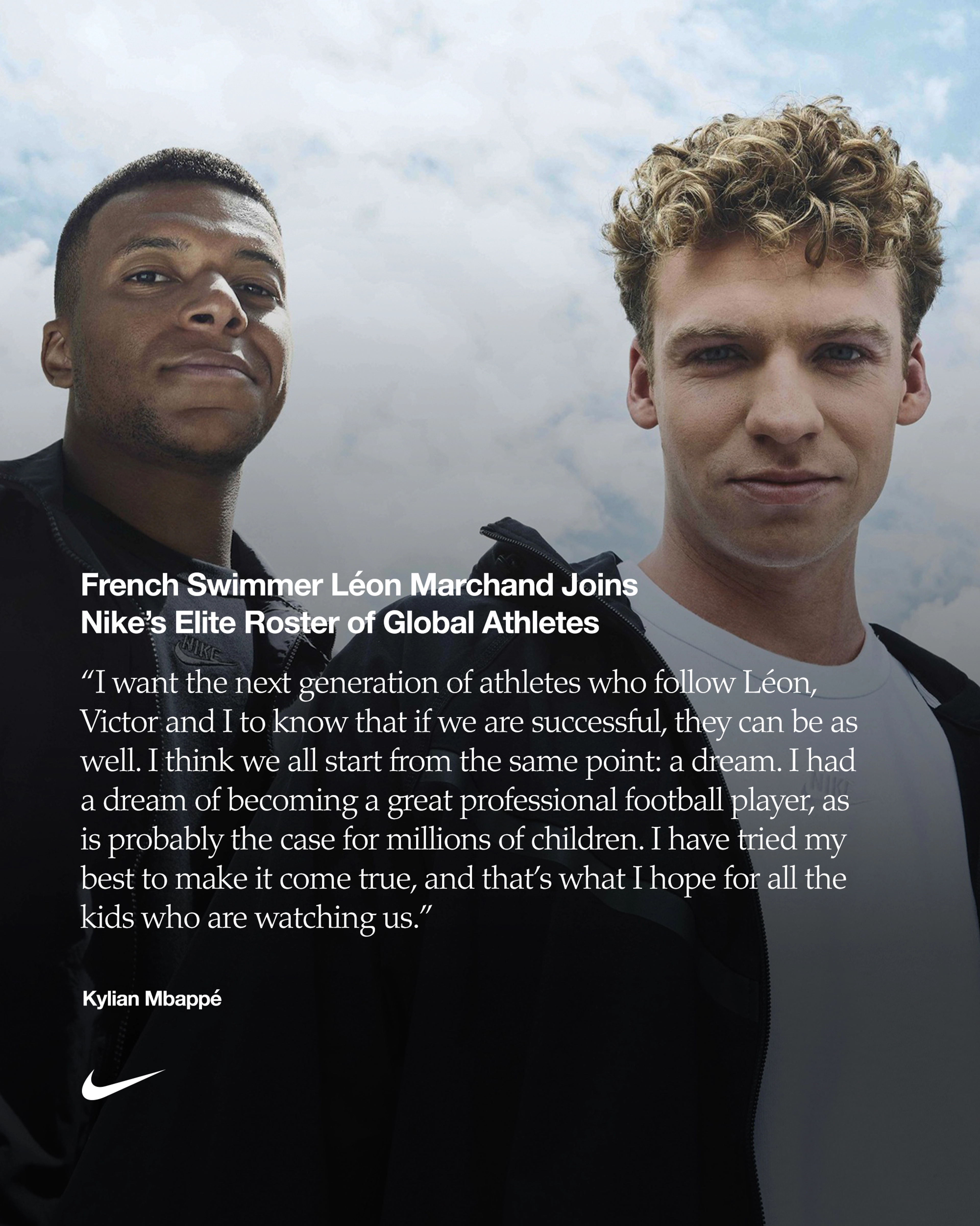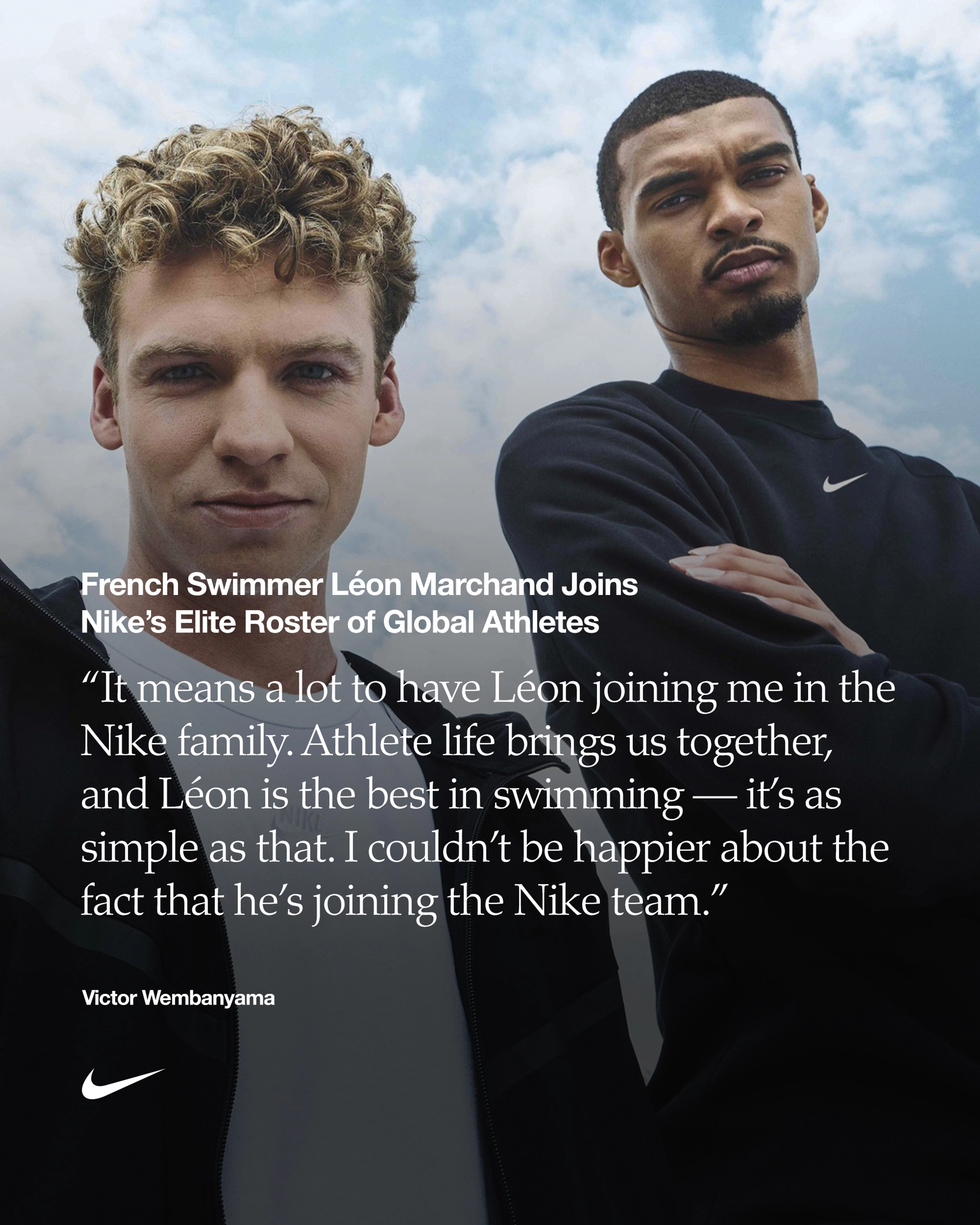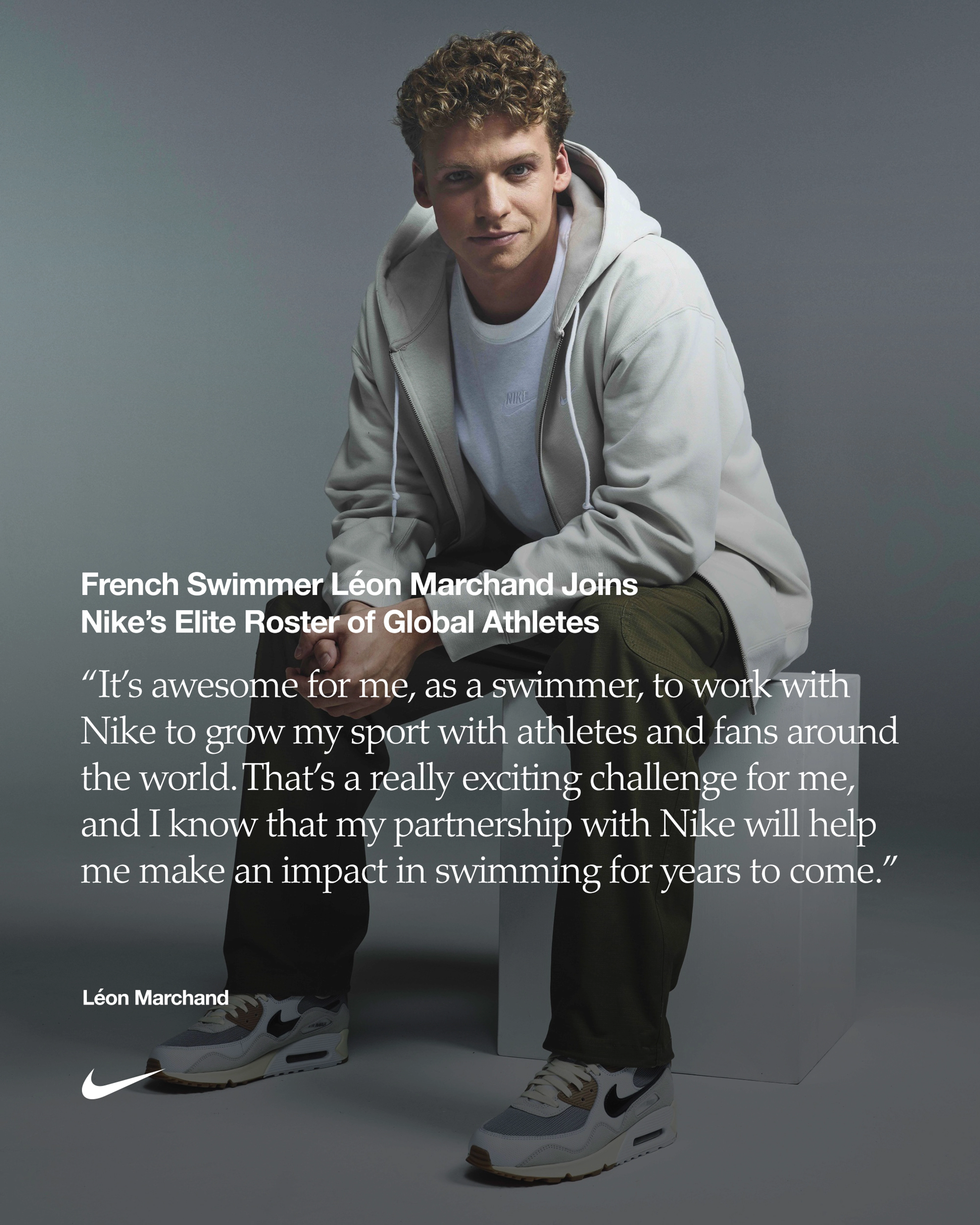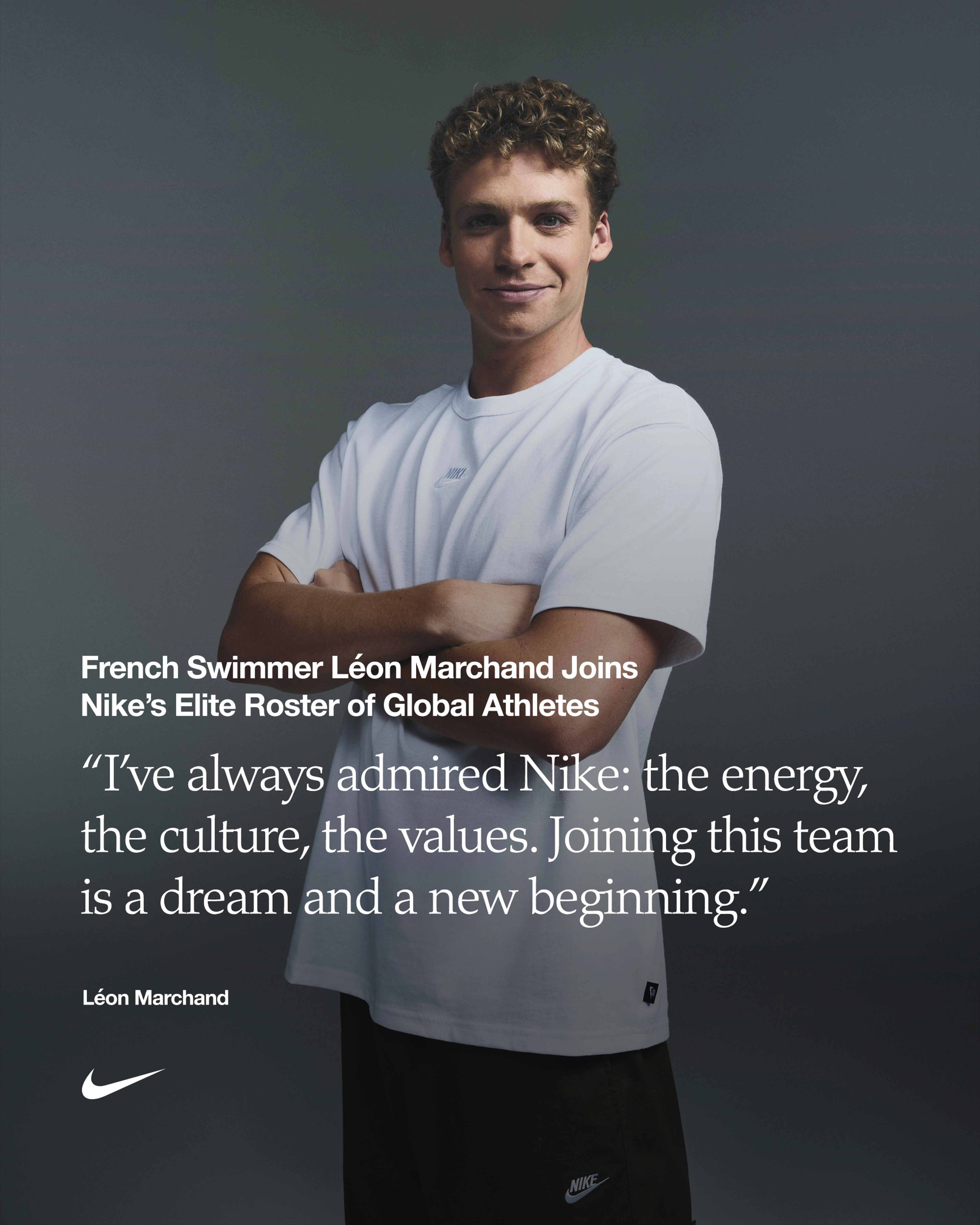 Nike is announcing the addition of French swimmer Léon Marchand, a four-time Olympic gold medalist and five-time world champion, to its unparalleled roster of global athletes.