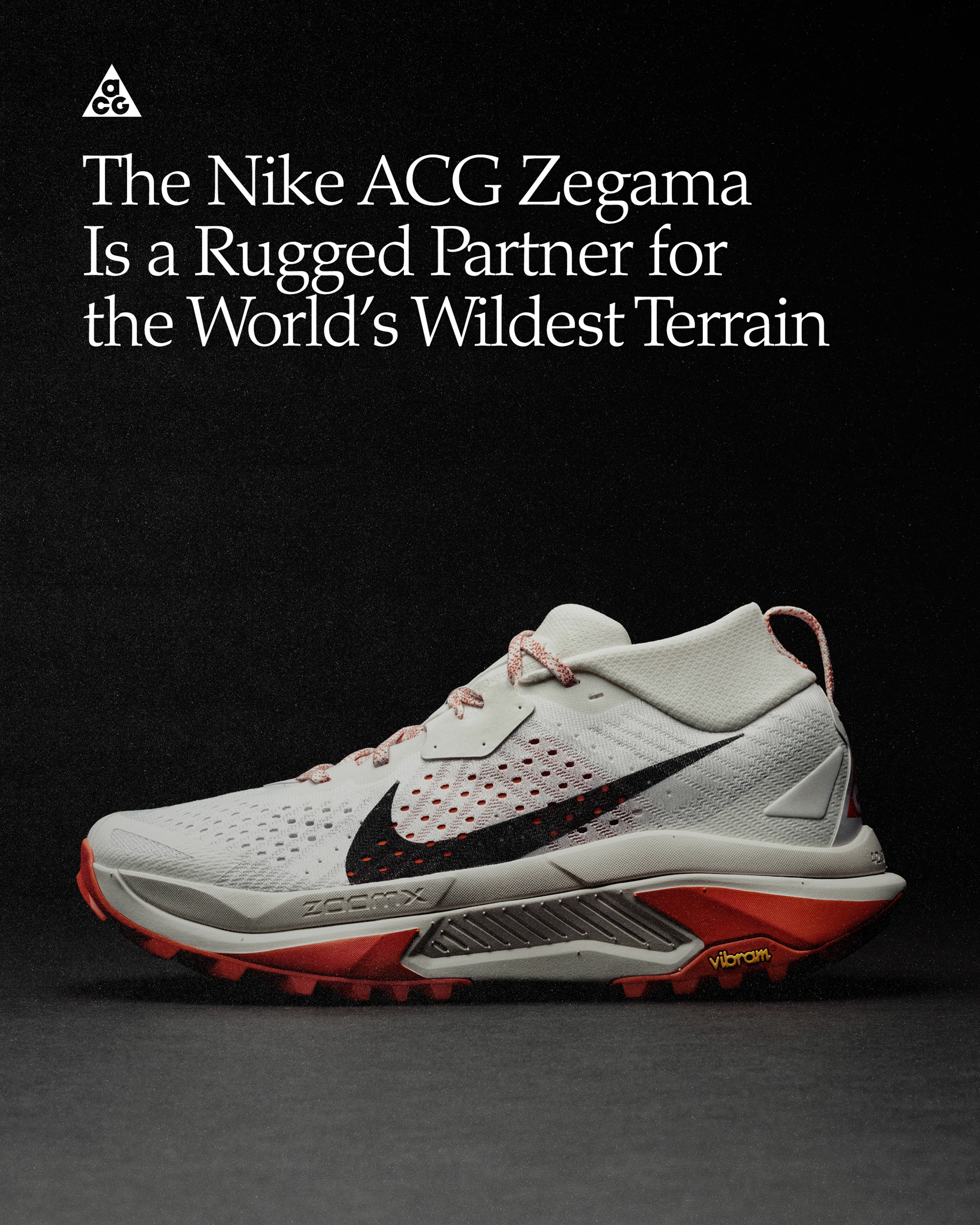 • The Nike ACG Zegama is a rugged, athlete-tested silhouette that combines premium cushioning, protection and traction to help runners move across the world’s wildest terrain — all day and all night.