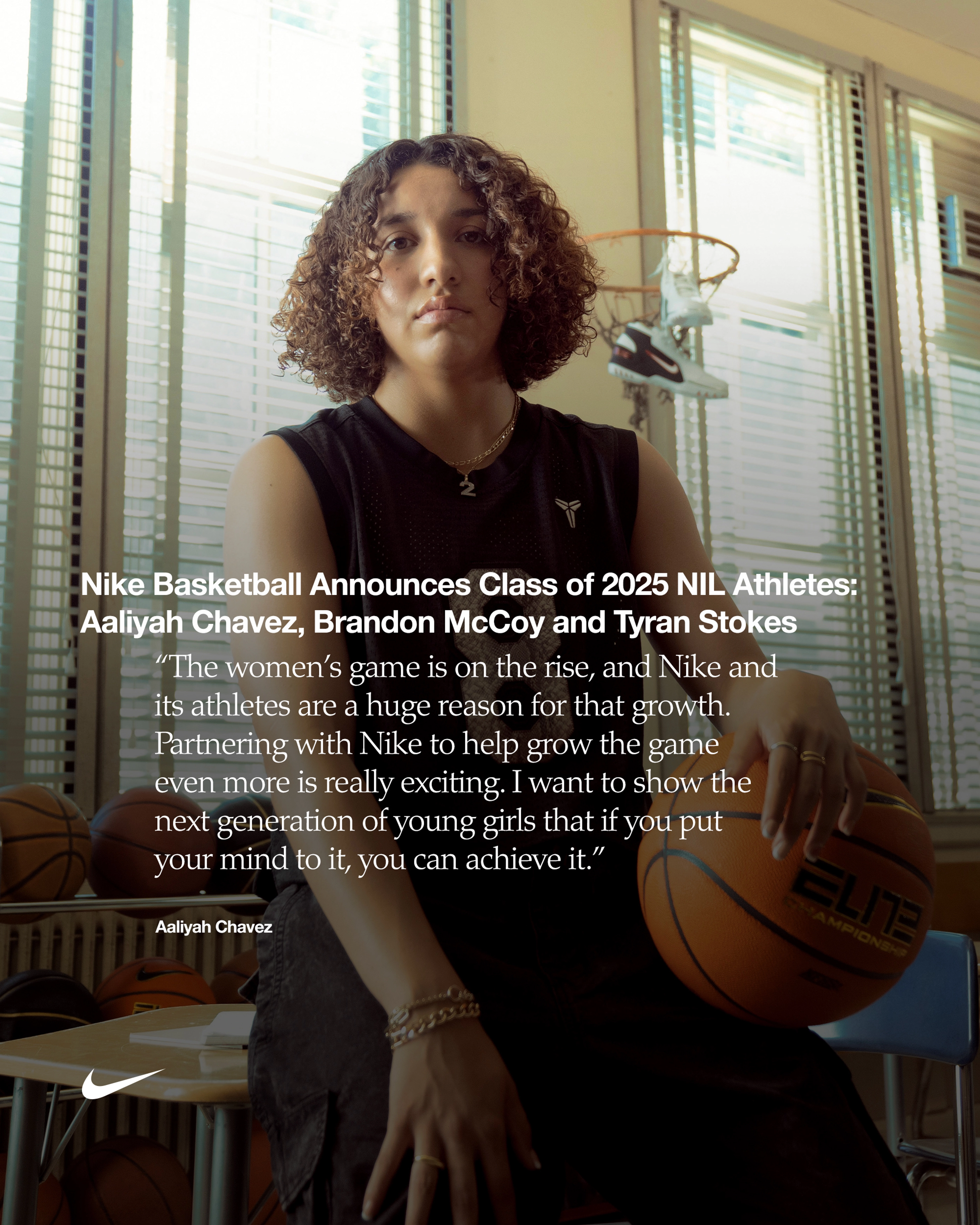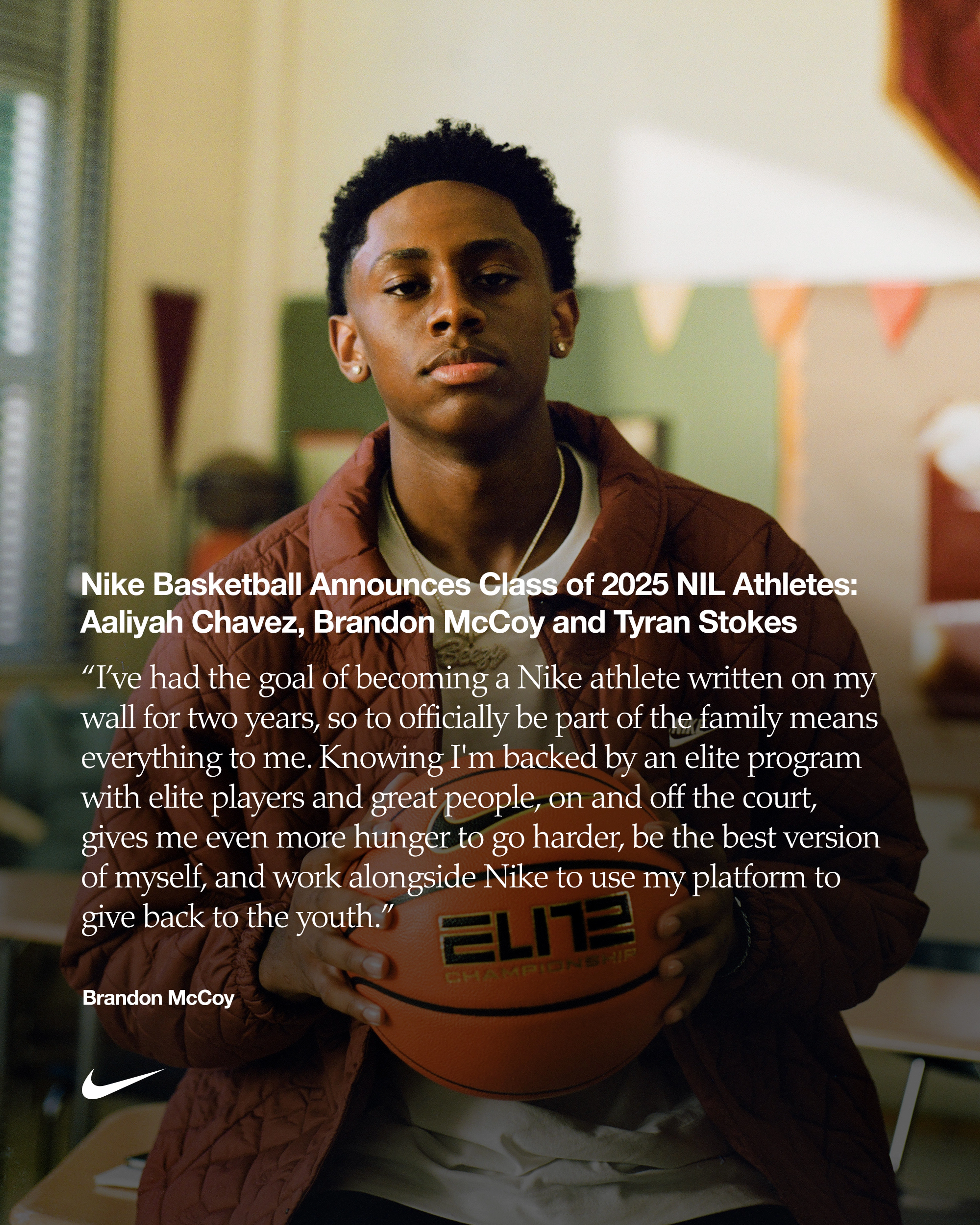 • Nike Basketball is announcing its elite Class of 2025 NIL athletes: Aaliyah Chavez, Brandon McCoy and Tyran Stokes.