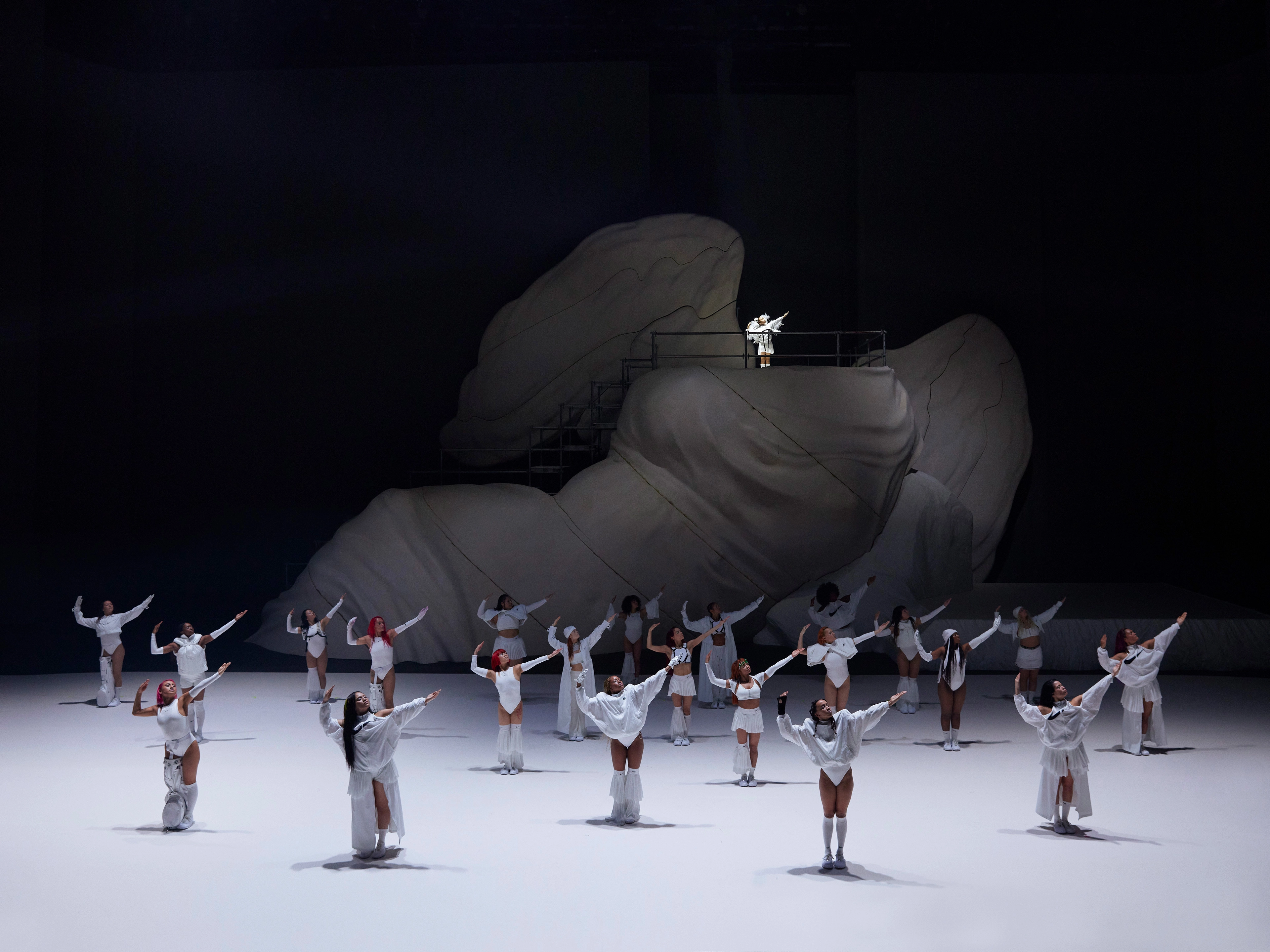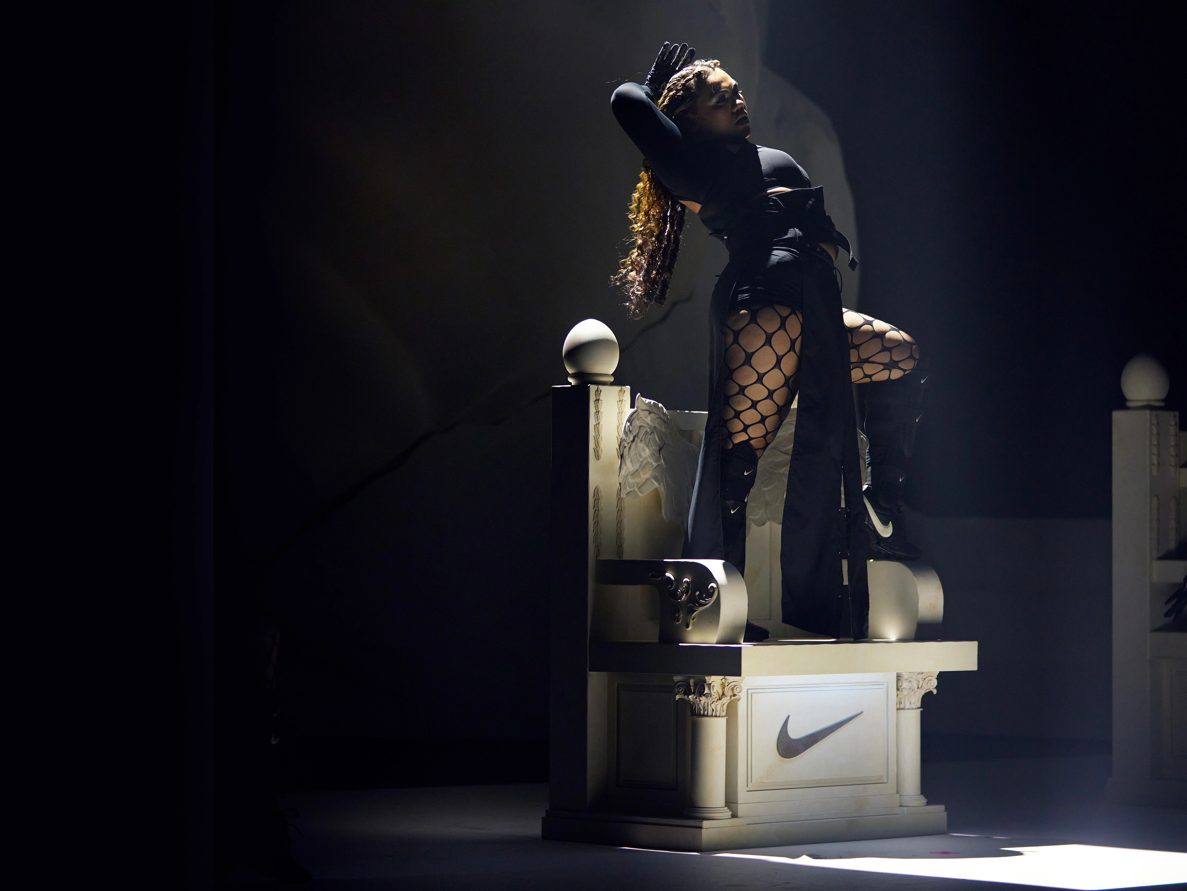 “Throughout history, women have been told how to act, what to say, how to feel — tonight is about breaking those binds and letting our voices be heard, our bodies be acknowledged, and our wings take flight, together,” says Goebel, who wrote a letter to the audience to help set the tone for the night [included in the gallery below]. “To me, there is no better way to express the love, grief, power and femininity of this moment than through dance, and I’m grateful for Nike’s partnership in giving me the stage, literally and figuratively, to do it.”