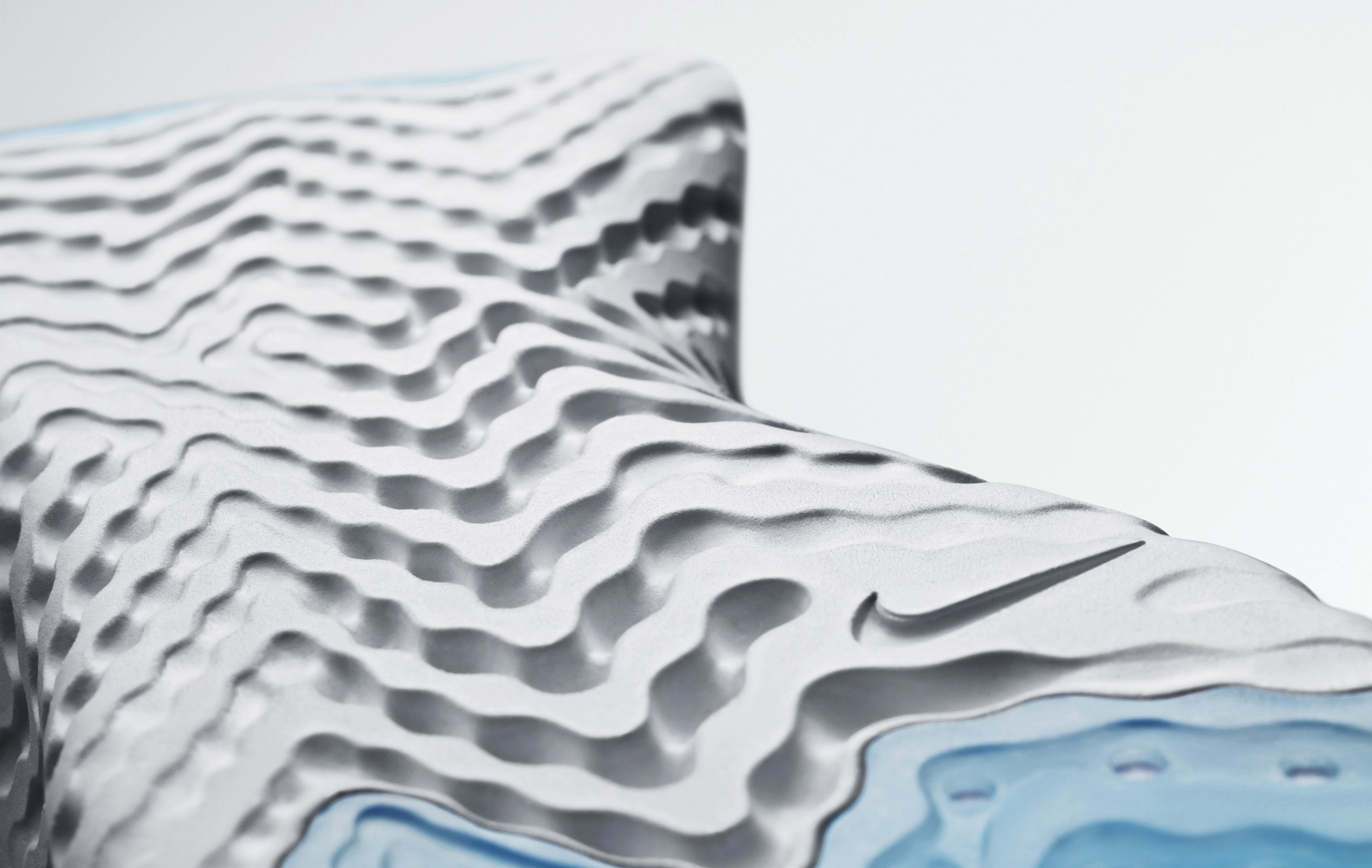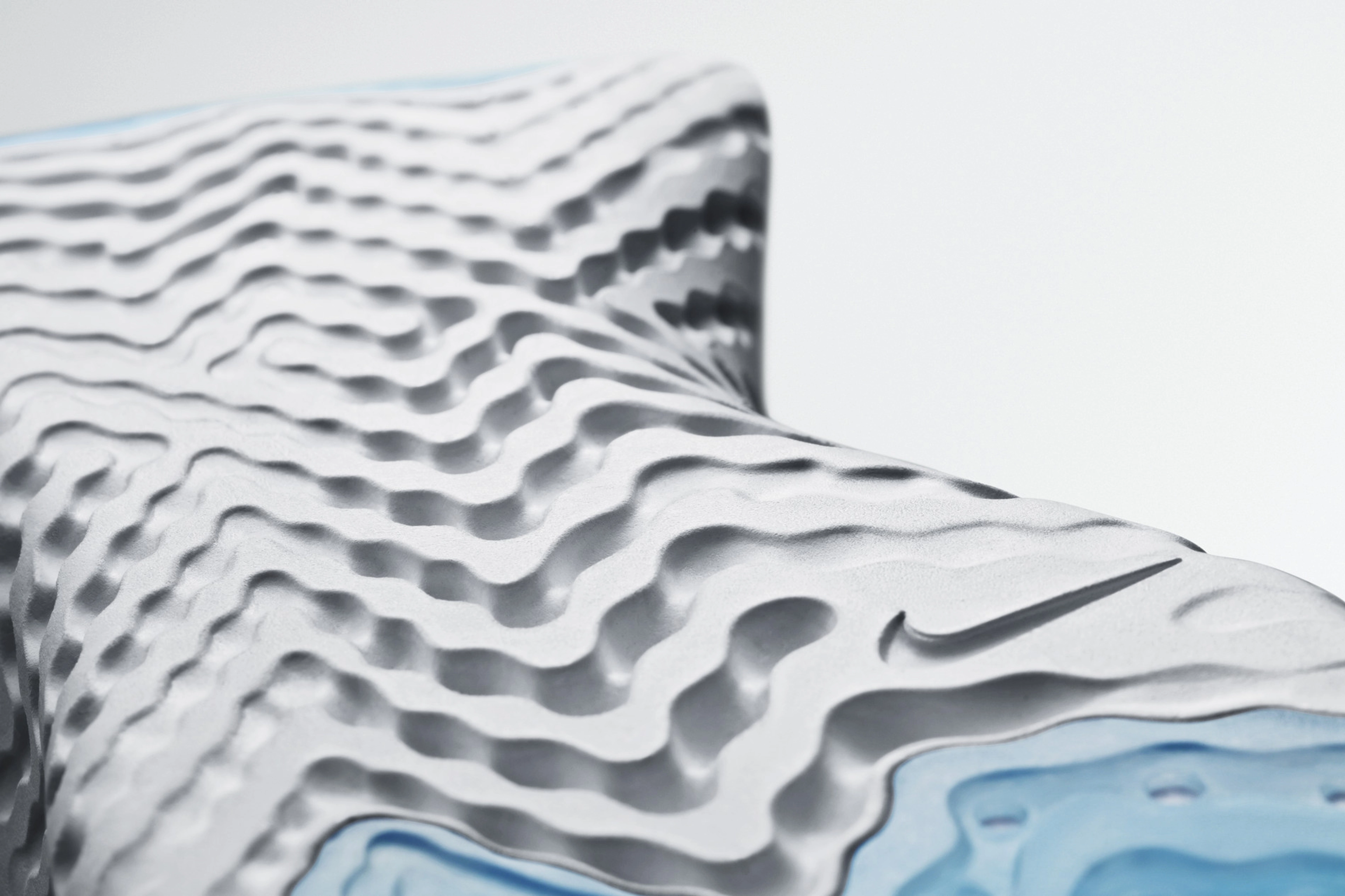 “This allowed us to make rapid, data-informed decisions on how to shape midsoles and outsoles to maximize the benefits of Nike React foam,” says Kim. They then took this a step further by feeding that data into a proprietary algorithm, and that algorithm generated a unique surface geometry that further amplified the running performance benefits of Nike React technology.