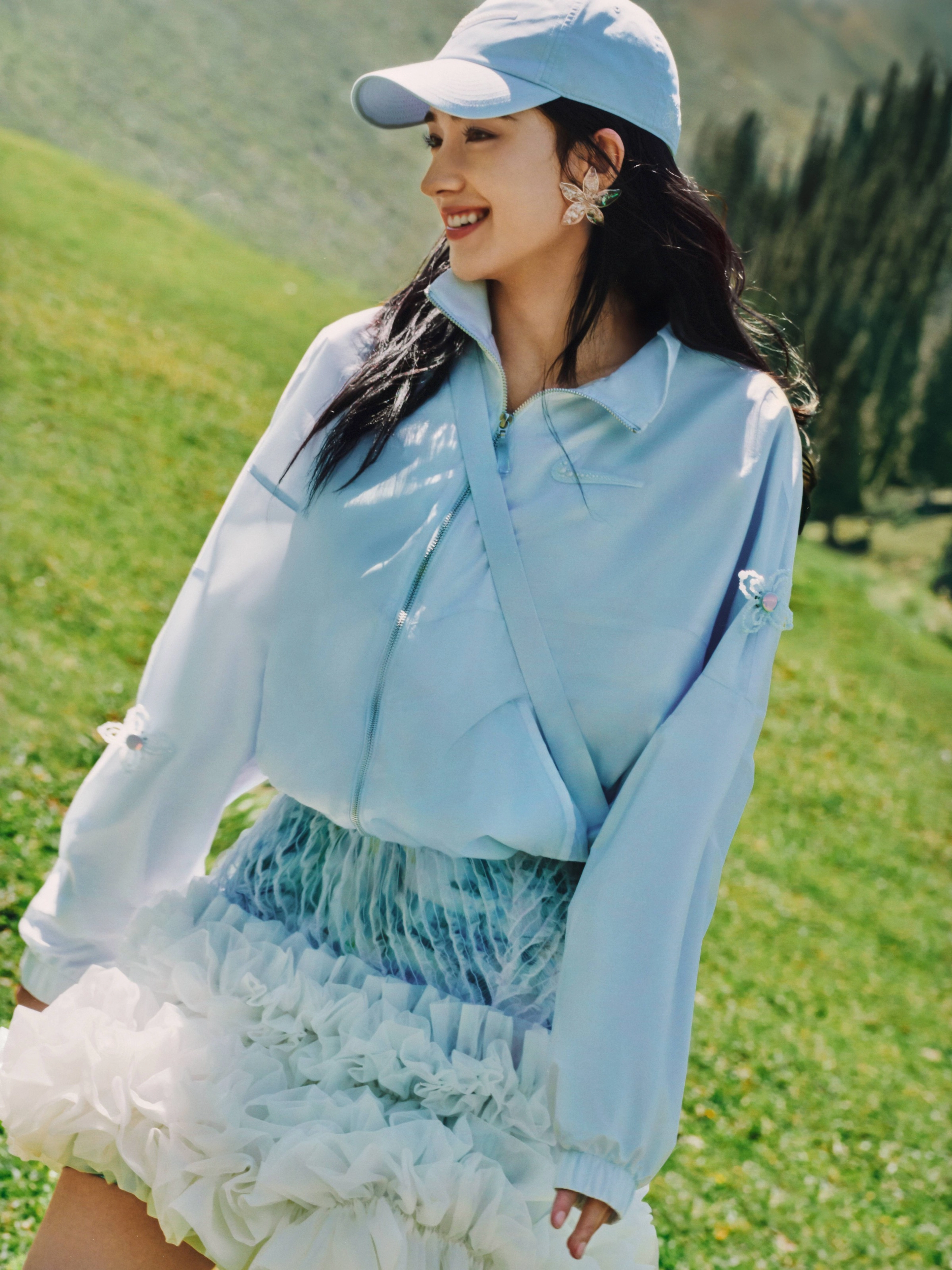 The Women’s Artist Collection footwear is joined by a versatile jacket adorned with three-dimensional beaded flowers; sports bras and shorts featuring forget-me-not prints; and expressive shoulder bags, socks and long-sleeve T-shirts. Throughout the collection, tones of airy blue, fresh green and dawn yellow weave a palette of emotion that symbolizes love, memory and renewal.