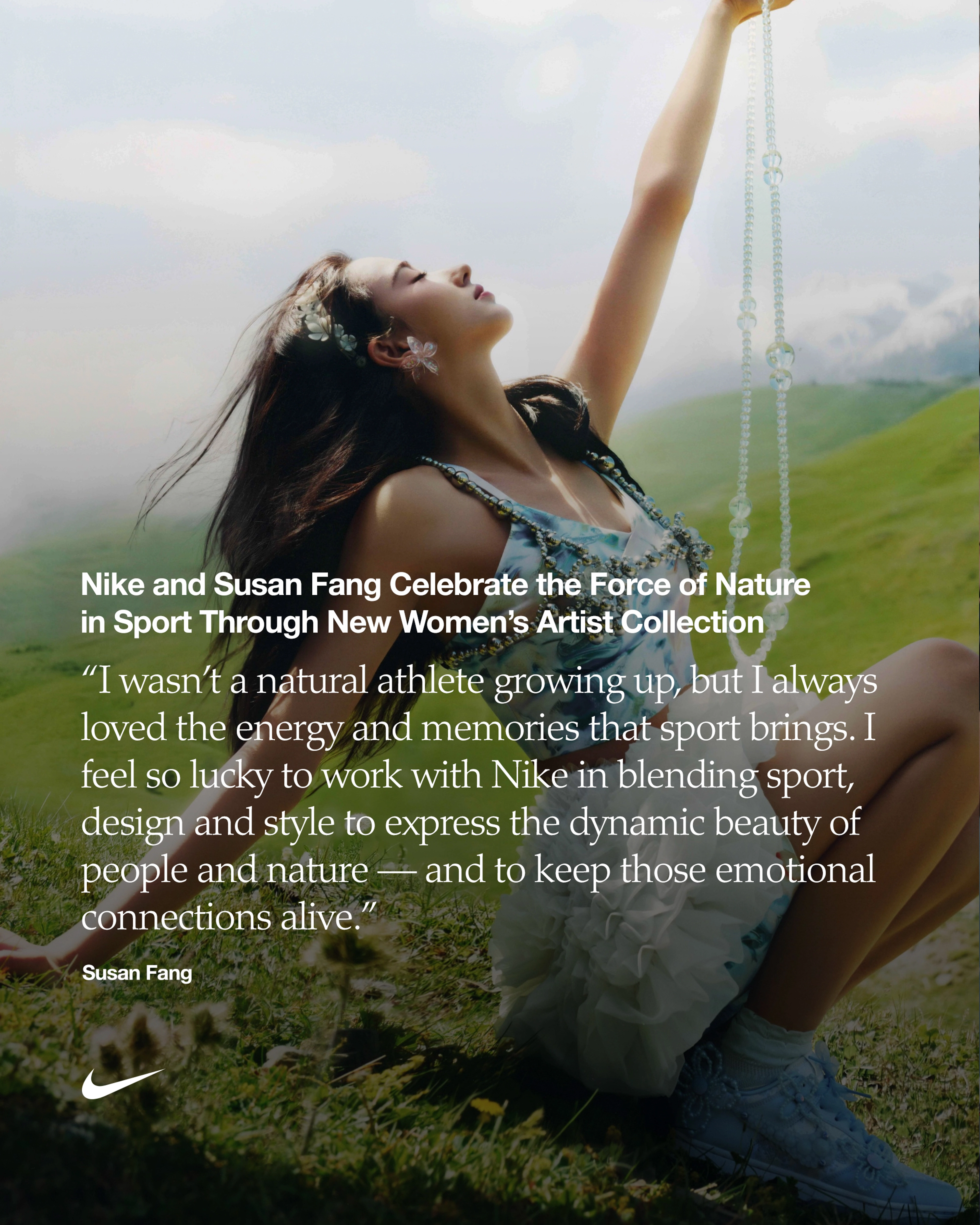 Two years ago, Chinese designer and artist Susan Fang joined Nike’s Boundless Girl initiative in rural Yunnan, where she created a vibrant, nature-inspired playground to encourage girls to run freely and chase their passions. Today, that same spirit of gentle strength and resilience finds new expression in Susan’s Nike Women’s Artist Collection.