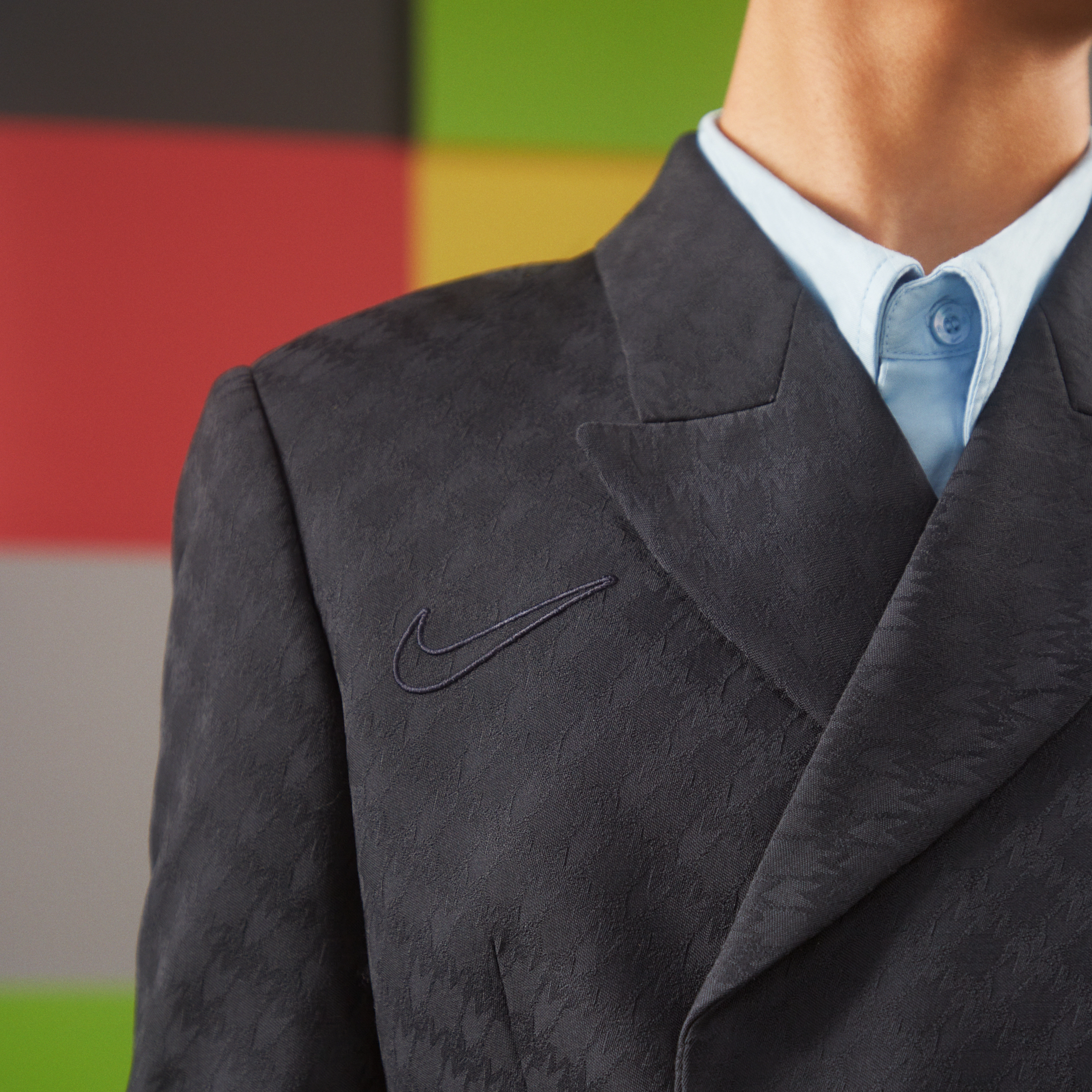 The Nike x Martine Rose Collection dissolves the boundaries of men and women’s football styling with gender-free tailored player suiting that advances sport style and expands the culture of sport for the next generation. Purposefully connecting and merging the moments of “getting off the plane” to “arriving on the pitch,” the collection elevates the look of the elite women’s game and closes the gender gap in considered, crafted tailoring for women’s sport.