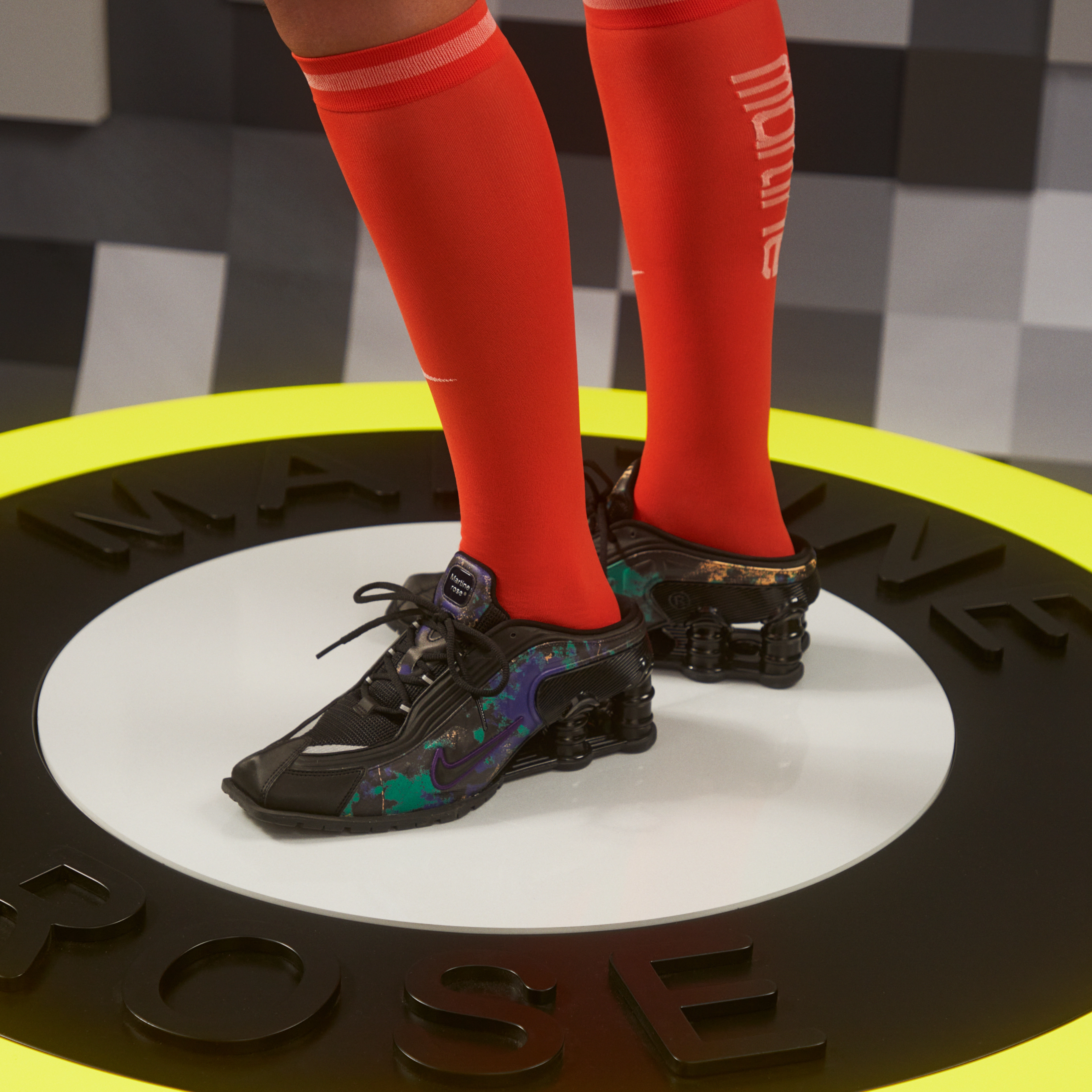 - The Nike x Martine Rose Collection features a player’s suit jacket, trouser, trench and shirt; accessories, including stockings, gloves and sunglasses; and the latest iteration of the Nike x Martine Rose Shox Mule MR 4.
