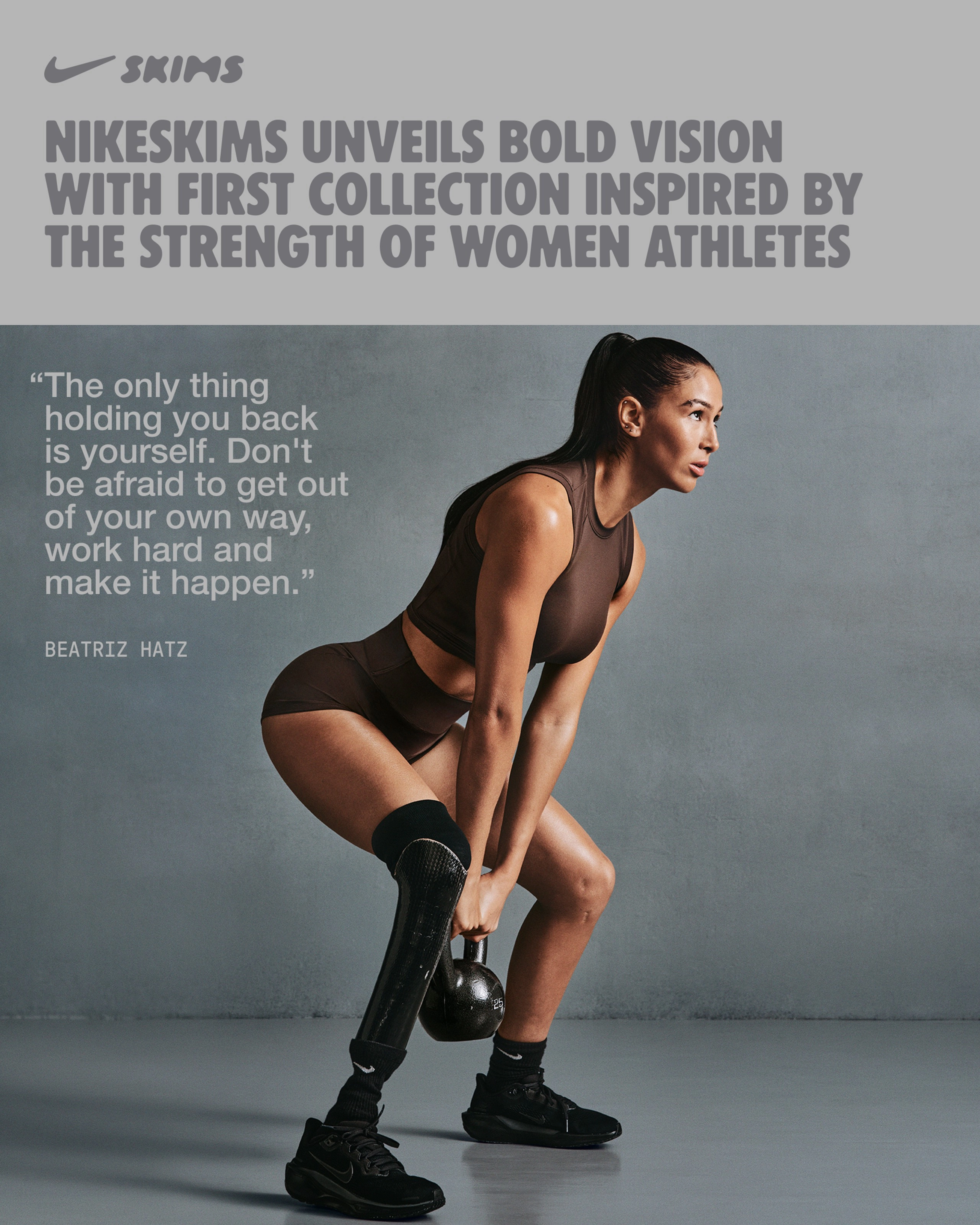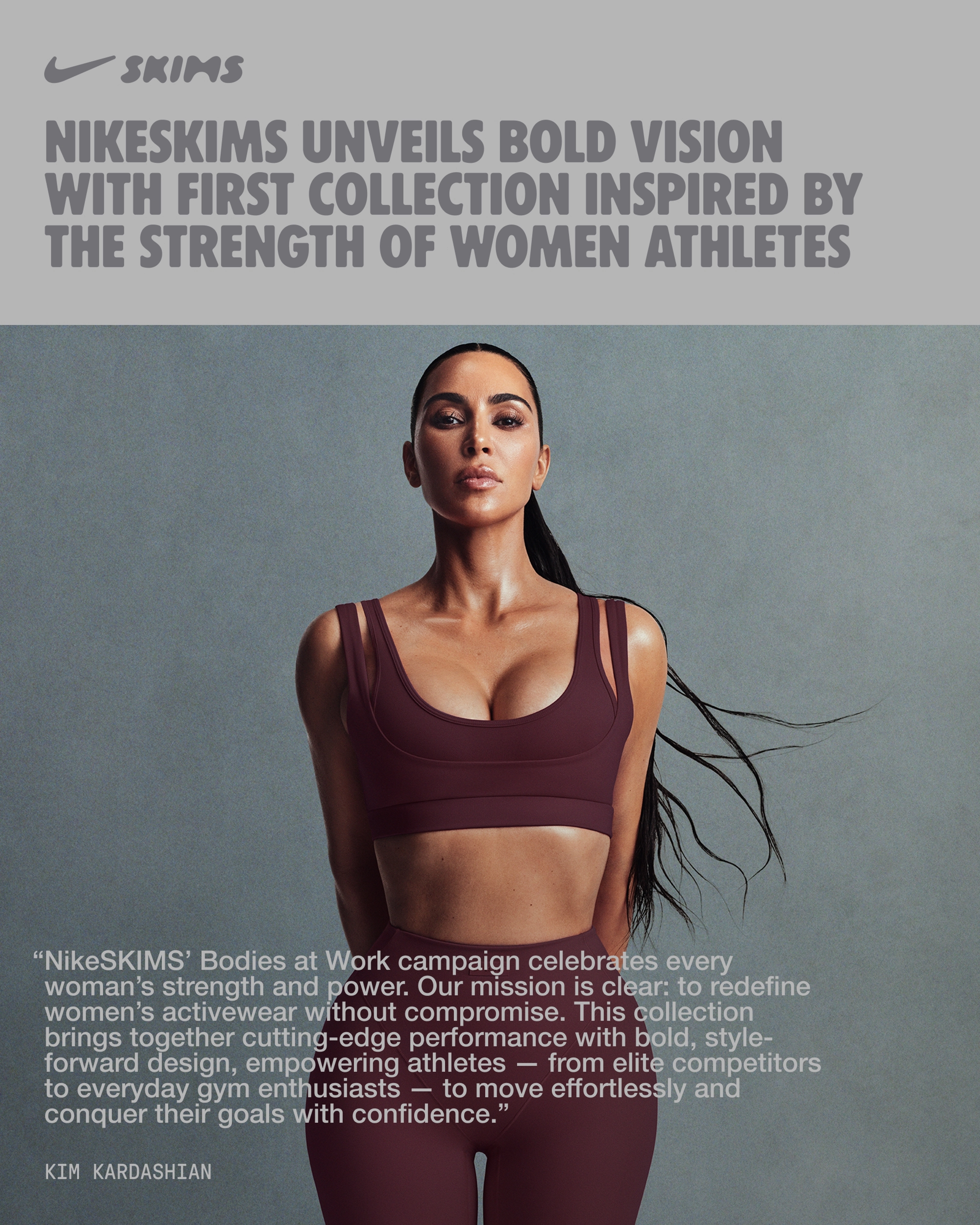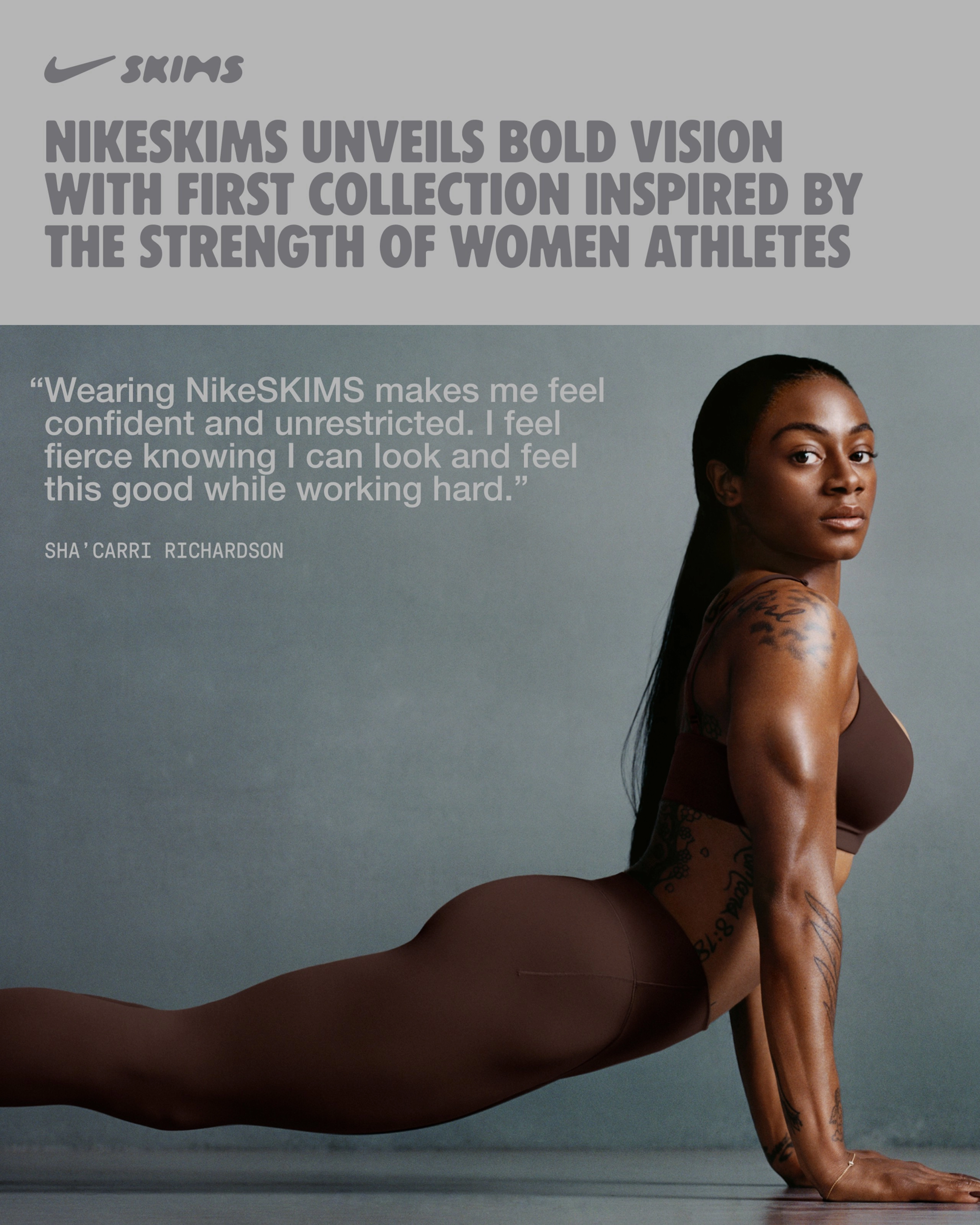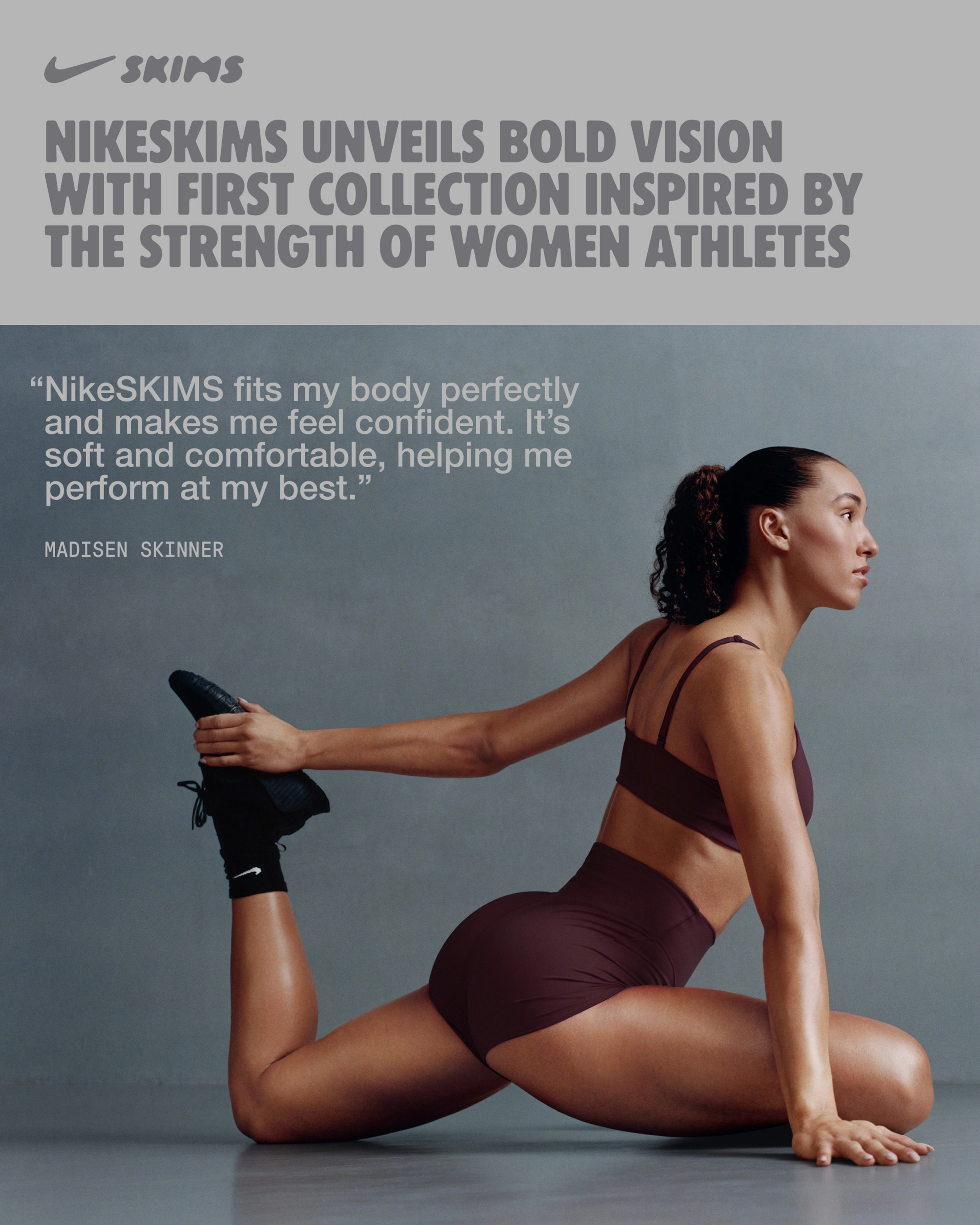“NikeSKIMS is a bold evolution in how women experience sport and style — and together with SKIMS, we’re delivering what no other brand can,” says Amy Montagne, President, Nike. “It’s part of Nike’s broader commitment to her: uncompromising product innovation that moves and celebrates women."