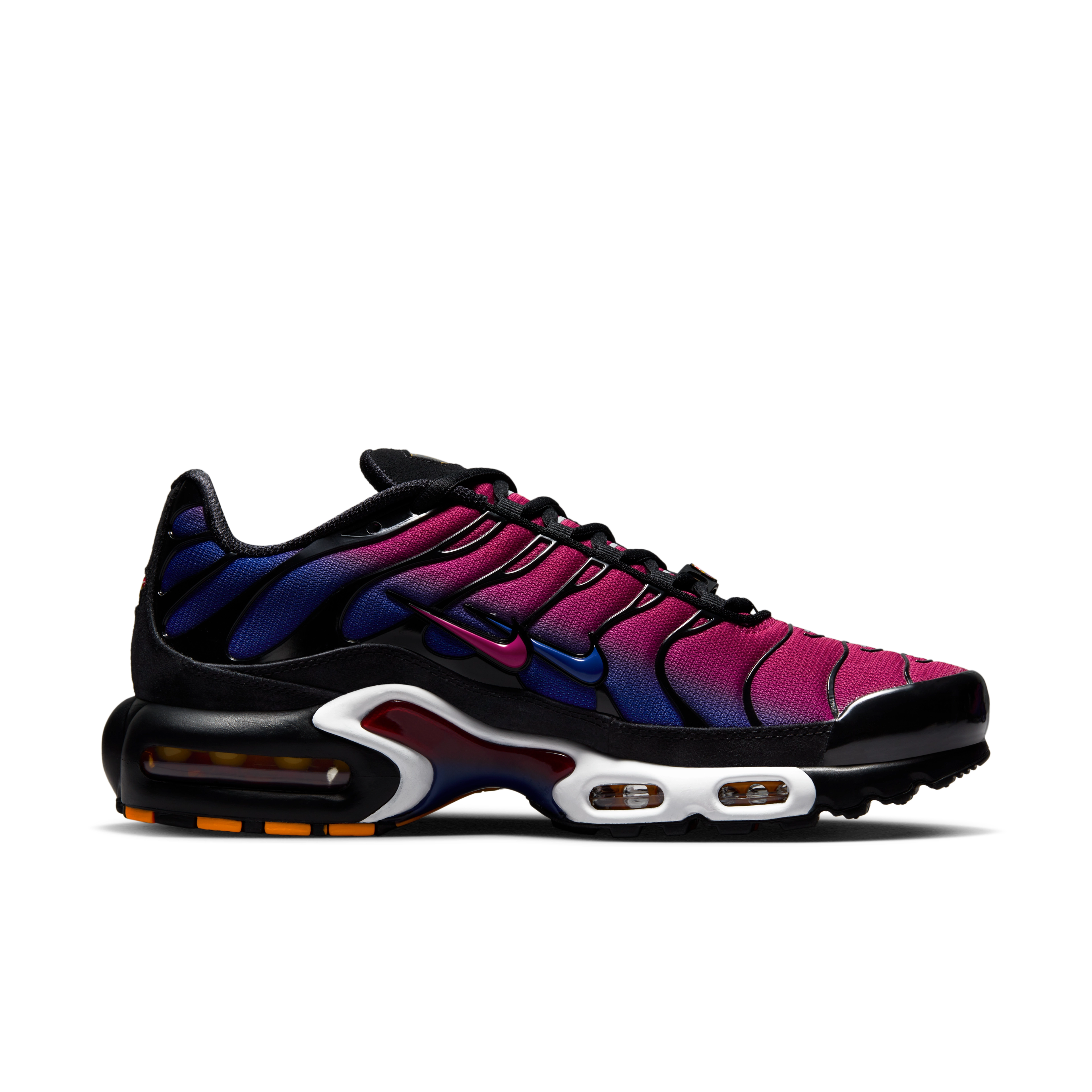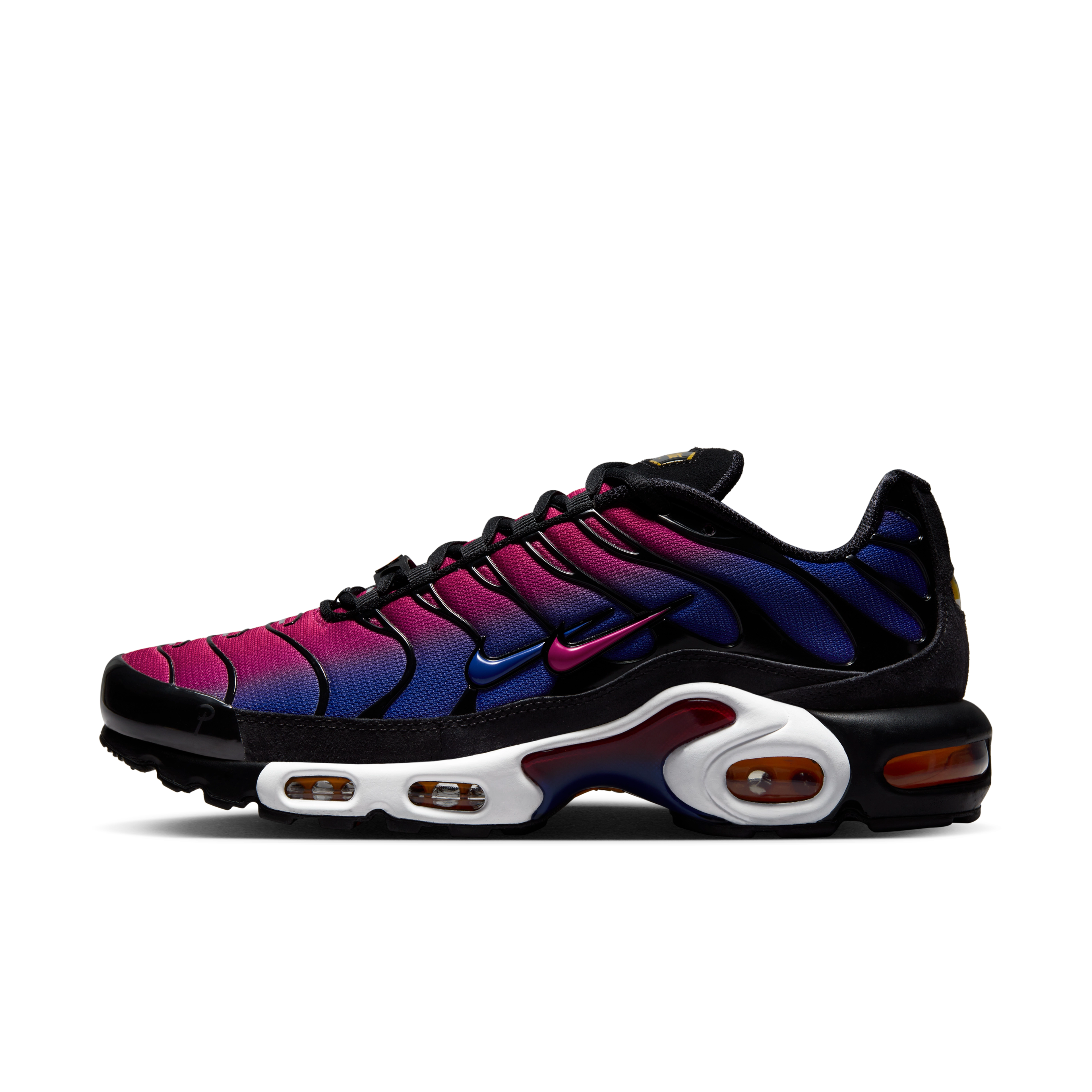 This expression is represented in graphics across the collection’s apparel — which includes jerseys (available in men, women and kids fits), an anthem jacket and pant, hoodies, T-shirts, and a cap — and through the Barça-inspired colorways of the capsule’s limited-edition Air Max Plus shoe. The Air Max Plus x FC Barcelona x Patta has a fluid gradient of Deep Royal Blue and Noble Red painting the upper and midfoot plate. The Barça club crest graces the special-edition dubraes, while lace tips evoke the stripes of the Senyera, the national Catalan flag.