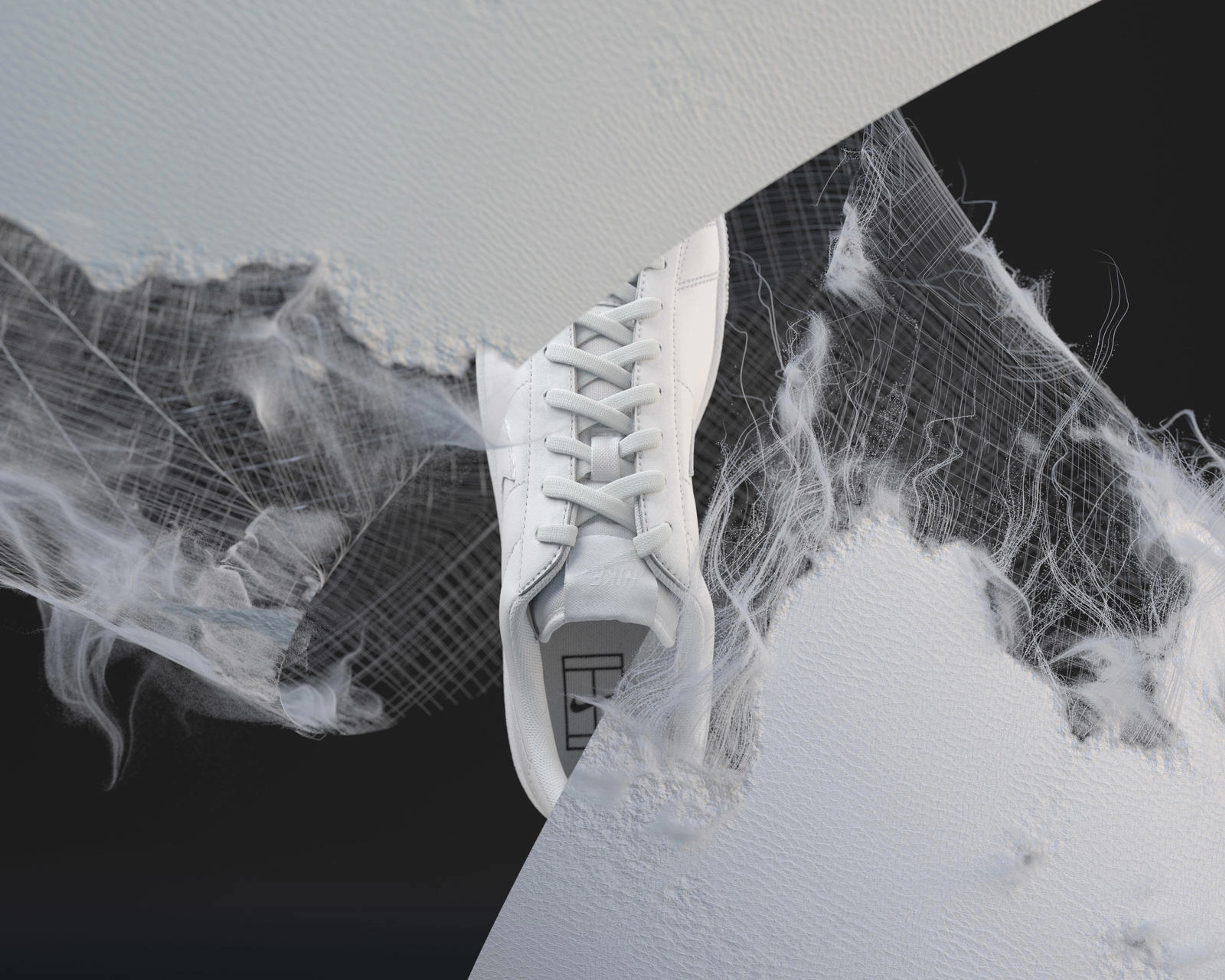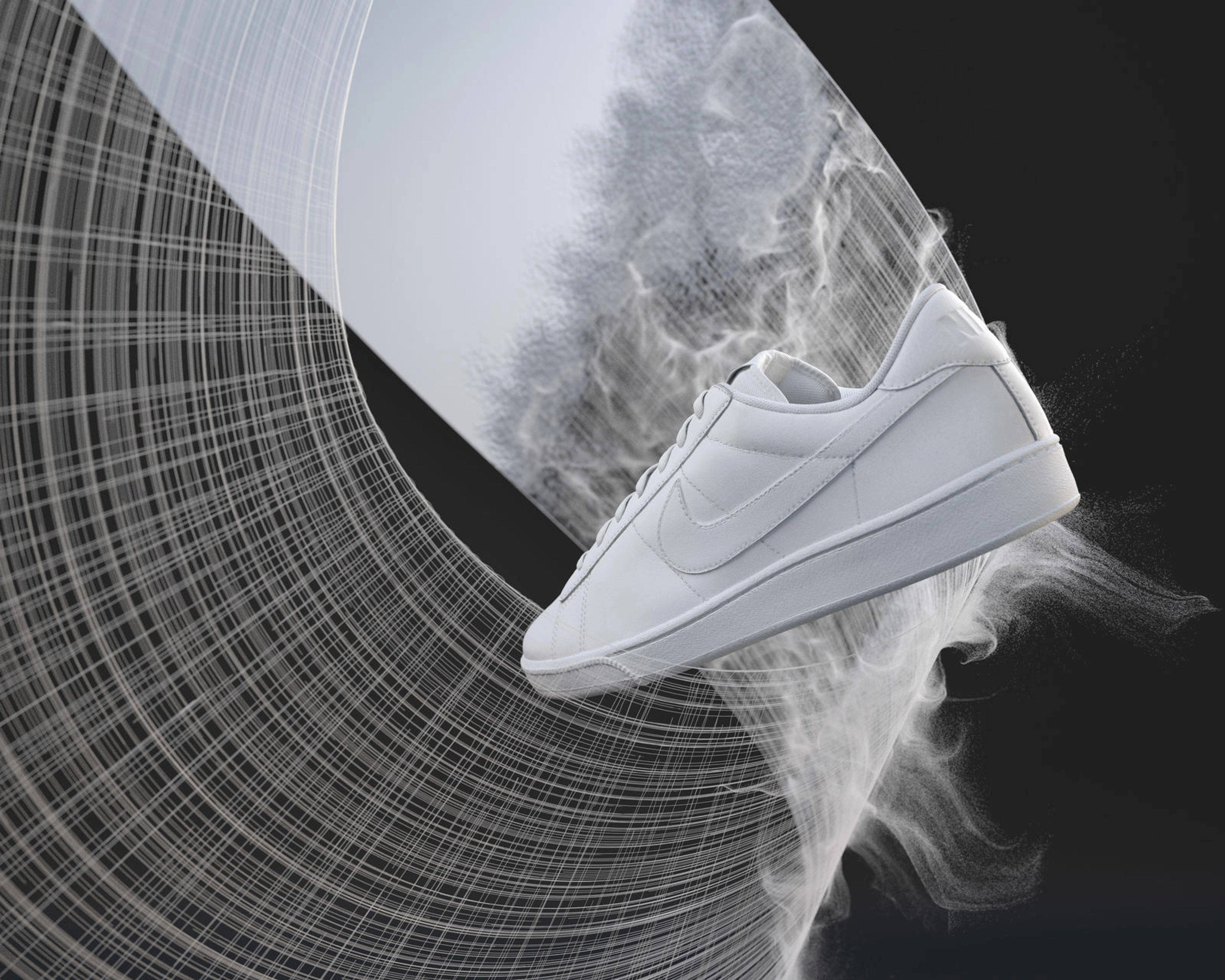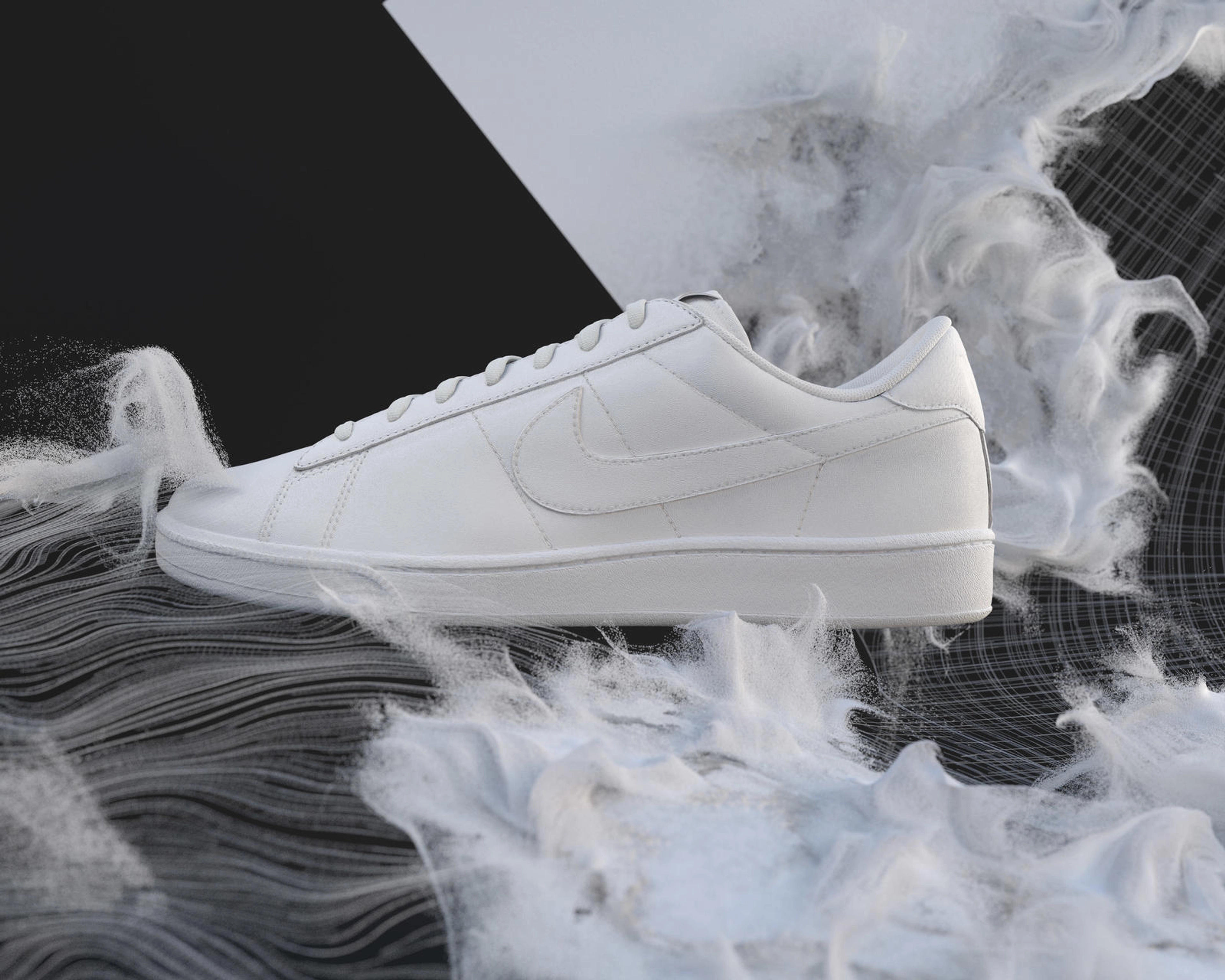 The first product to feature the new super material was the Nike Flyleather Tennis Classic, a distinctive, all-white version of the premium court shoe. It released on September 18, 2017.
