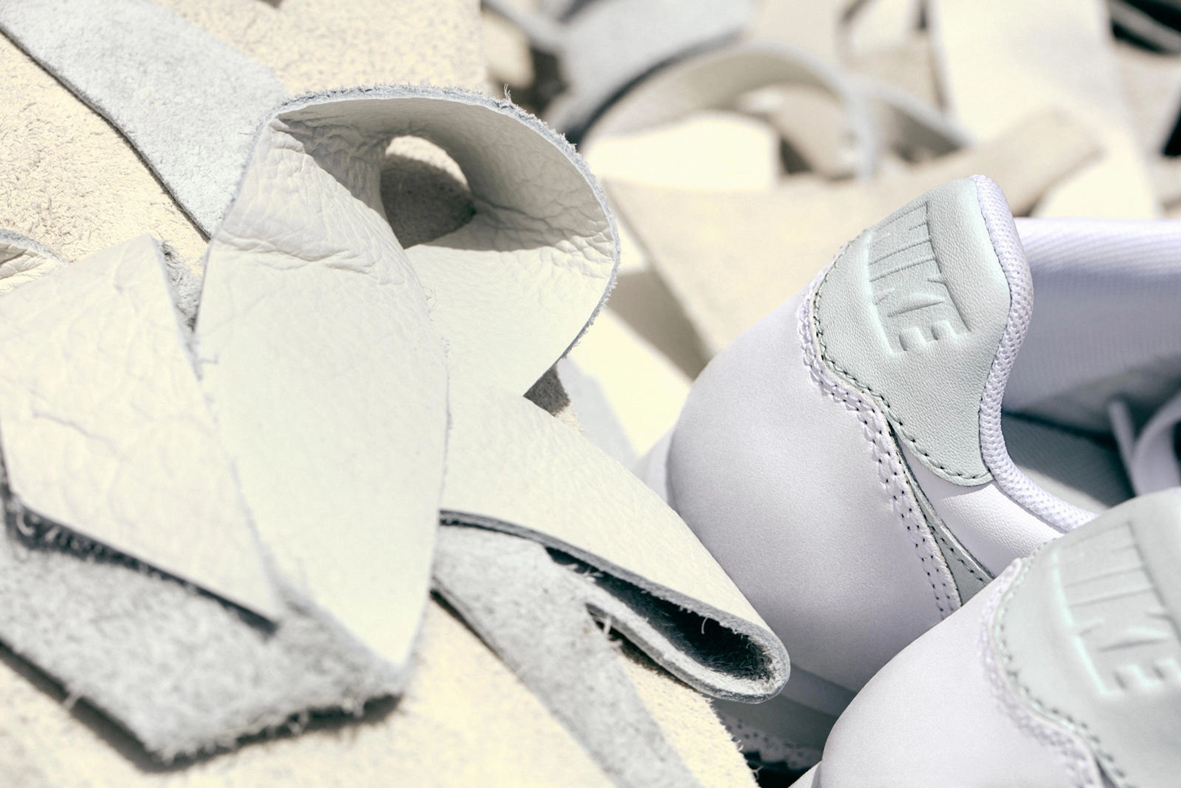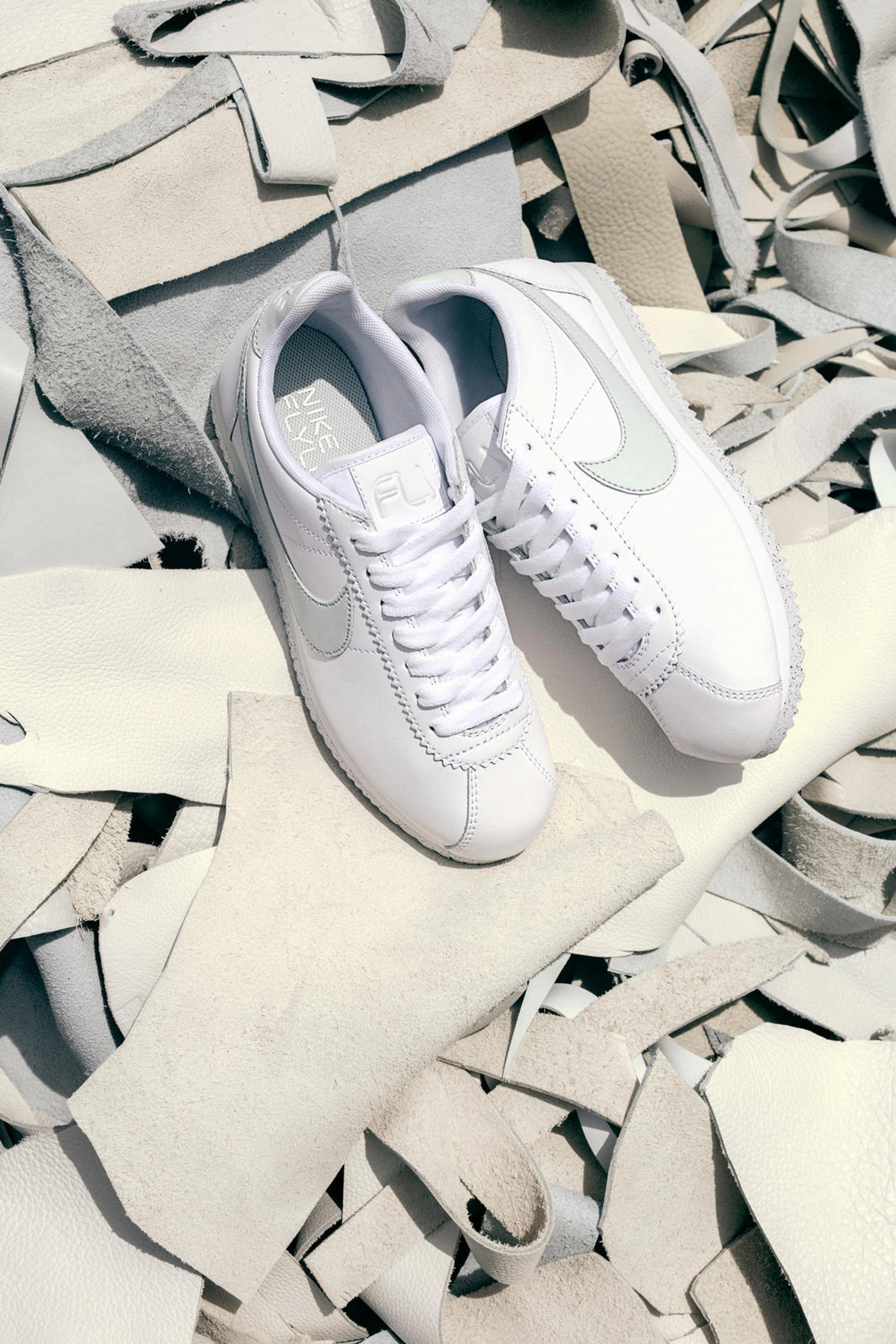 The latest product to feature Flyleather is one of Nike's most historic running models, the Cortez. The mindful take on the Cortez also features 100 percent recycled lining, laces and labeling.