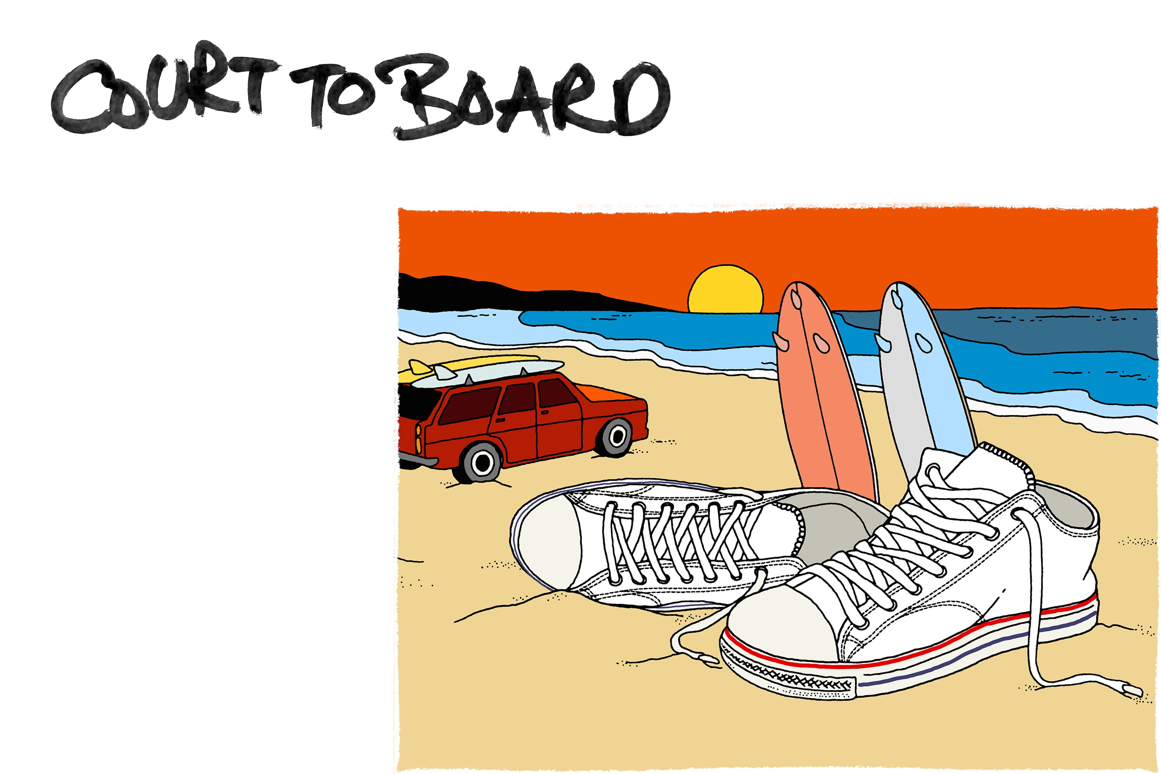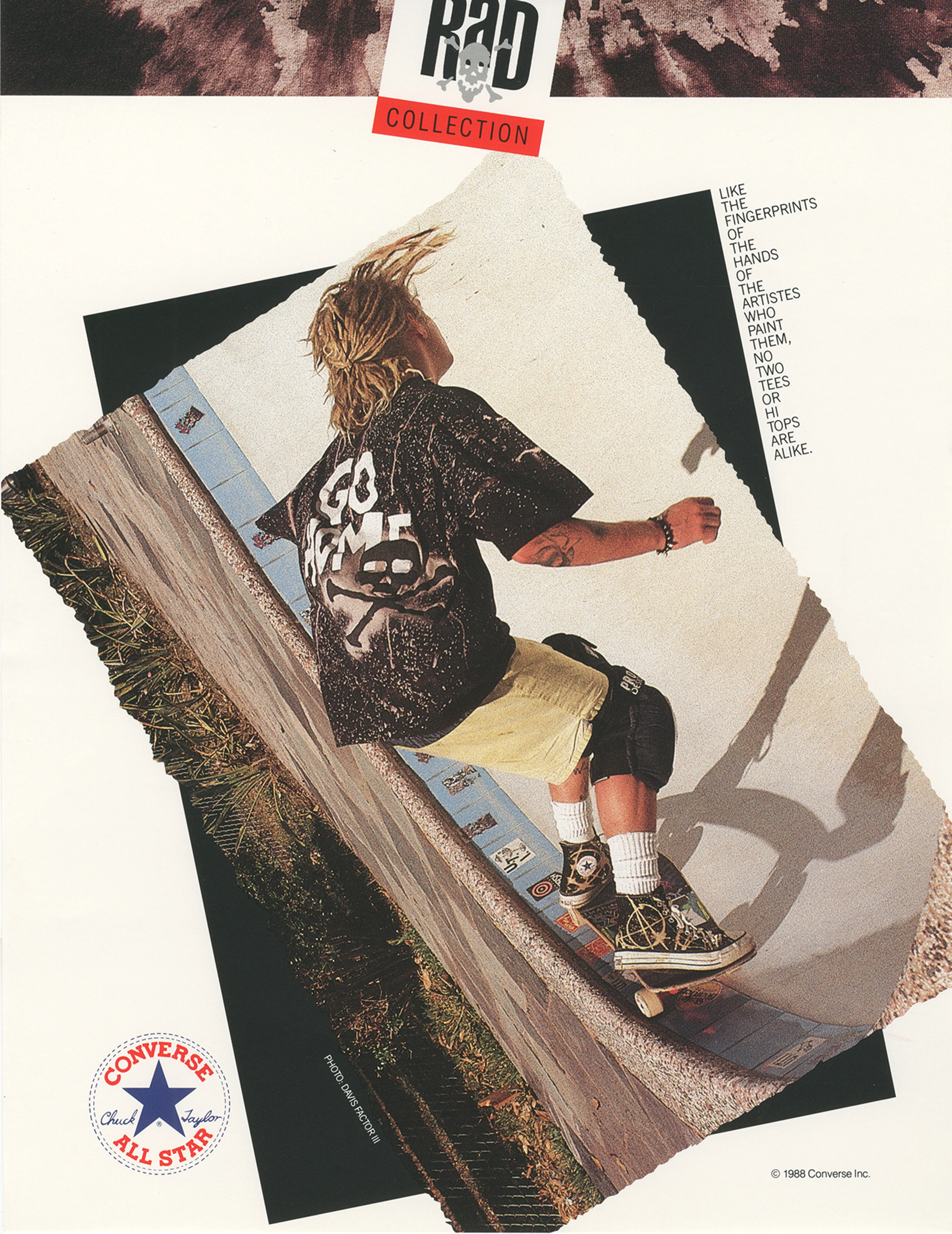 Skateboarding debuted in mid-century California as “sidewalk surfing,” a pastime for when the waves were flat. The low-top Chuck, which came out in 1957, was already a favorite of these “beach boys” and perfectly adapted to the new street sport, thanks to its underfoot cushioning, grippy rubber and form-fitting canvas upper.