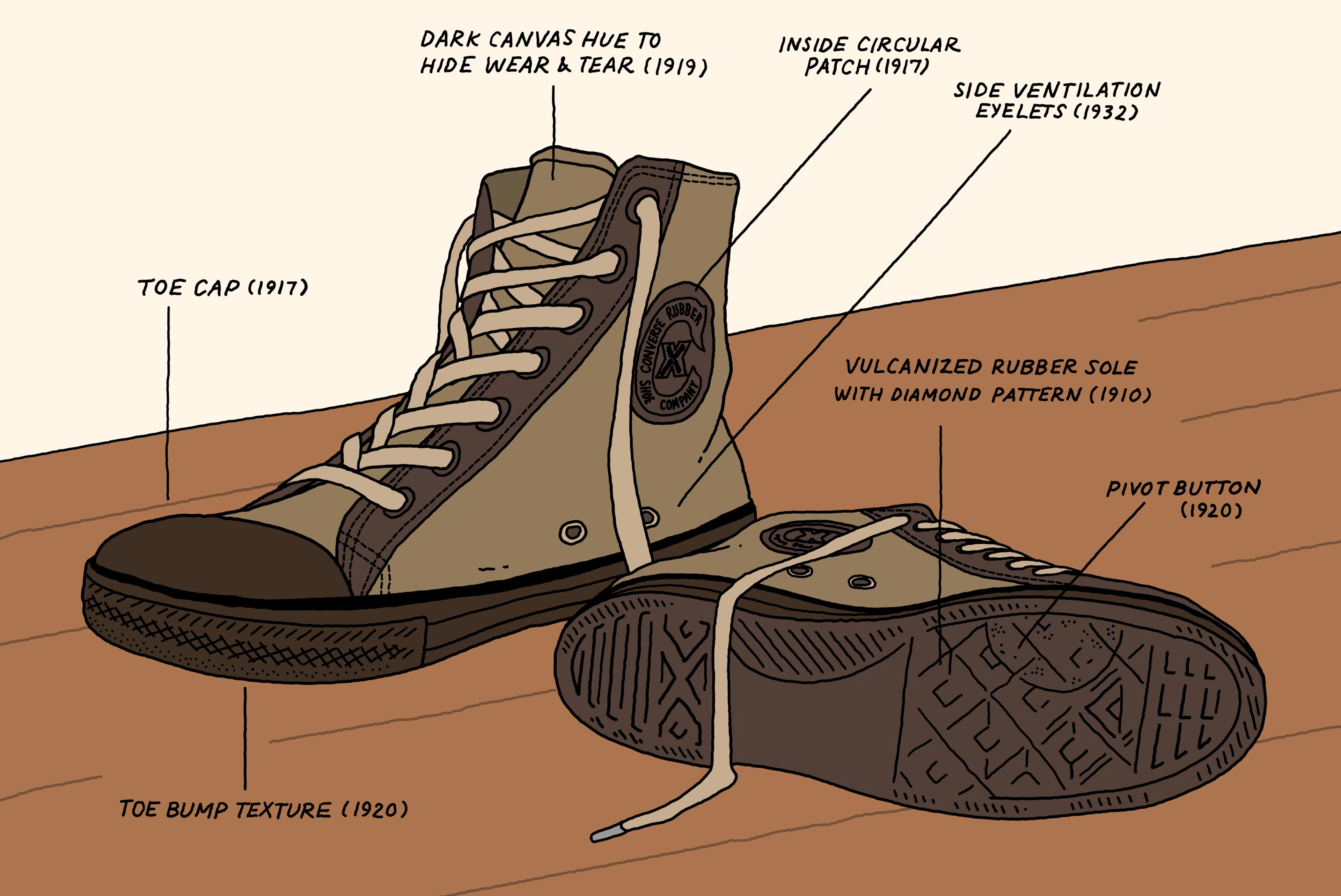 The Chuck’s signature innovations, expressly designed for basketball. Illustrations by Naomi Otsu.