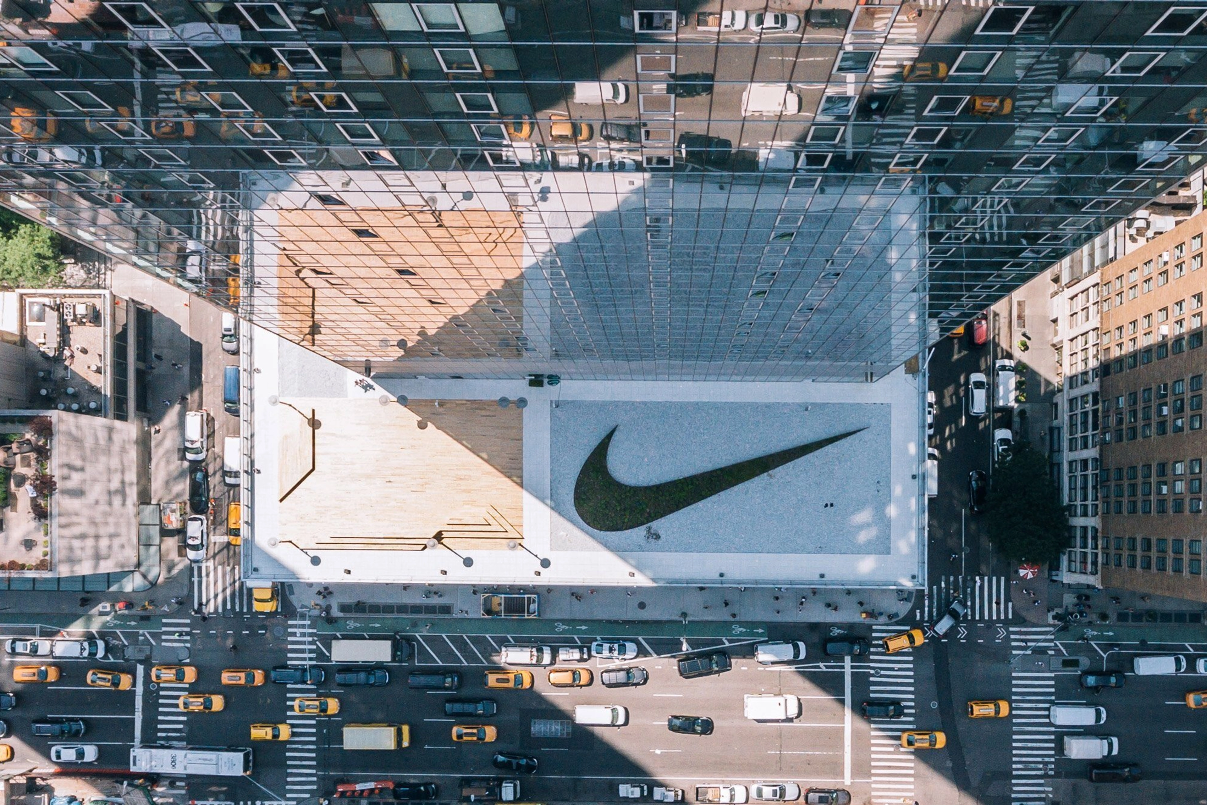 The Swoosh logo on the roof of Nike's NYHQ office.