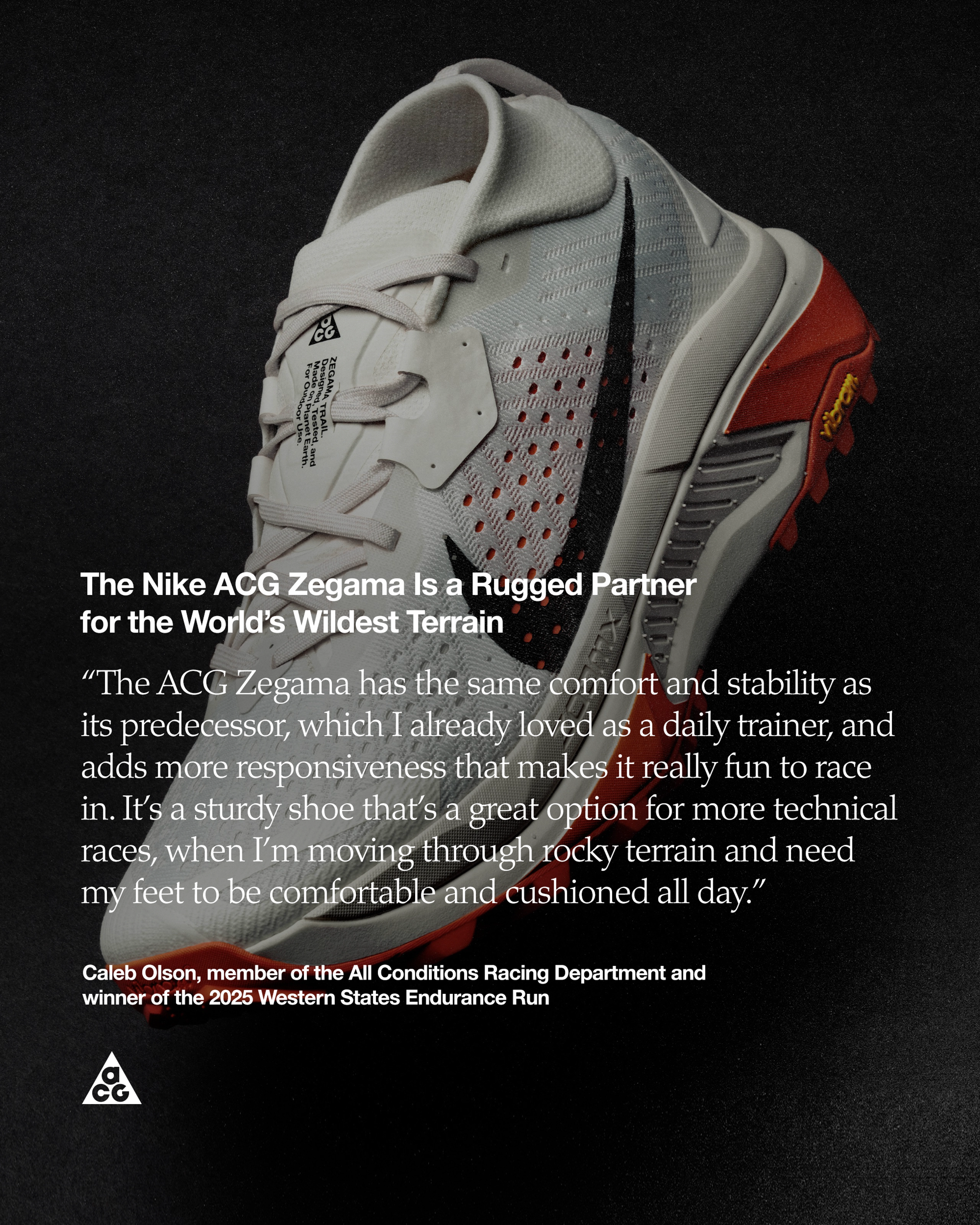 "Las ACG Zegama brindan la misma comodidad y estabilidad que sus predecesoras, que ya me encantaban para las sesiones diarias, y ofrecen más reactividad, lo que añade diversión a las carreras", cuenta Caleb Olson, miembro del All Conditions Racing Department y ganador de la Western States Endurance Run de 2025. "Son unas zapatillas robustas perfectas para competiciones más técnicas, en las que me enfrento a terrenos rocosos y necesito comodidad y amortiguación en los pies durante todo el día".