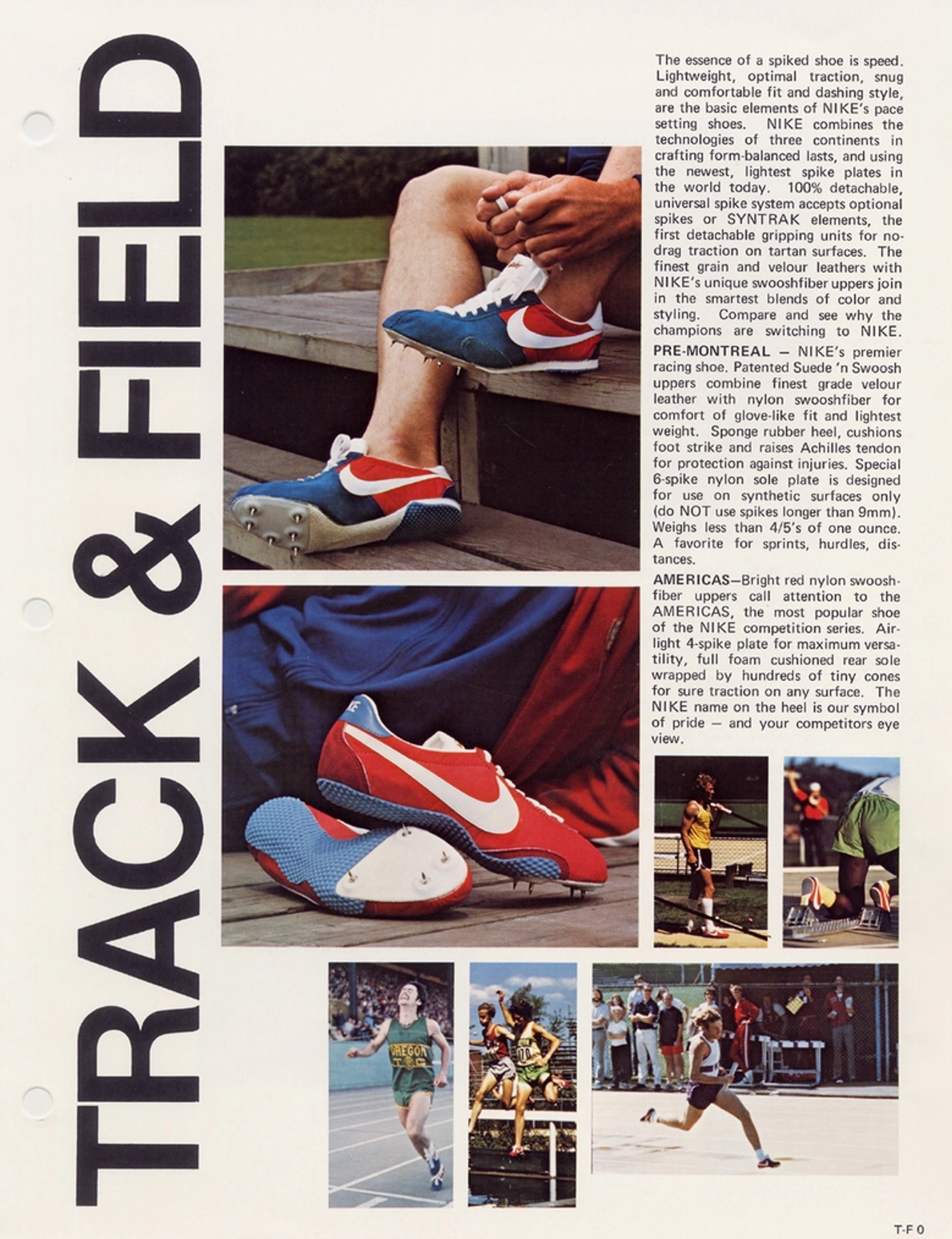 Les pointes de course Nike Pre Montreal ont fait leur apparition dans le premier catalogue officiel de la nouvelle entreprise, fin 1973.