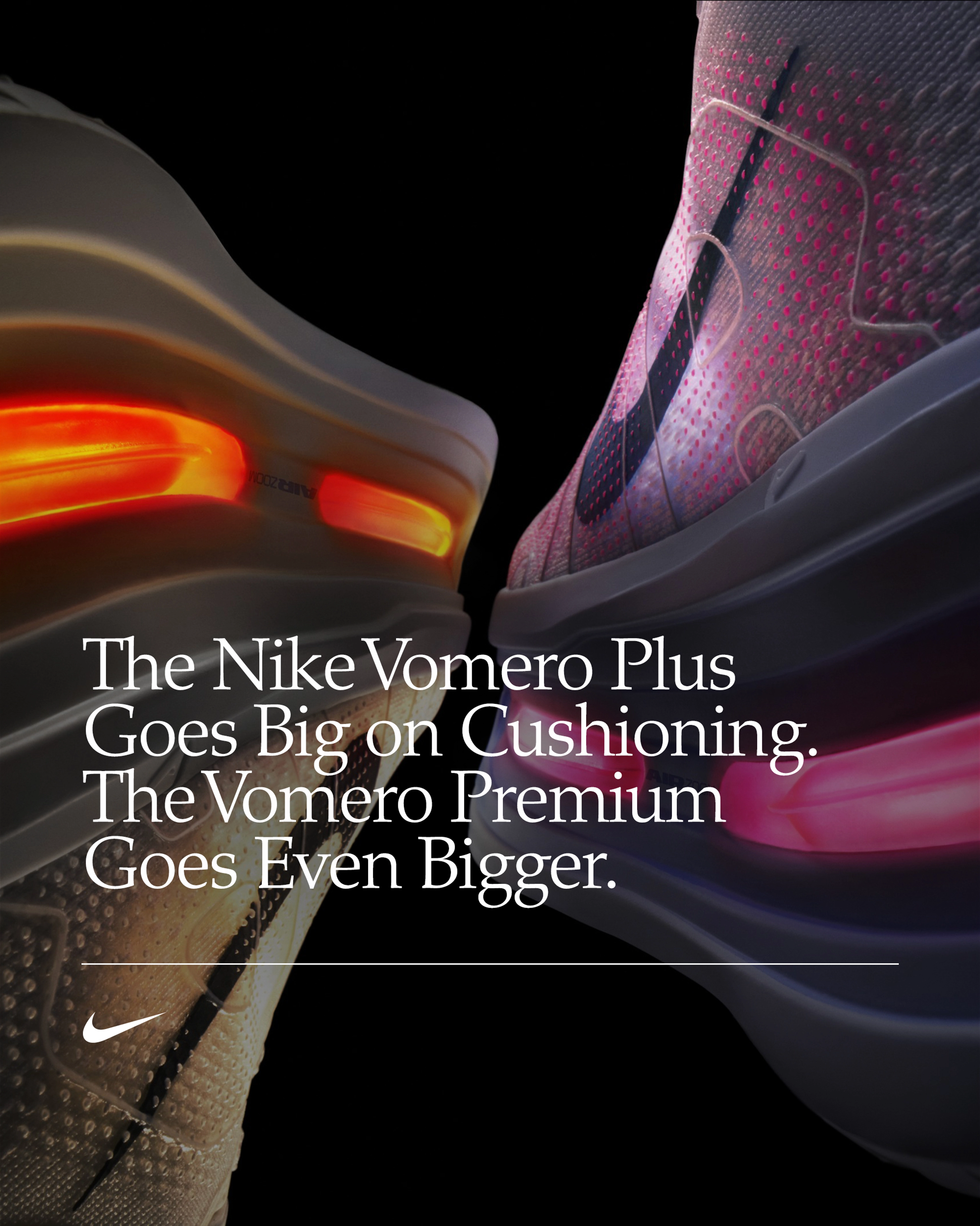 Nike dévoile la Vomero Premium et la Vomero Plus, ses nouvelles chaussures de running sur route. Ces modèles innovants ont été conçus pour rendre le running plus facile pour l'organisme. Avec leur amorti incroyable qui garantit une foulée ultra-confortable, les athlètes débloquent de nouveaux niveaux de performance, de protection contre les chocs et de récupération.