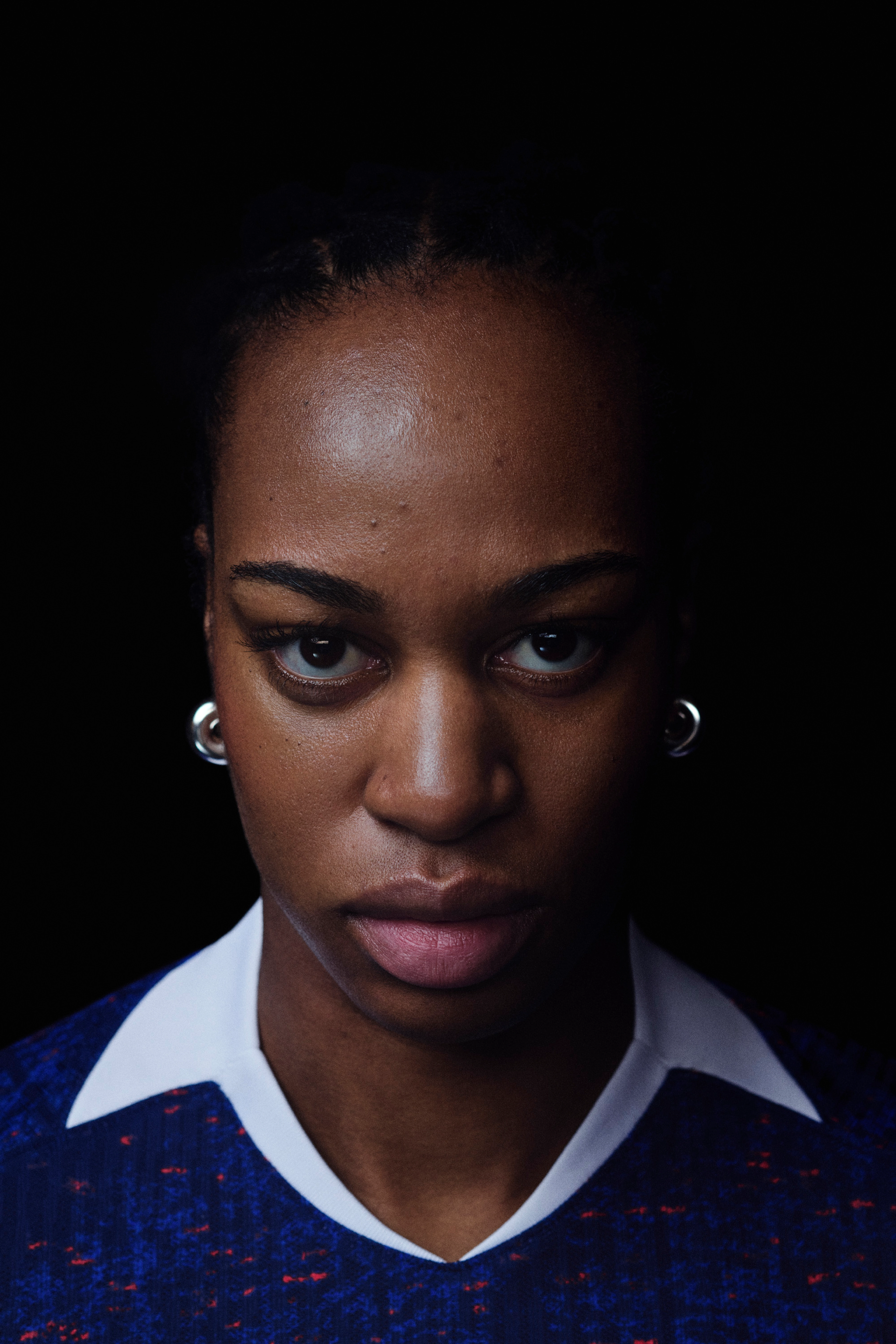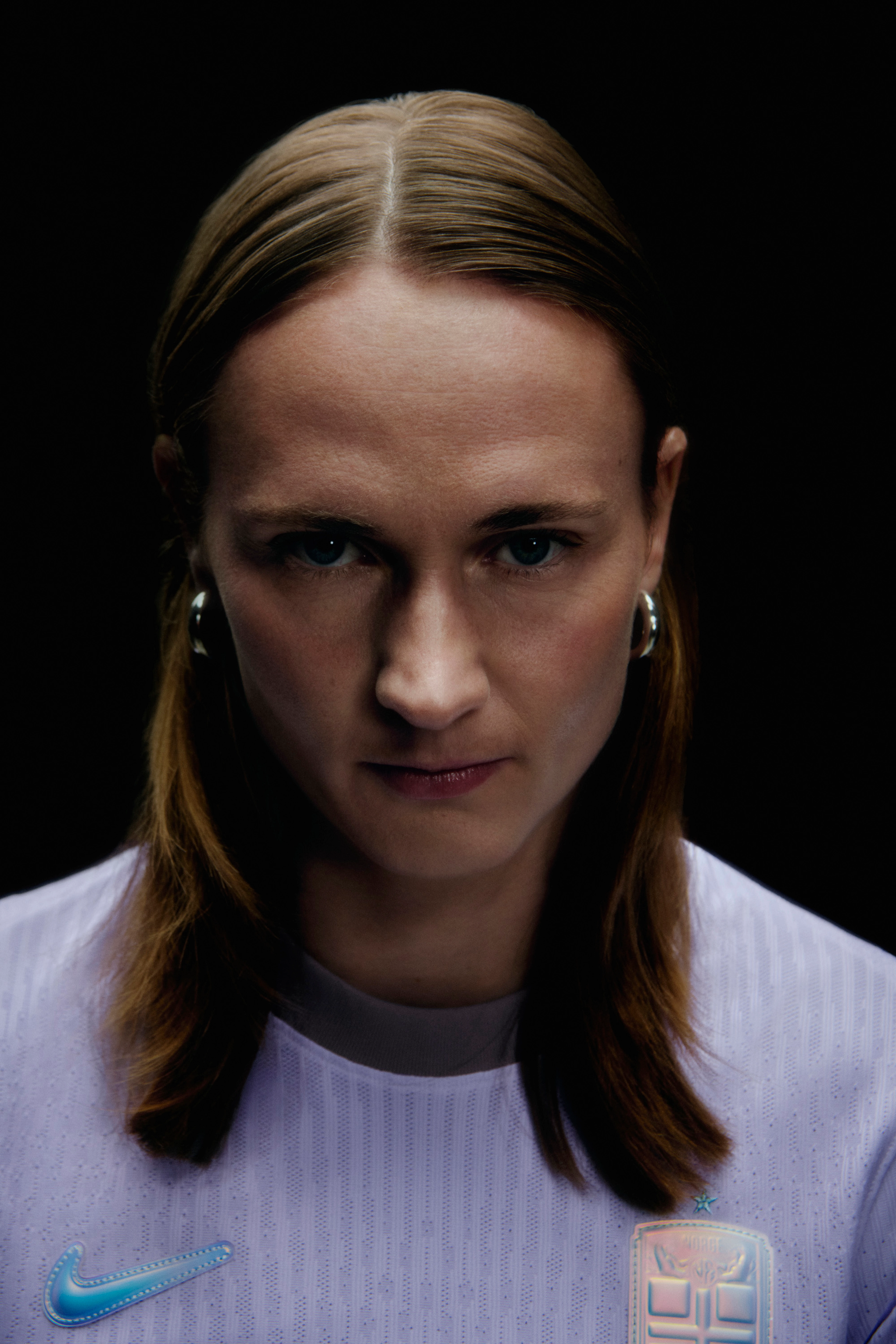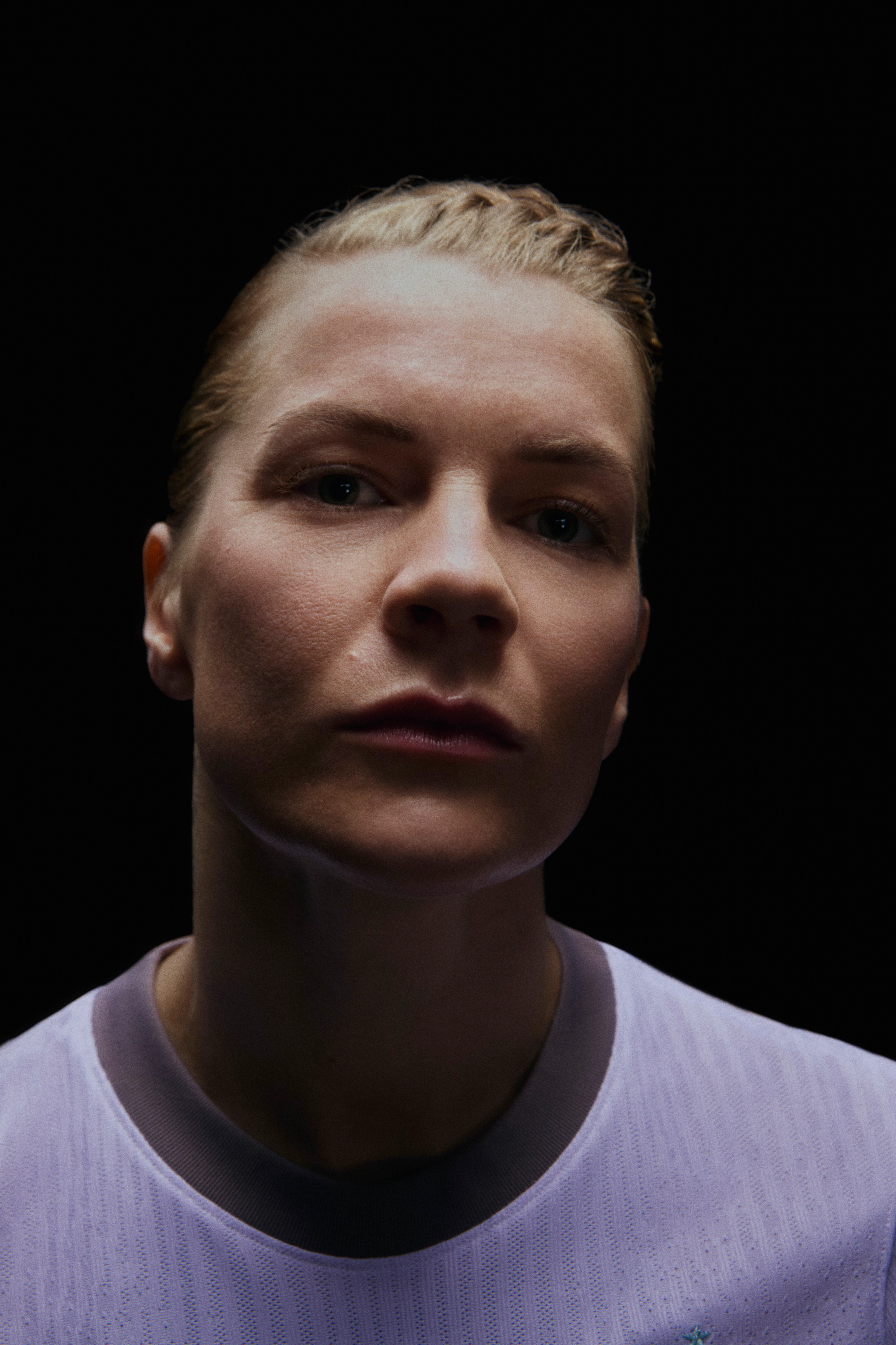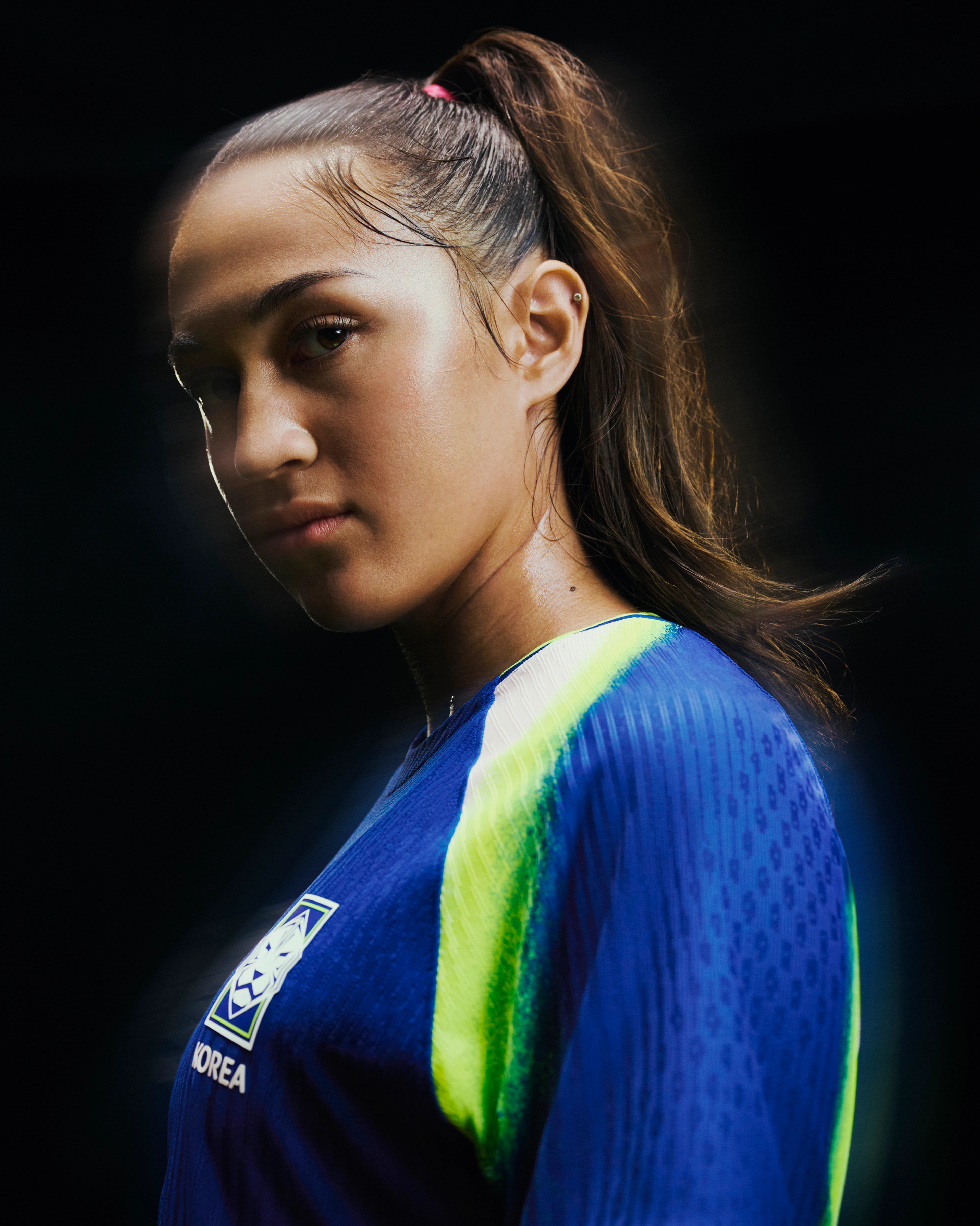 女子サッカー選手のダイナミックな動きを参考に、高度なボディマッピング技術、4Dデータ、最先端のデジタル設計ツールを活用。必要な箇所をピンポイントで補強し、可動性と通気性を高めました。