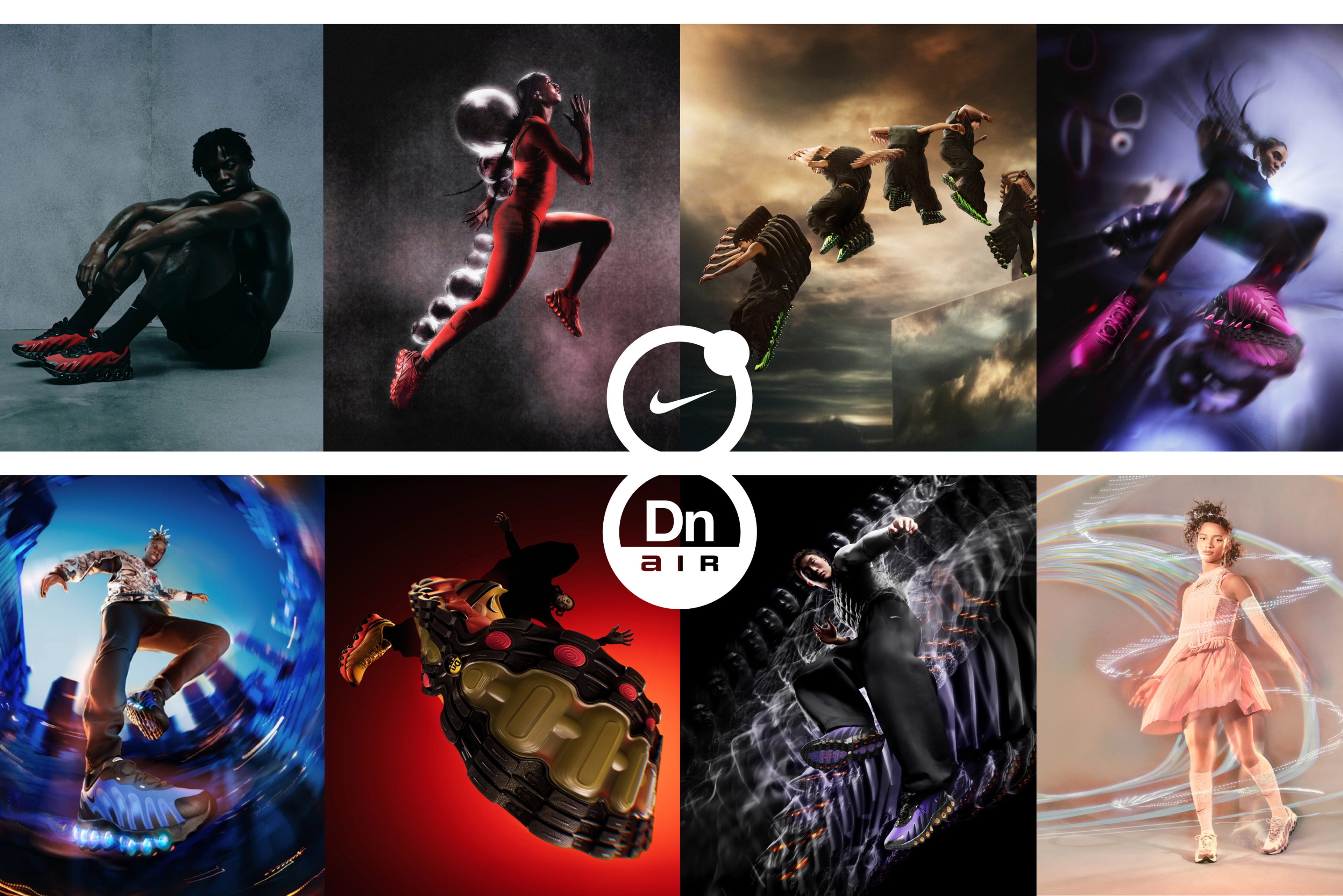 シューズの世界発売に合わせて、Nikeはエア マックス Dn8のキャンペーンを開始。世界トップクラスのイノベーター8人と世界的なアスリート8人がそれぞれの視点で新たなスタイルを生み出し、エア マックス Dn8がもたらす現実離れした動きと創造性に富んだ実験を8つのユニークな表現で追求しています。