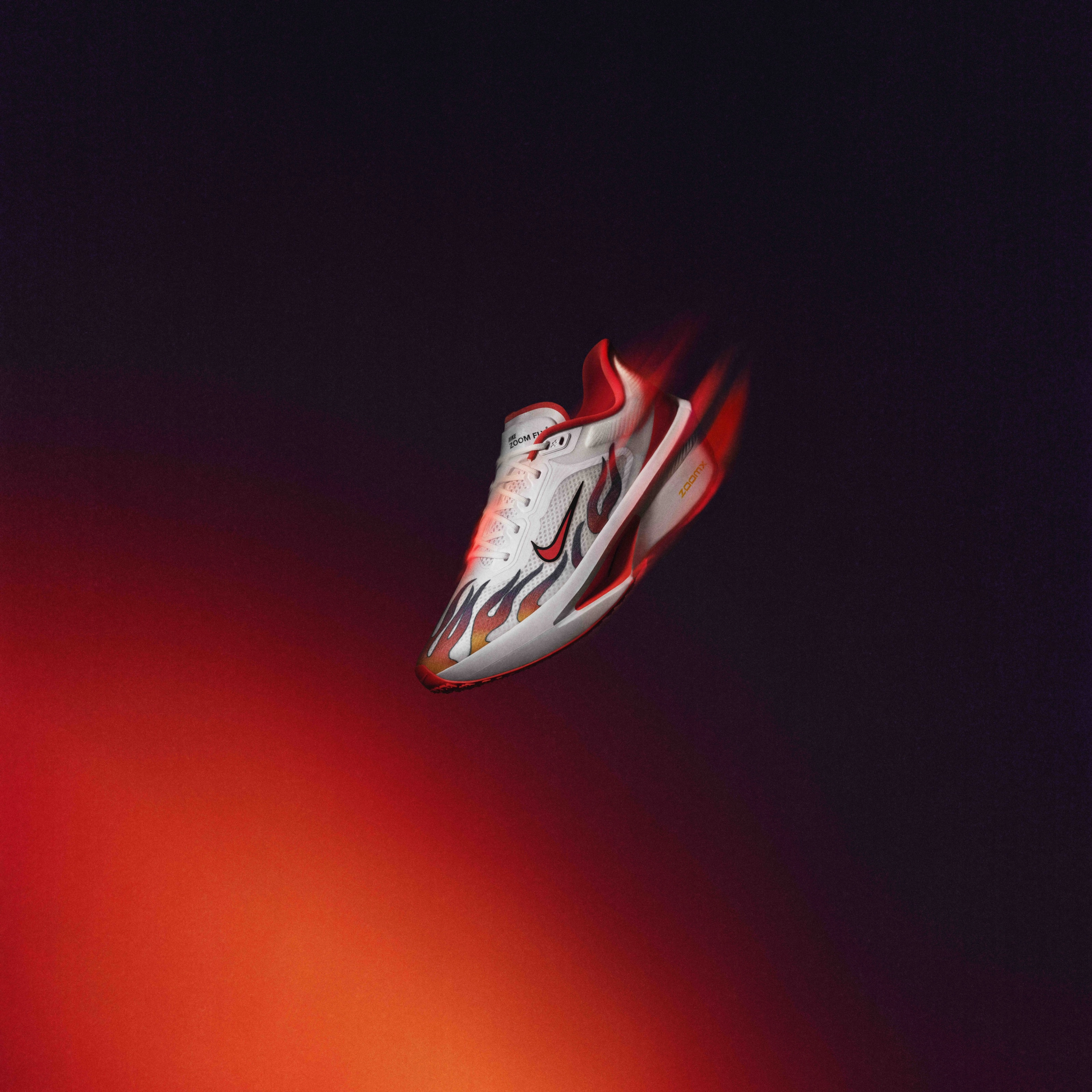 - レーシングシューズとライフスタイルアイテムにあしらわれた炎のグラフィックの着想源は、Streakシリーズから2002年に発売され、高い評価を得たエア ストリーク スペクトラム プラス。駅伝ランナーから得た知見を基にデザインされたシューズです。