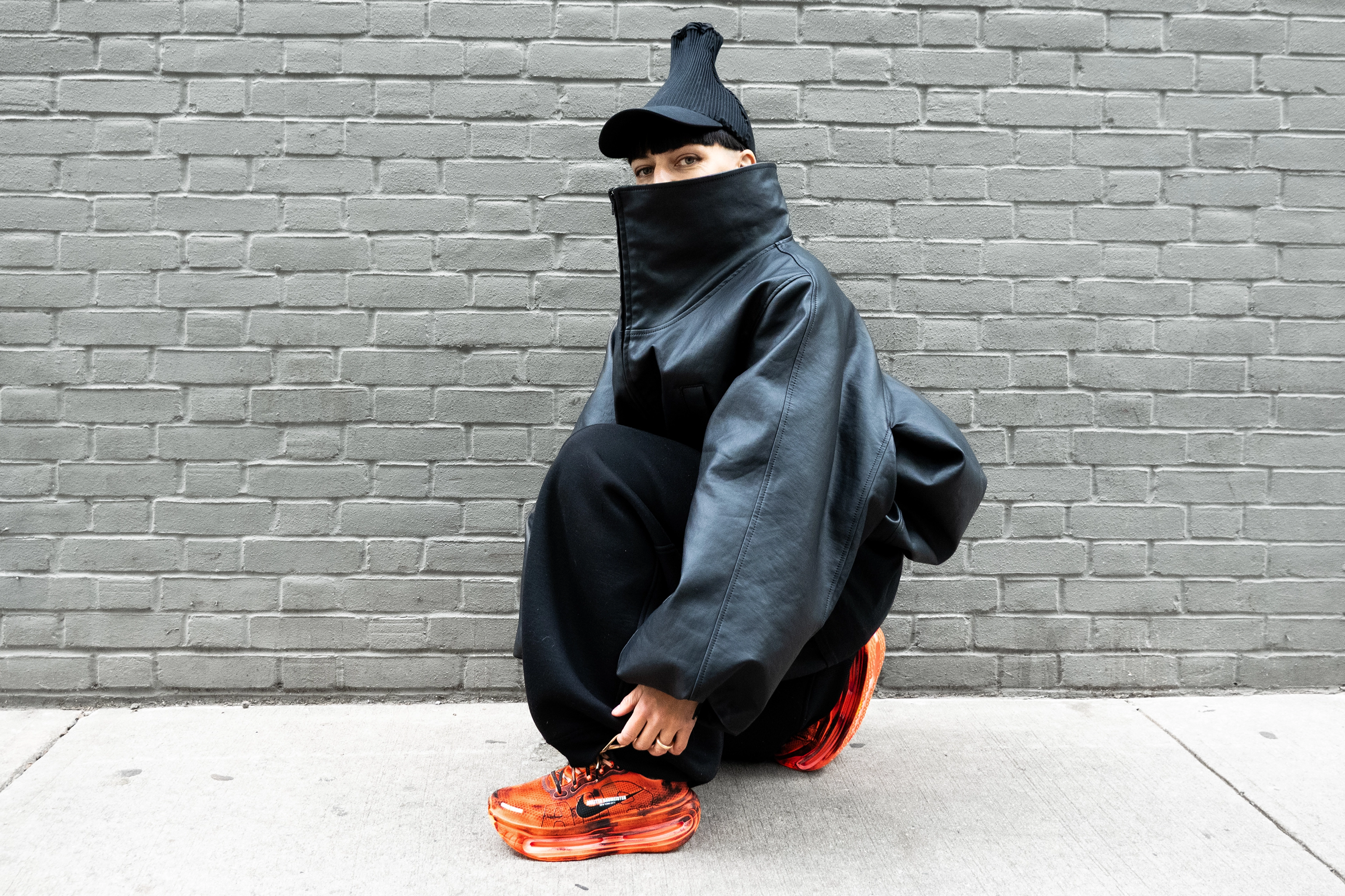 Now, she’s bringing that sculptural approach to Nike. On October 29, Baumeister will debut an experiential performance and installation in New York City, the first chapter in a long-term collaboration with the brand. Taking Nike’s Vomero Premium as her starting point, she reimagines the shoe’s color — and so much more, creating an expressive study of movement and perception. The result is part artwork, part experiment and fully human in its perspective.