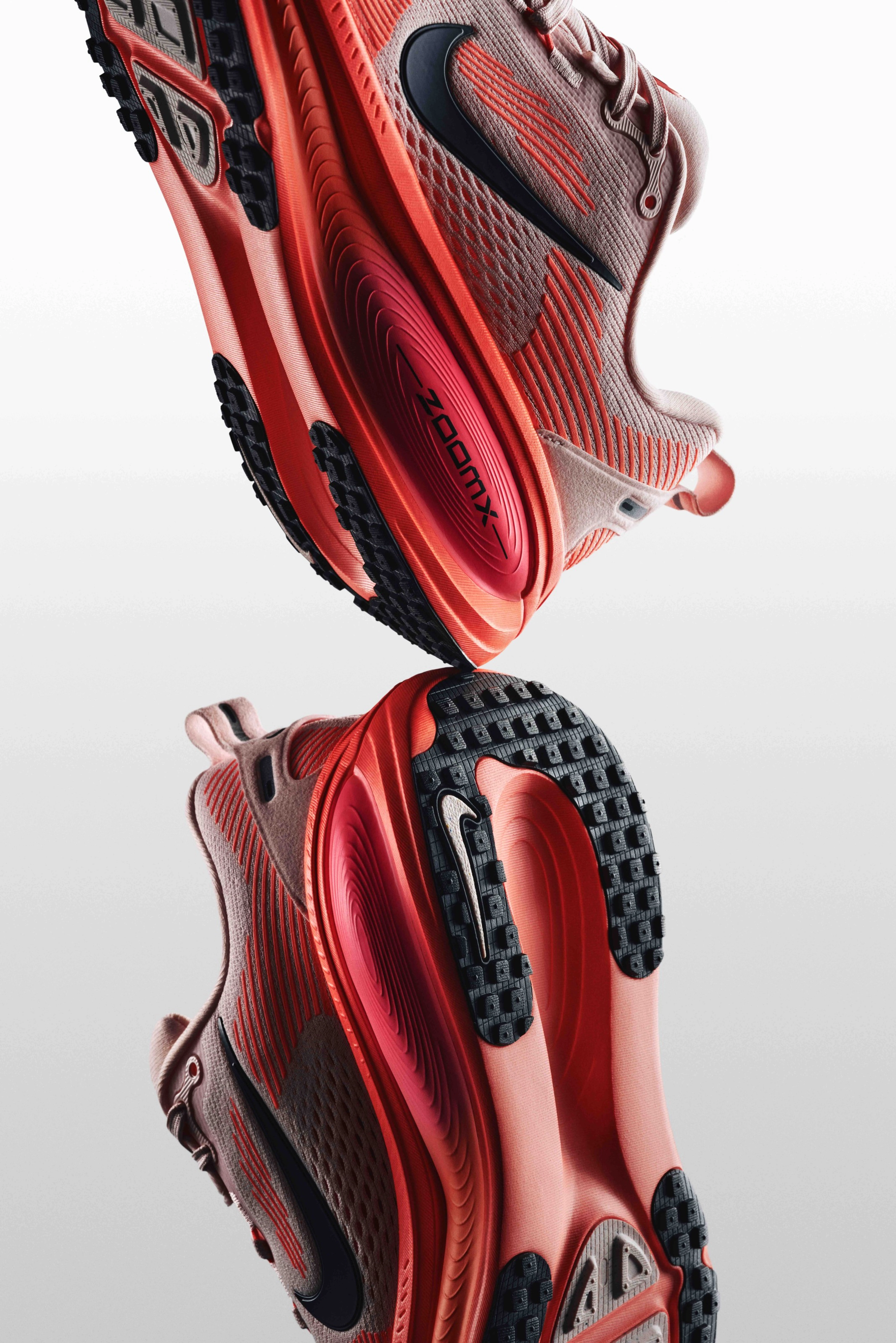 The new Vomero features a combination of ZoomX foam through the length of the shoe and ReactX in the heel and forefoot, providing runners with double-stacked cushion for the ultimate ride. With balanced foam stacks providing more cushion than ever, the silhouette also offers an increased stack height of 46mm, 6mm taller than the previous Vomero and the tallest ever in the Vomero line.