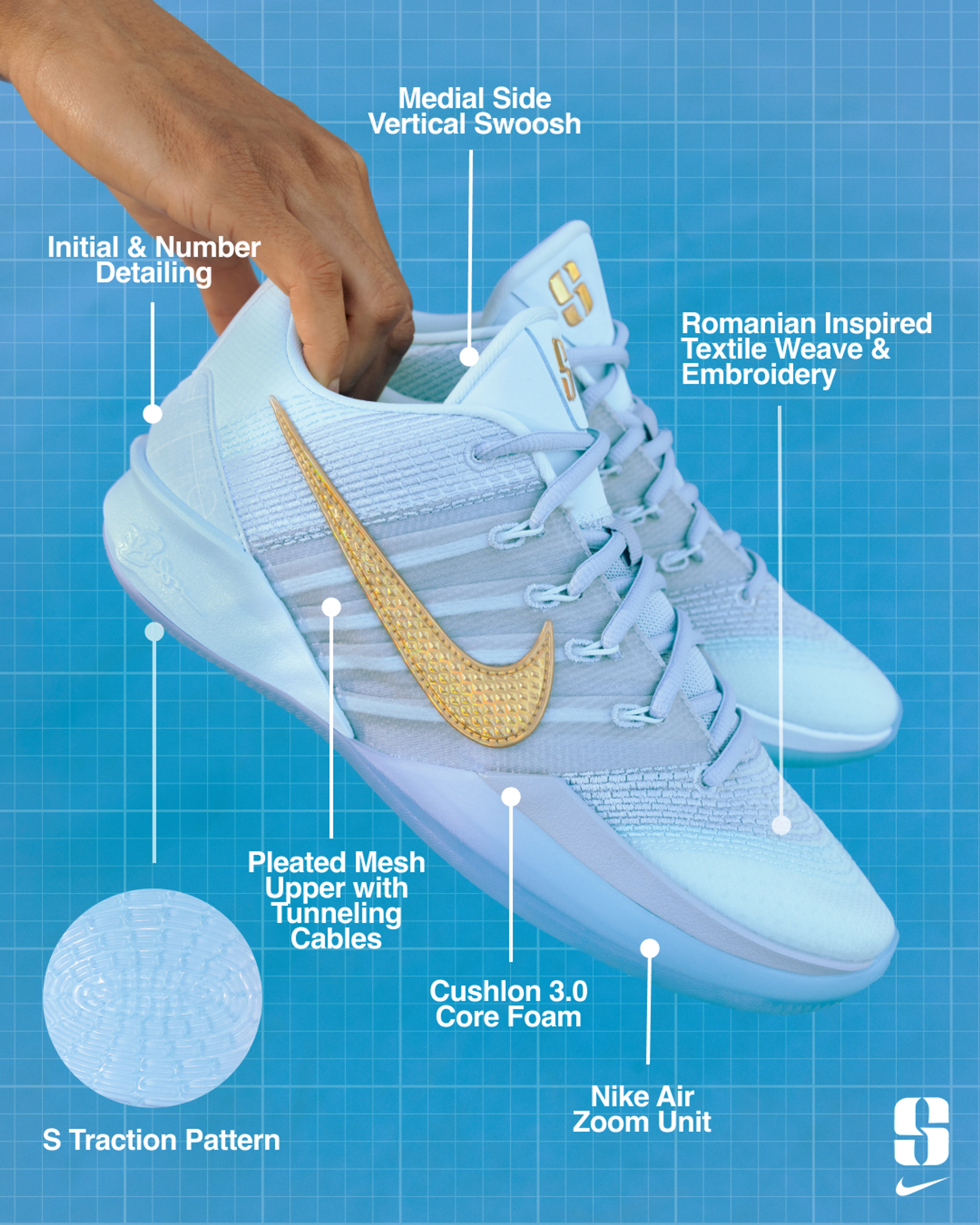 新鞋款从萨布丽娜的罗马尼亚血统中汲取灵感,将传统纺织与刺绣工艺融入现代篮球鞋设计,既是一件艺术品,又保持了与前代产品一脉相承的可靠性能。